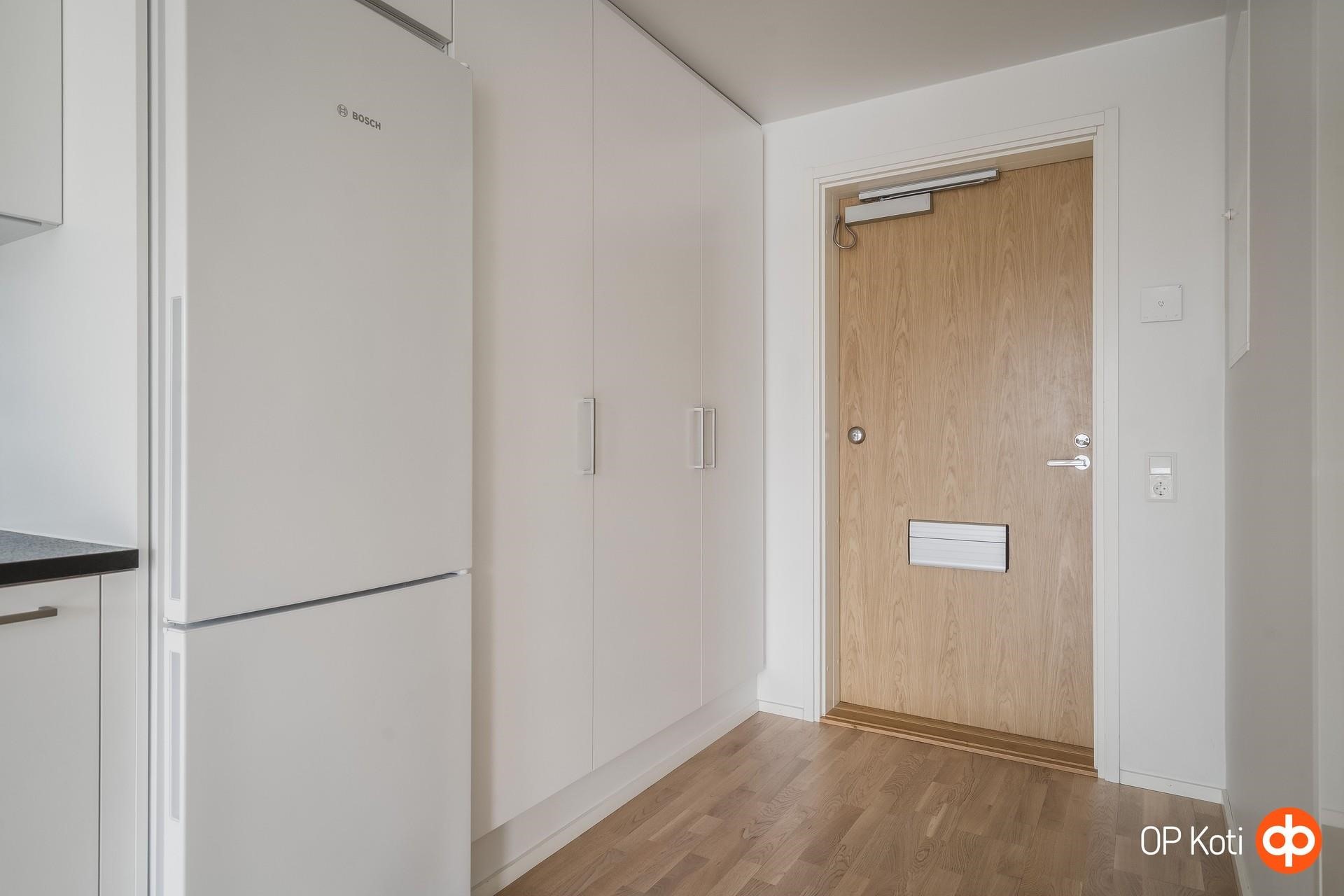 Keittiö: Seinäpinnat valkea maali, lattiat tammiparkettia. Olohuone: Seinäpinnat valkea maali, lattiat tammiparkettia. Makuuhuone 1: Seinäpinnat valkea maali, lattiat tammiparkettia. Kylpyhuone: Laatoitettu.