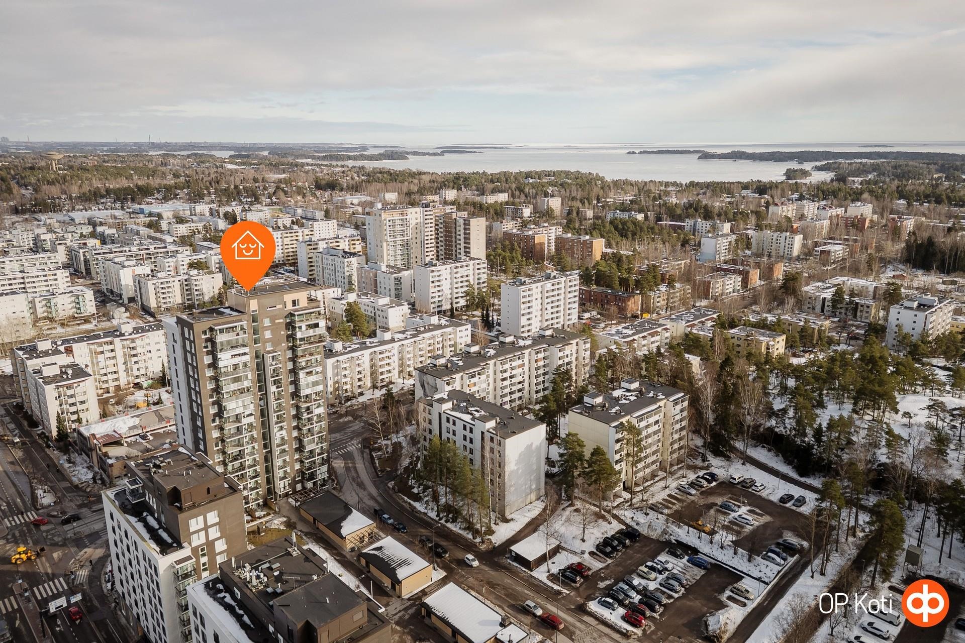 Huippupaikalla, Ison Omenan kupeessa sijaitseva tehokas yksiö hurmaa lasitetulla parvekkeellaan ja toimivalla pohjaratkaisullaan. Tyylikäs vaalea avokeittiö kytkeytyy sulavasti olohuoneeseen, jonka jatkeena avautuu tilava ja lasitettu parveke sisäpihan puolelle, länteen. Asunto Oy Espoon Koho on yksi Espoon halutuimmista yhtiöistä ja vuonna 2018 valmistuneena se tarjoaa nykyaikaisen talotekniikan, runsaasti korjausvapaata aikaa, ylimmän kerroksen edustavan saunaosaston sekä kätevän parkkihallin. Asunnon yhteydessä on mahdollisuus ostaa autohallipaikka erilliseen hintaan. Tästä osoitteesta kävelet kadun poikki Ison Omenan monipuolisiin palveluihin ja myös Matinkylän upeat ranta-alueet sekä ulkoilureitit ovat helposti saavutettavissa. Koti sopii erinomaisesti myös sijoittajalle, sillä hoitovastike on vain 150 €/kk.