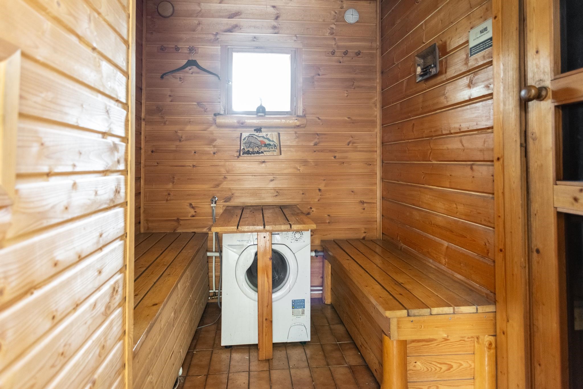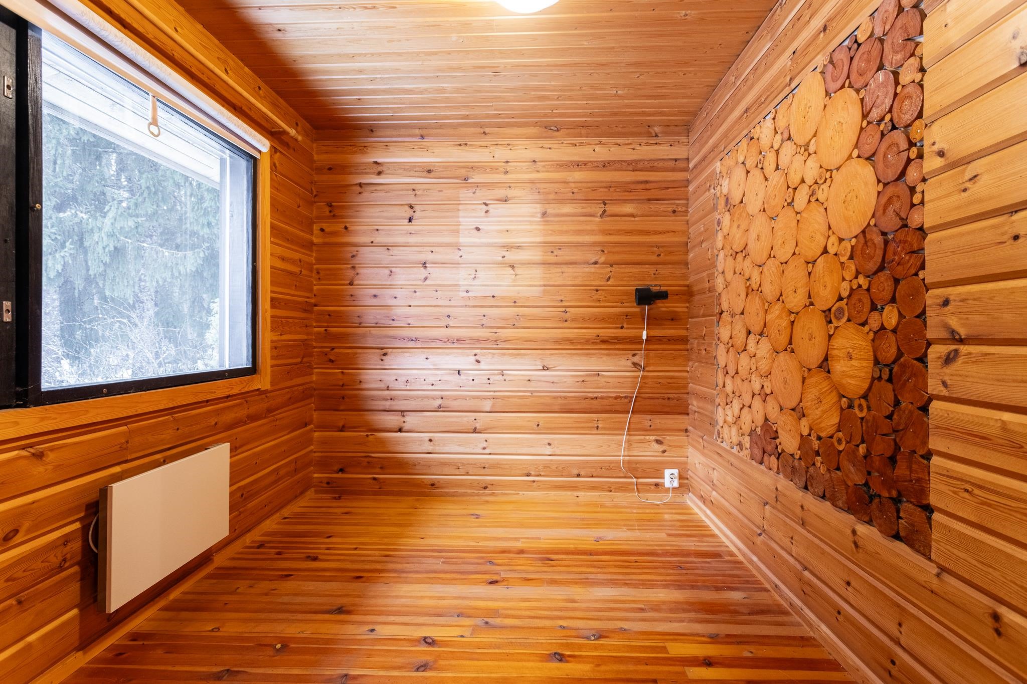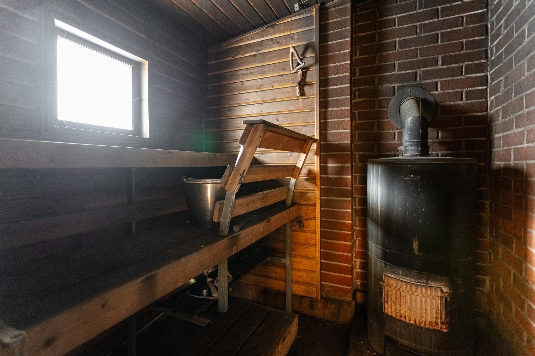 - Sauna, puukiuas Aito kertälämmitteinen, erillinen wc, suihku, peilit, allaskaappi, pesukoneliitäntä, kiinteät valaisimet.