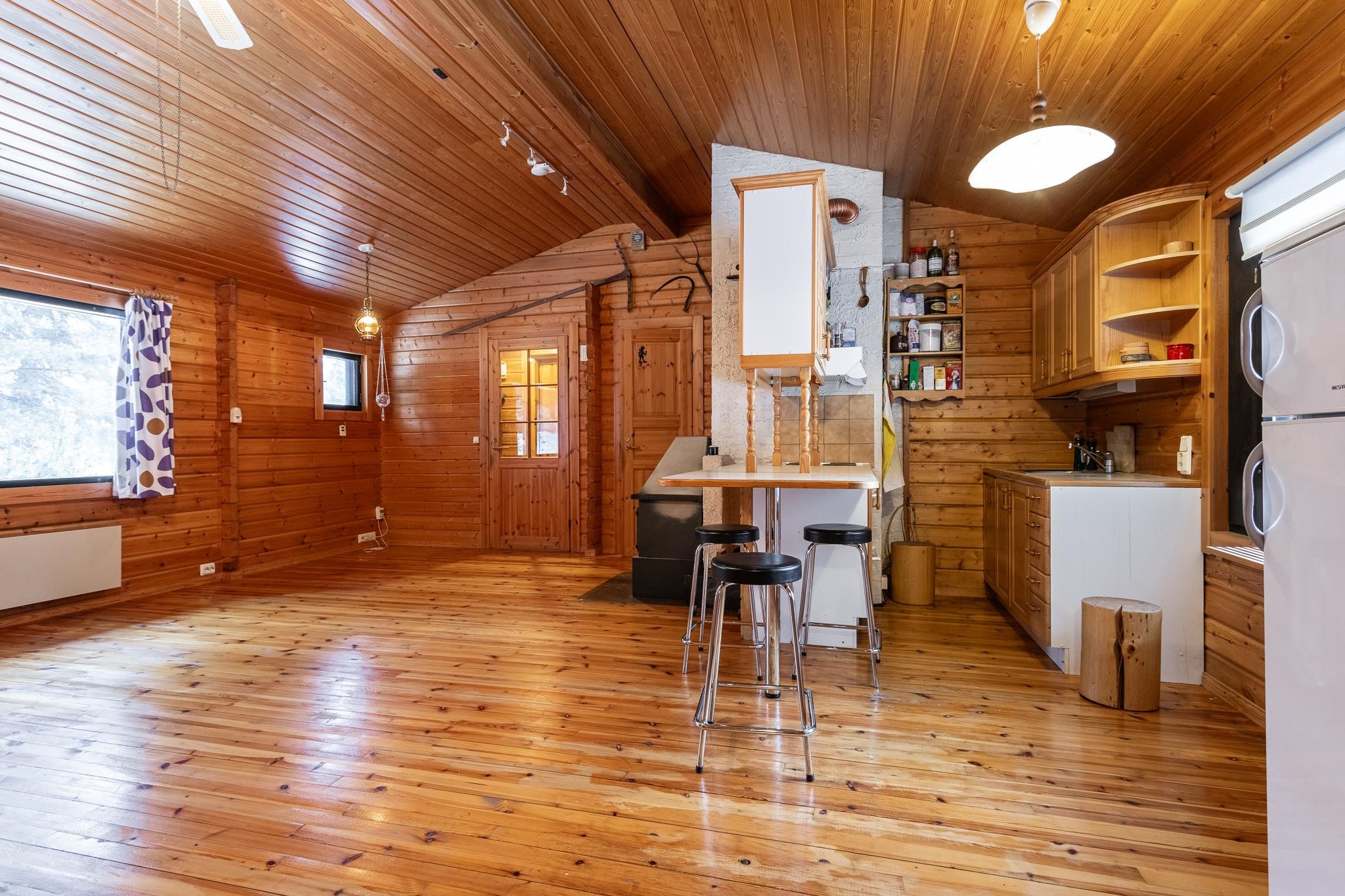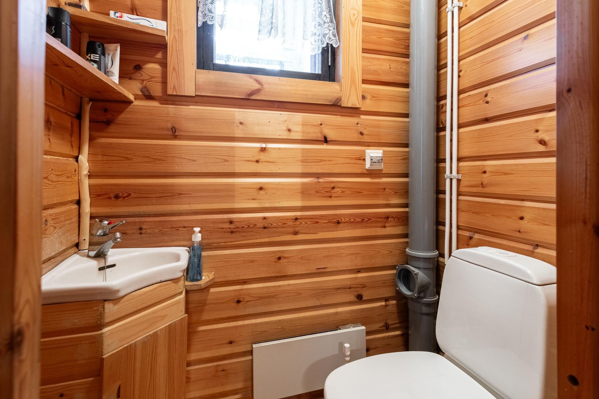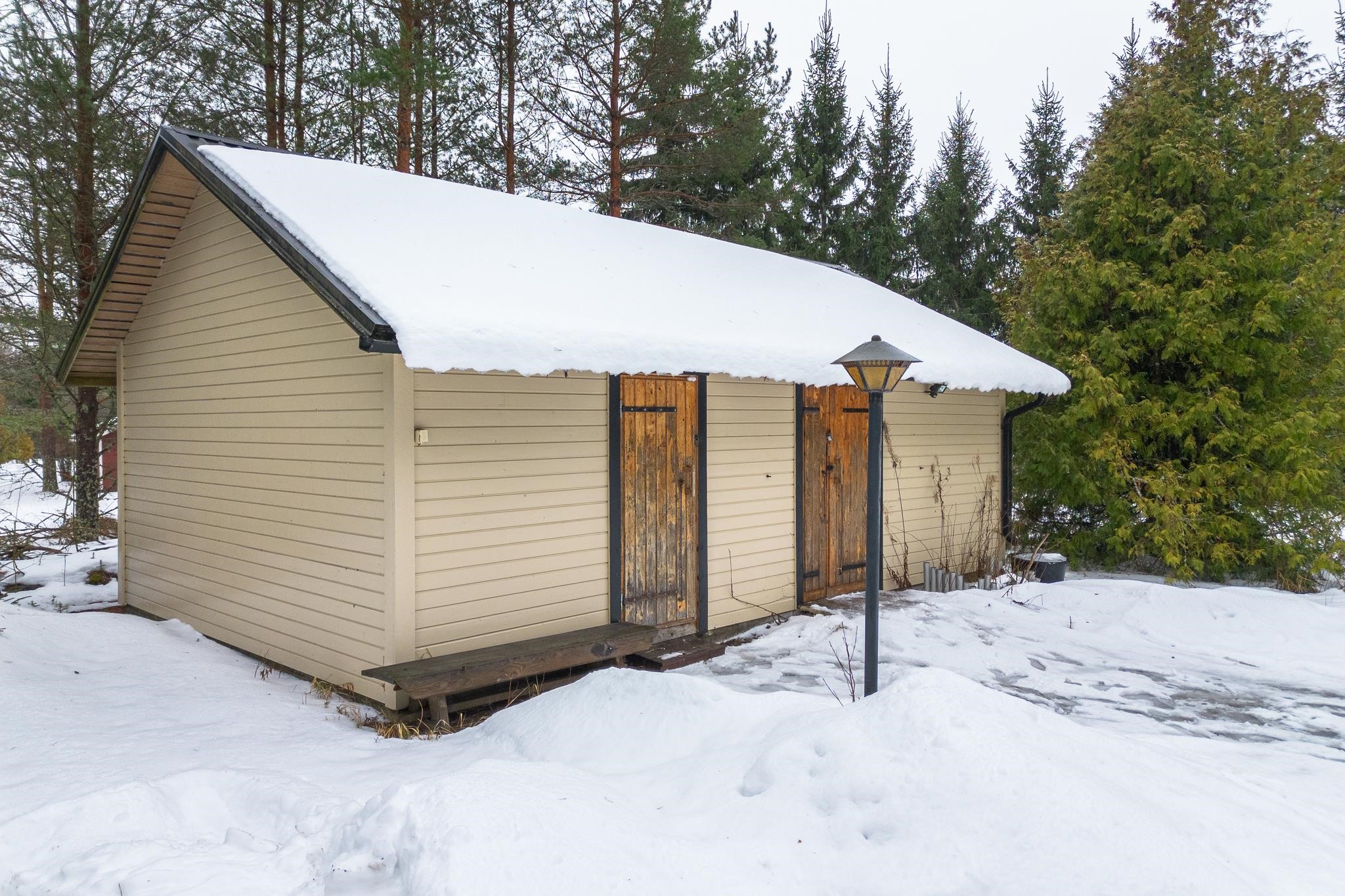 - Sauna, puukiuas Aito kertälämmitteinen, erillinen wc, suihku, peilit, allaskaappi, pesukoneliitäntä, kiinteät valaisimet.