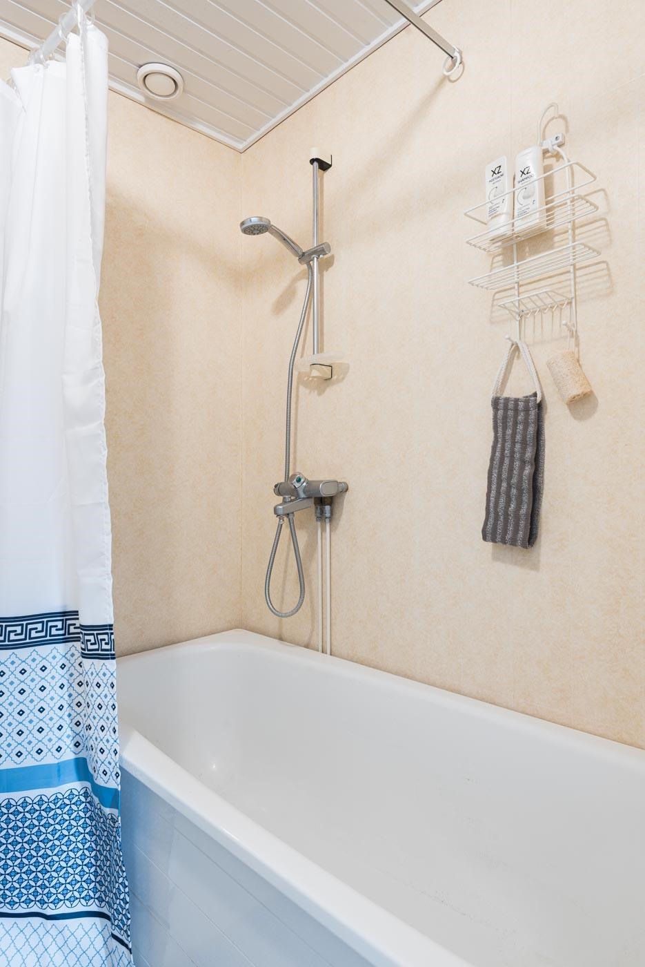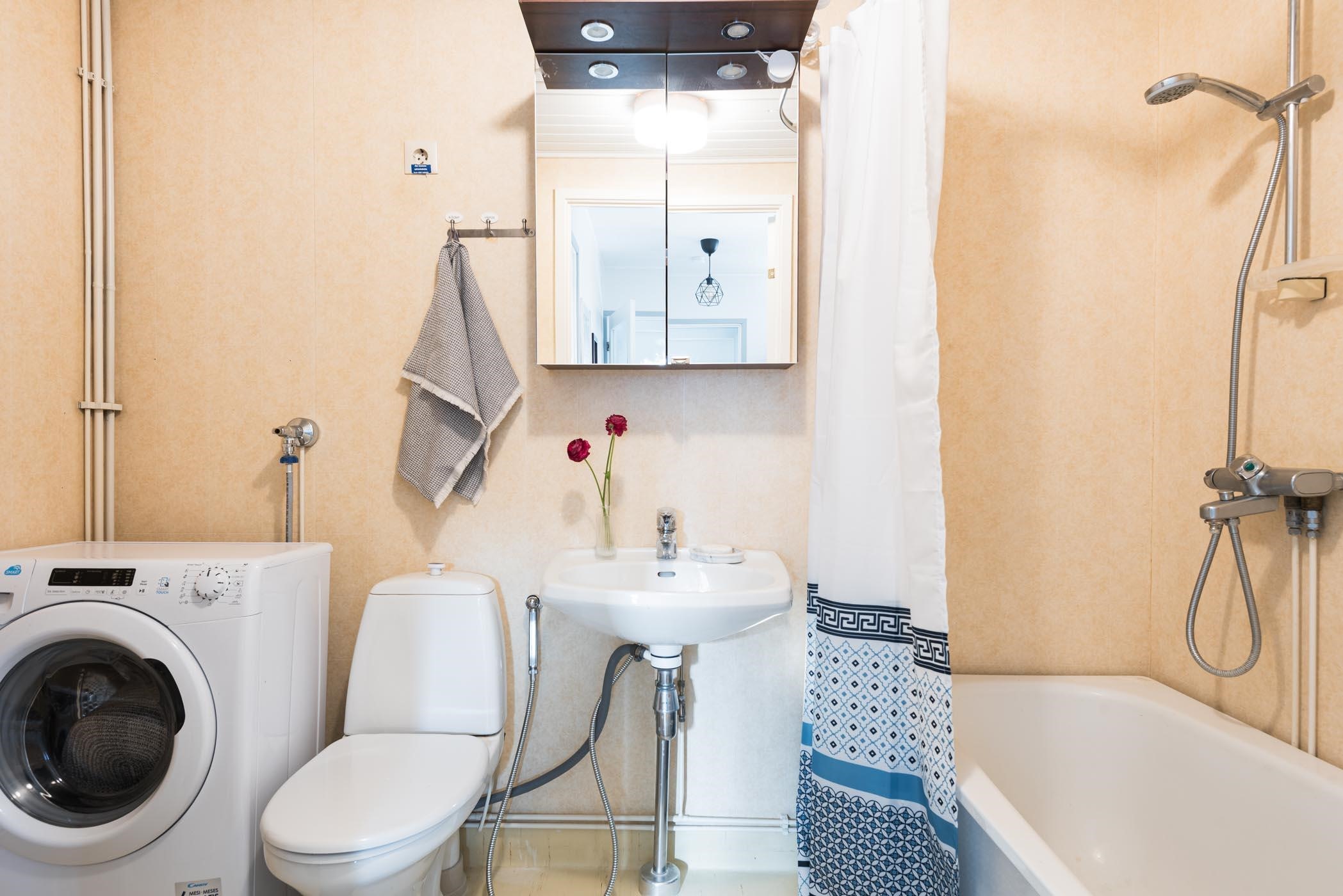 - Kylpyhuone, suihku, amme Kalusteamme, peilikaappi, kaapit, pesukoneliitäntä, kiinteät valaisimet.
