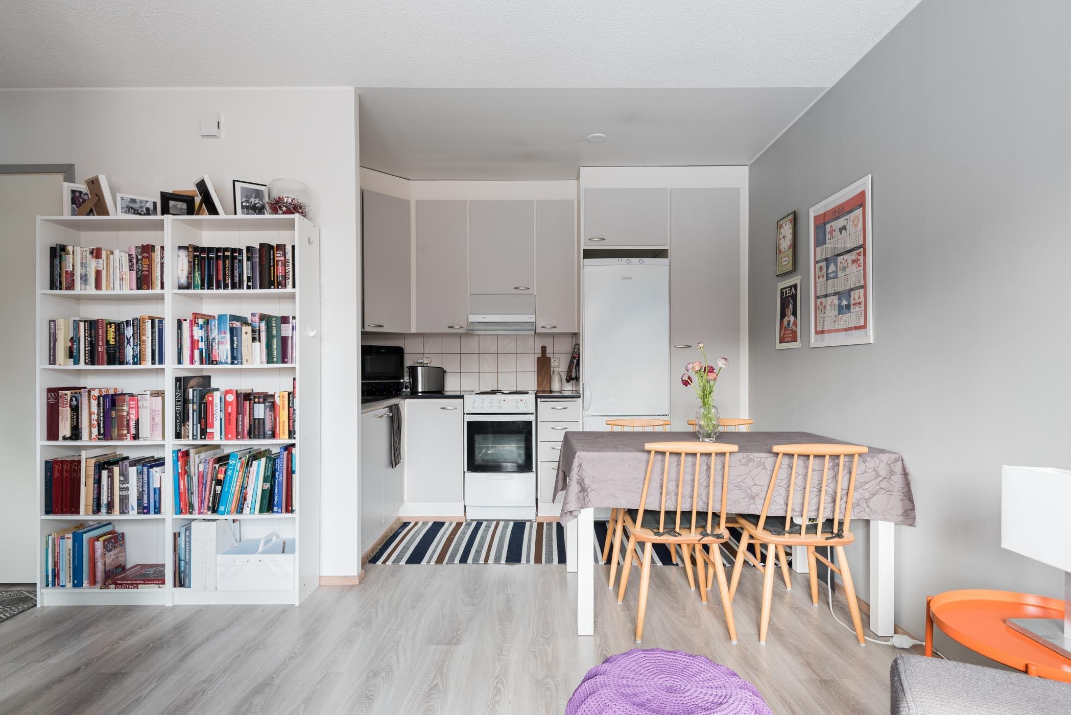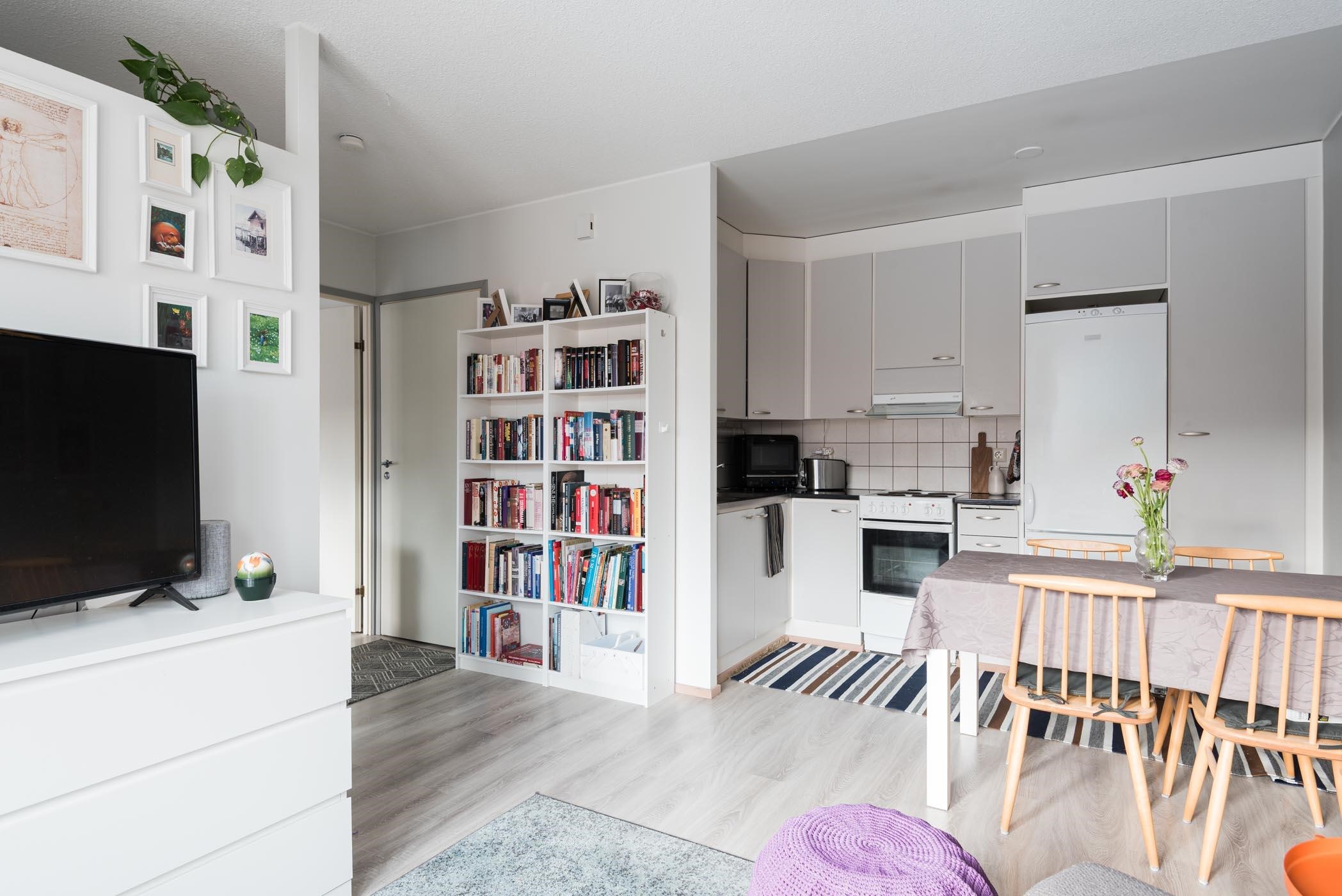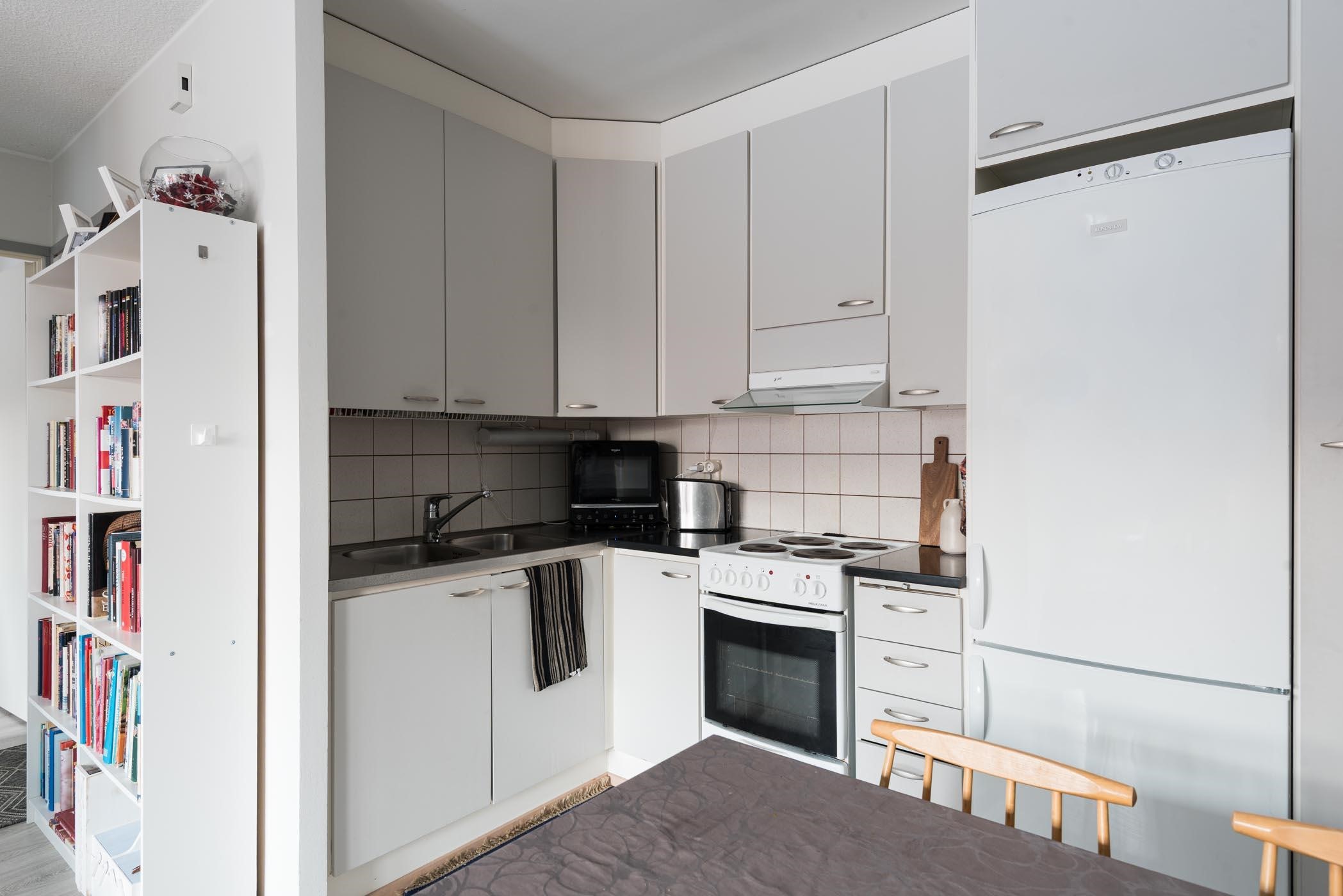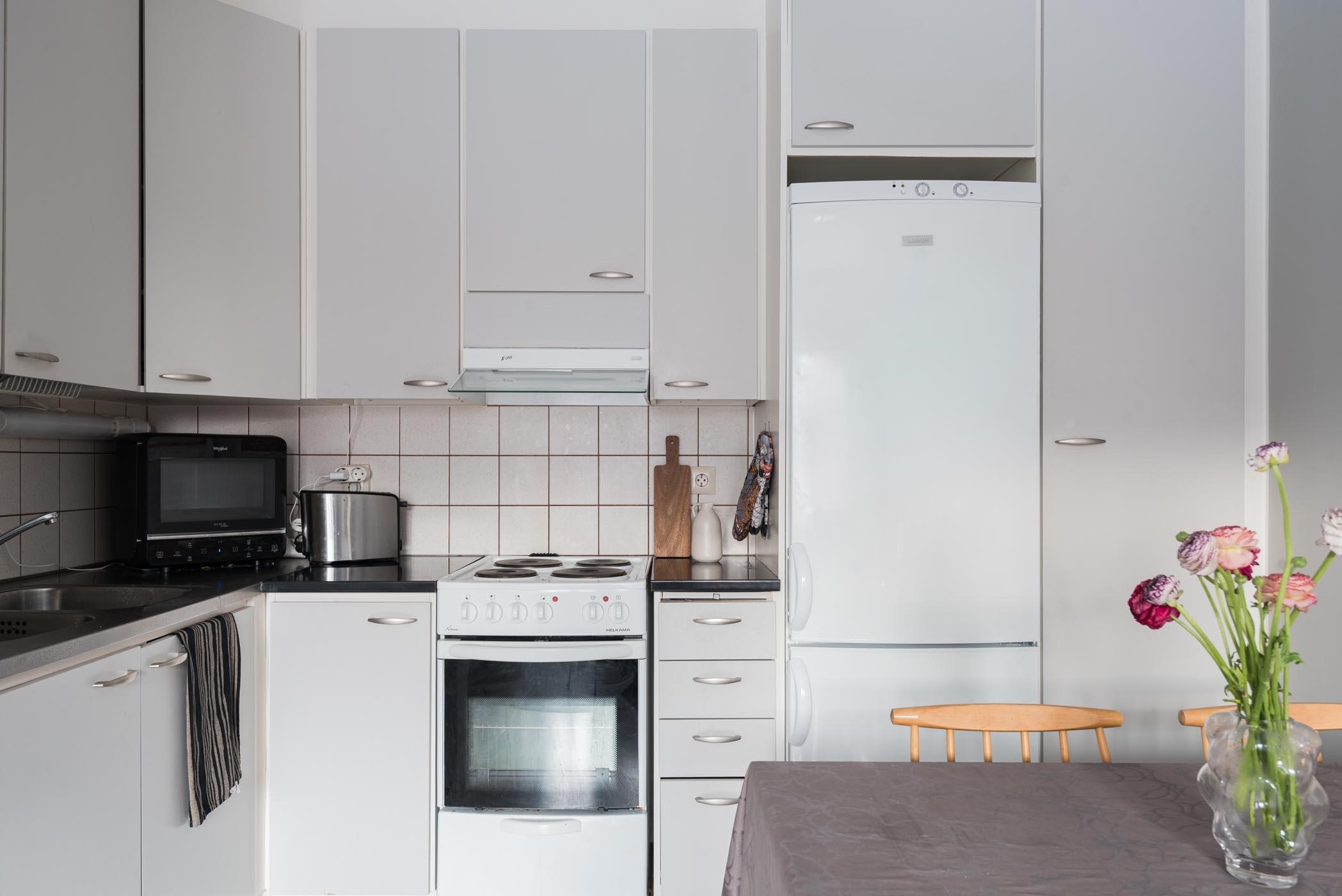 - Jääkaappipakastin, sähköliesi, liesituuletin, kaapistot, kiinteät valaisimet.