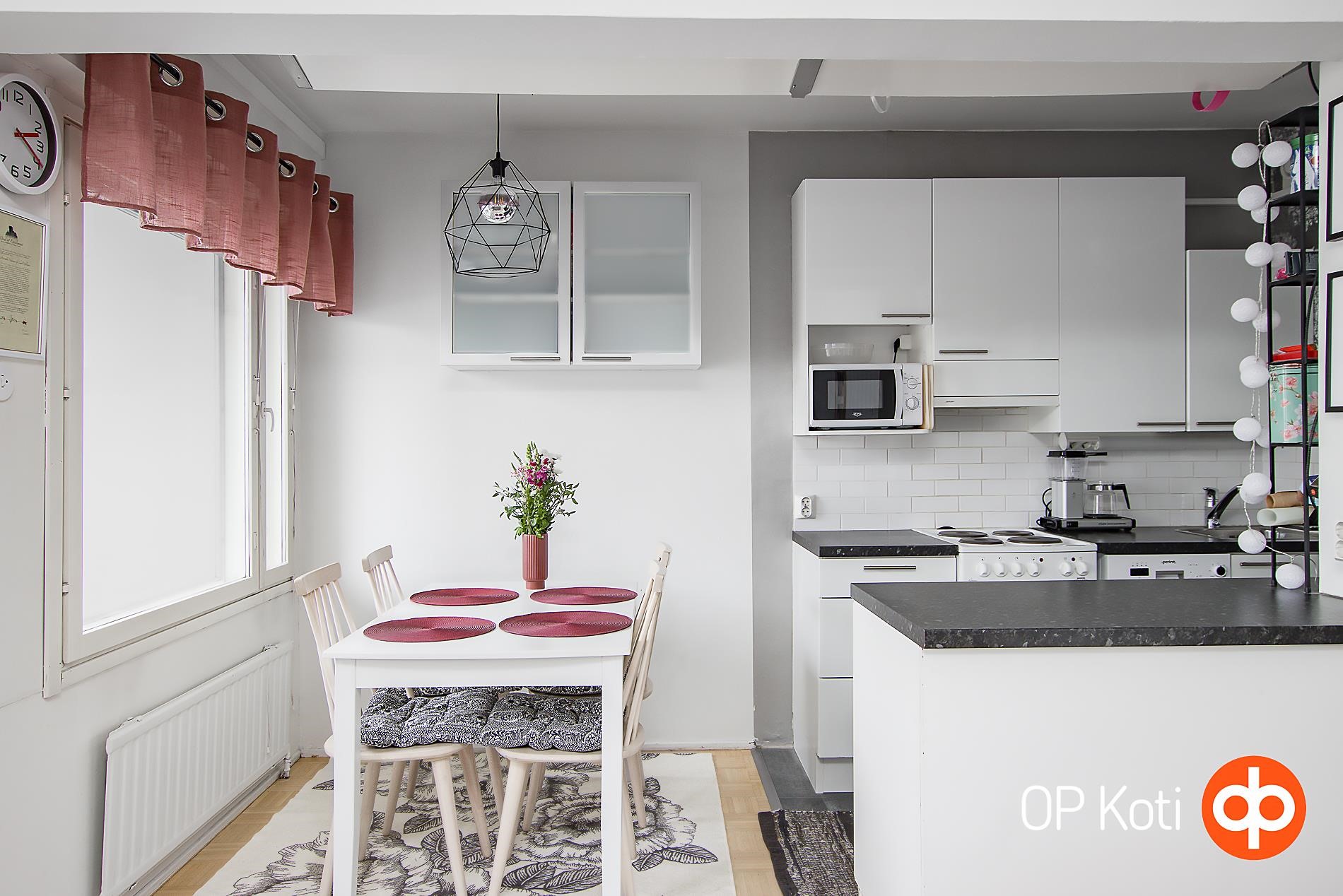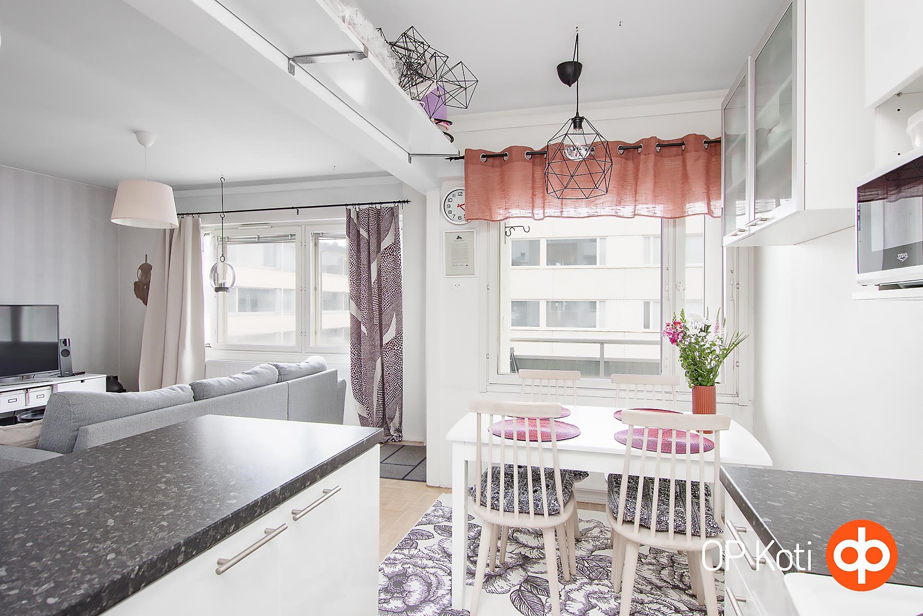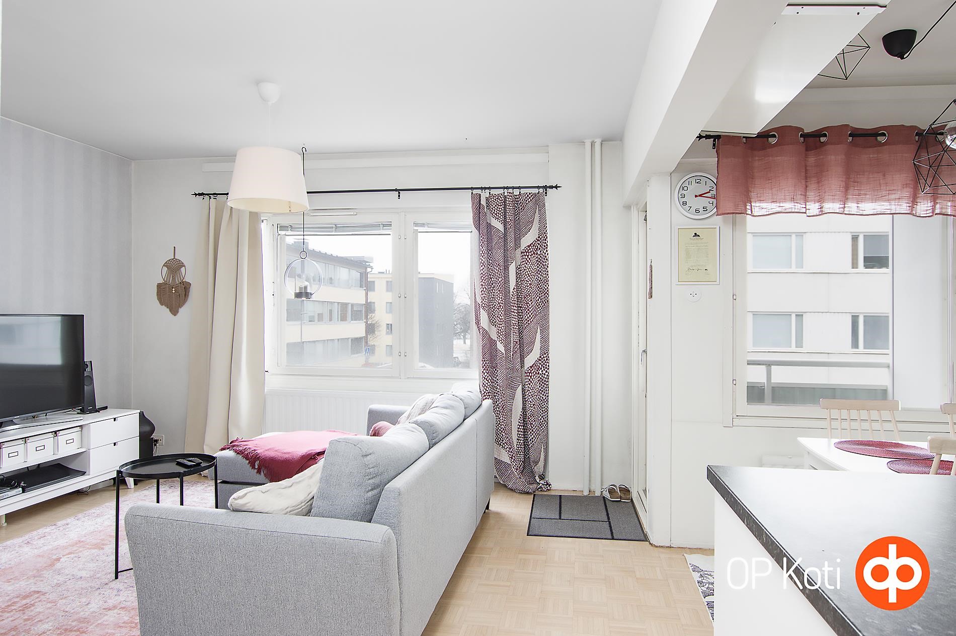 Tervetuloa viihtyisään kulmahuoneistoon, jossa jokainen neliö on käytetty taitavasti hyödyksi. Asunnon vaalea ja harmoninen värimaailma luo ilmavan ja rauhallisen tunnelman heti sisään astuttaessa. Kaunis, vaalea parkettilattia viimeistelee kokonaisuuden ja tuo tiloihin ajattoman tyylin. Vaaleasävyinen keittiö tarjoaa työskentelytilaa ja sinne mahtuu hyvin ruokapöytä täydellinen paikka niin arkisille aterioille kuin ystävien kestitsemiselle. Olohuoneen jatkeena sijaitseva parveke tarjoaa mukavan lisätilan oleskeluun ja rentoutumiseen. Taloyhtiössä on tehty mittava ja arvostettu LVIS saneeraus, jonka ansiosta asuminen on huoletonta pitkälle tulevaisuuteen. Sijainti Kuopiolahden sekä Musiikkikeskuksen läheisyydessä tarjoaa ainutlaatuisen yhdistelmän kulttuuria, palveluja ja luonnonläheisyyttä. Alueen upeat ulkoilureitit kutsuvat liikkumaan vuoden ympäri.Tässä koti, jossa hyvät puitteet arkeen ja vapaa aikaan kohtaavat.