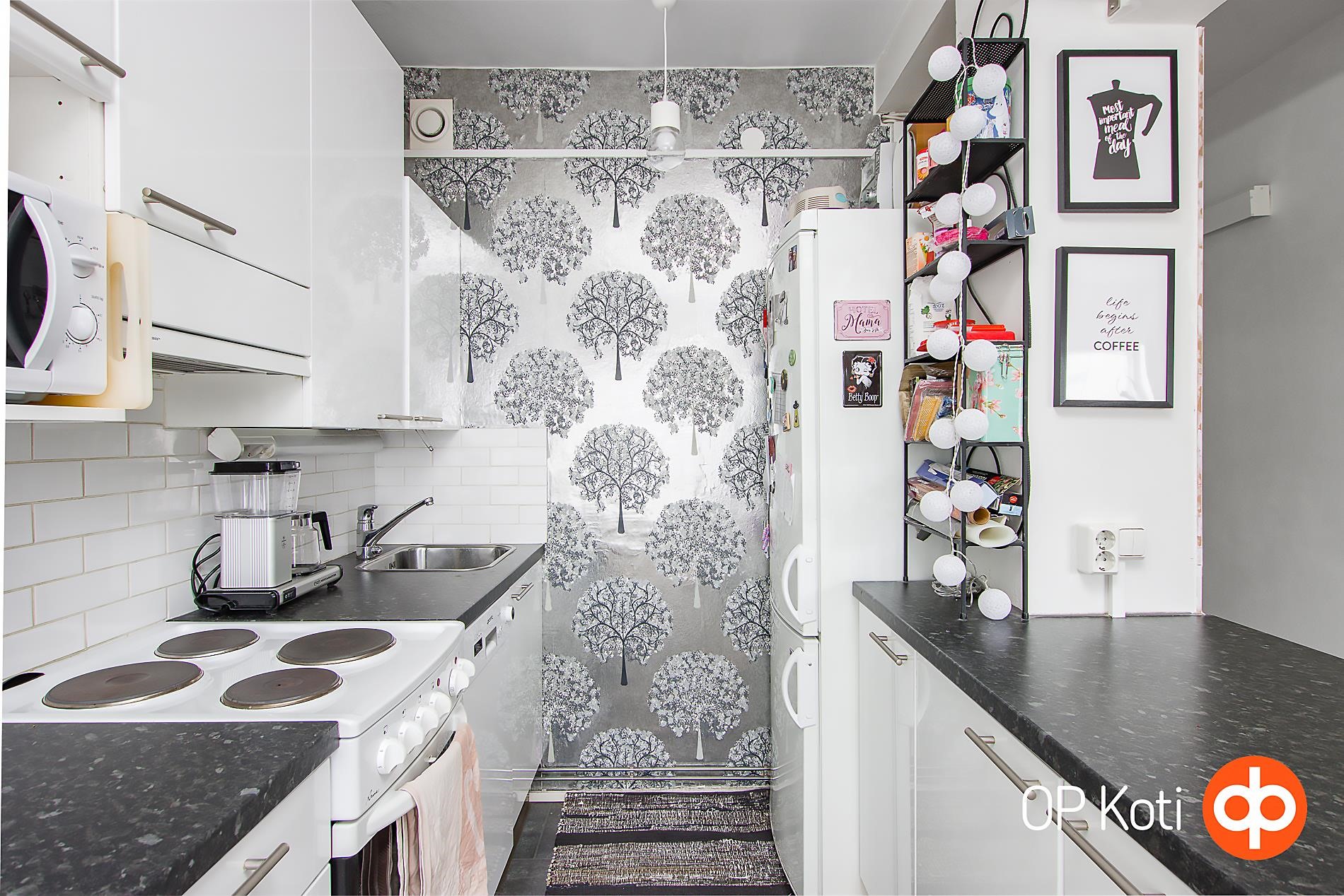 - Jääkaappipakastin, sähköliesi, liesituuletin Aktiivihiilisuodatin, astianpesukone, kaapistot korkeakiilto ovet, kiinteät valaisimet. Keittiö remontoitu v. 2010