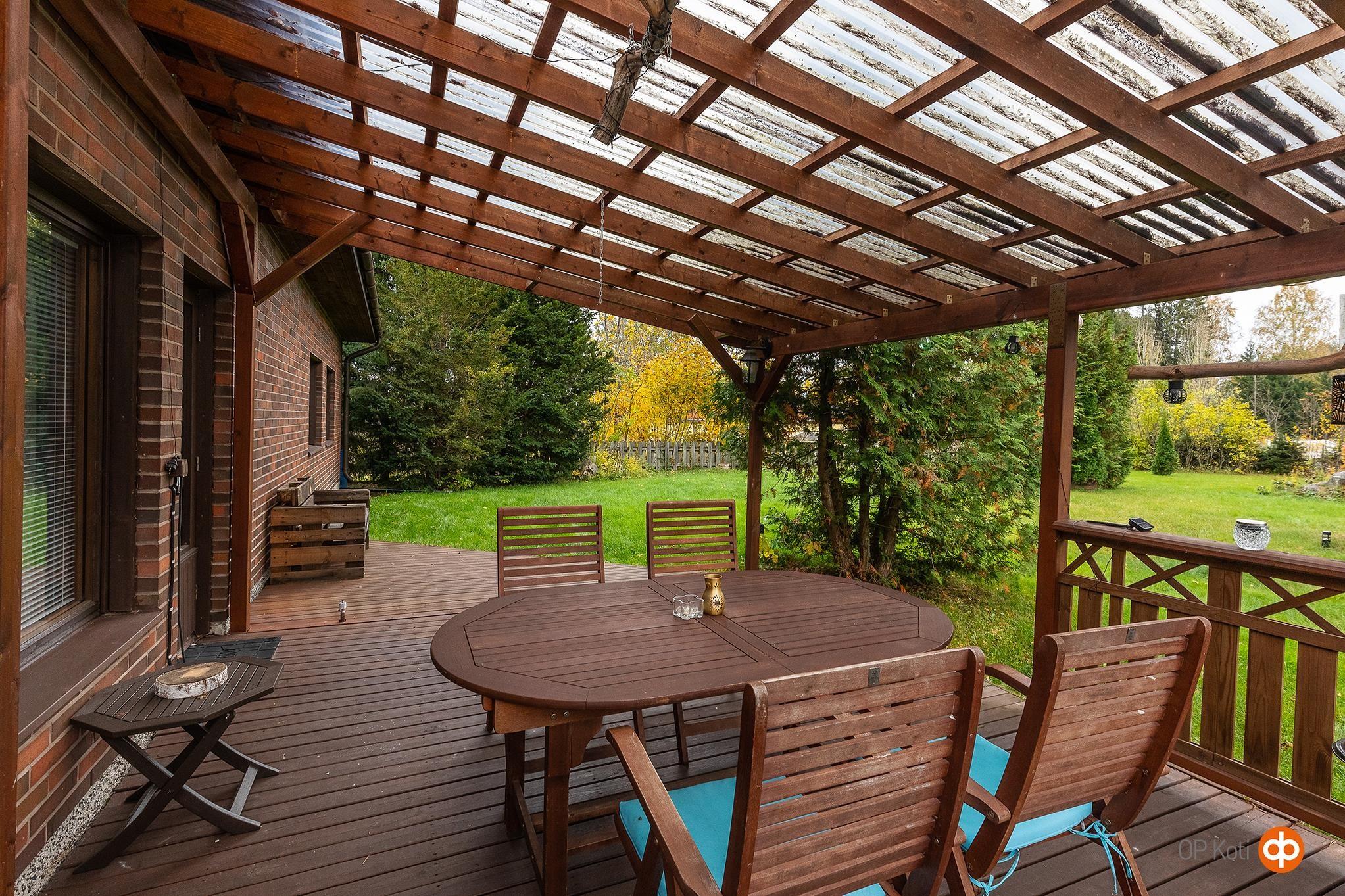 Tilava hyvin hoidettu puutarhatontti puineen, pensaineen ja istutuksineen. Kiitettävästi vuosien saatossa remontoitu omakotitalo. Asuintilat toimivasti yhdessä tasossa. Remontoidut olohuone ja vaalea keittiö muodostavat avaran ja tilavan yhtenäisen kokonaisuuden, kolme makuuhuonetta, erillinen wc, eteisaula, takkahuone, pesuhuone ja sauna. Lisäksi varasto, kellaritila, harrastetilana toimiva autotalli sekä pannuhuone.