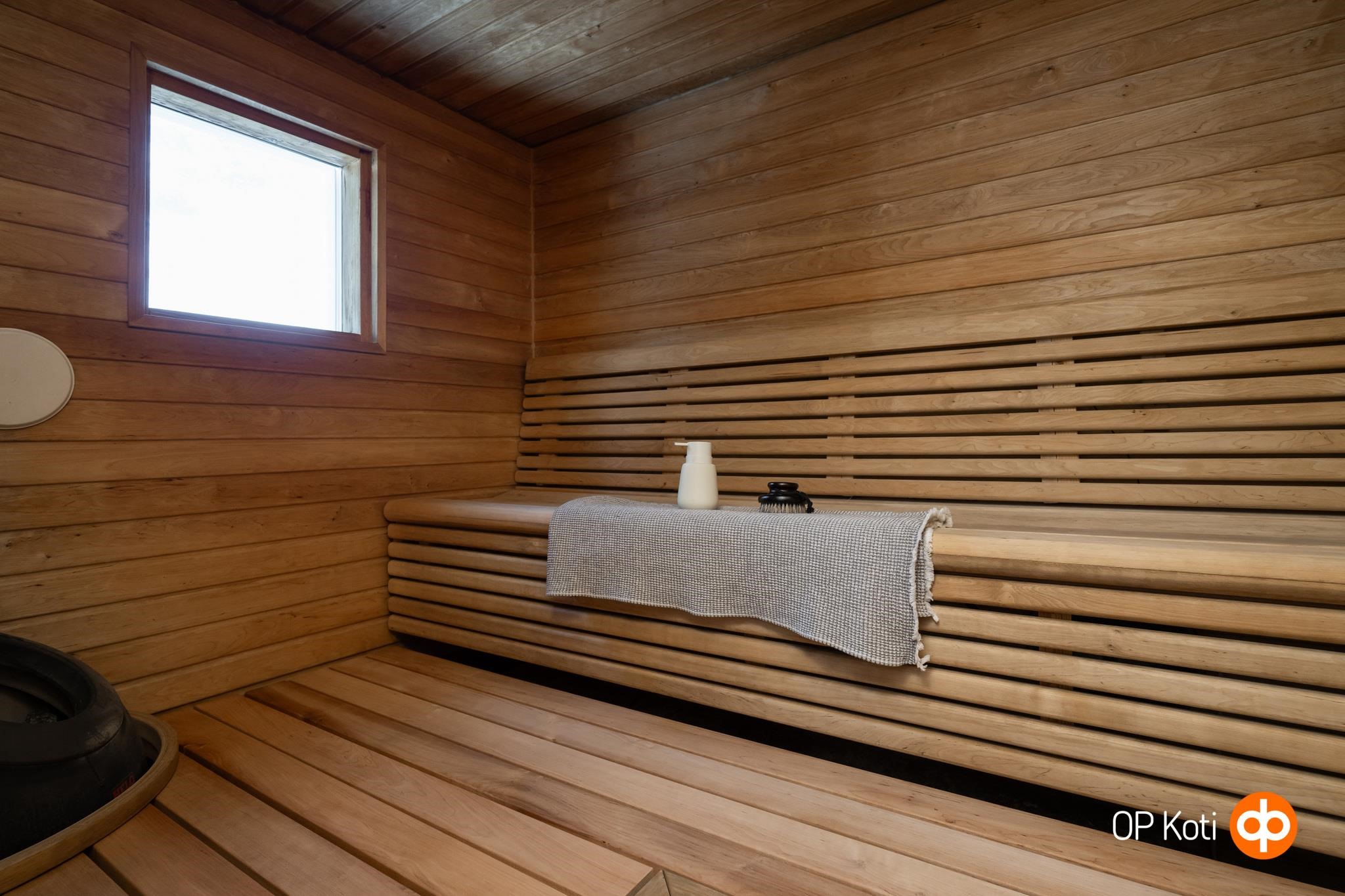 - Sauna, sähkökiuas, kylpyhuone, erillinen wc, suihku 2 kpl, peilit, peilikaappi, kaapit, pesukoneliitäntä, lattialämmitys, kiinteät valaisimet.