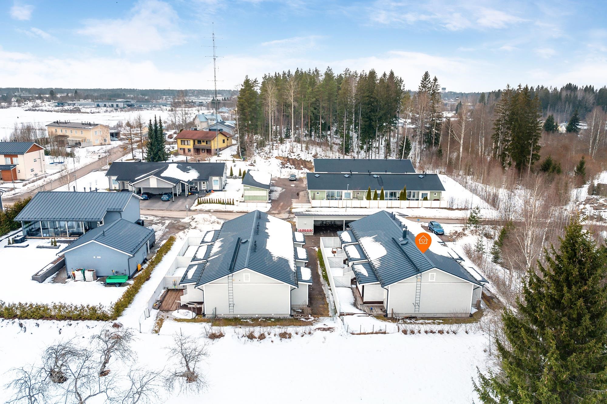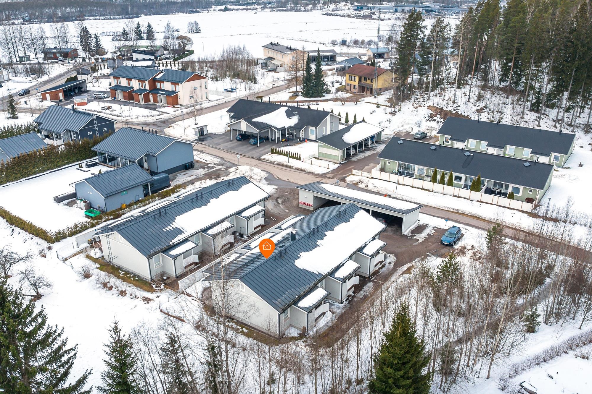Autokatospaikka kuuluu asuntoon, mikä lisää arjen helppoutta erityisesti talviaikaan. Sijainti Ojala-Tuomelan alueella on pidetty, lähellä ovat niin palvelut, ulkoilumaastot kuin sujuvat kulkuyhteydetkin.
