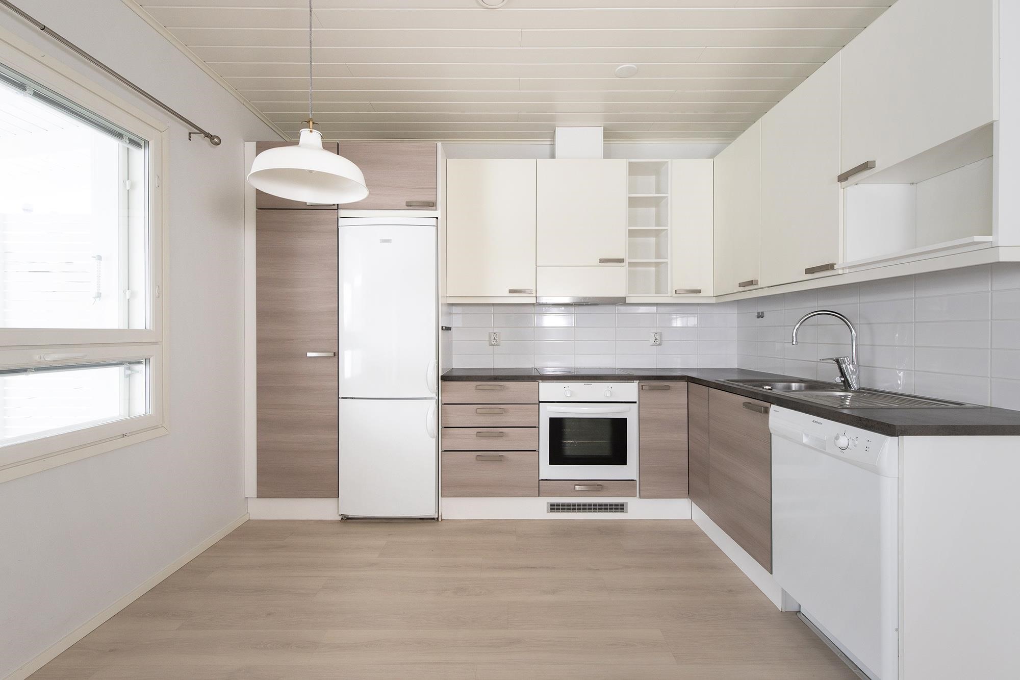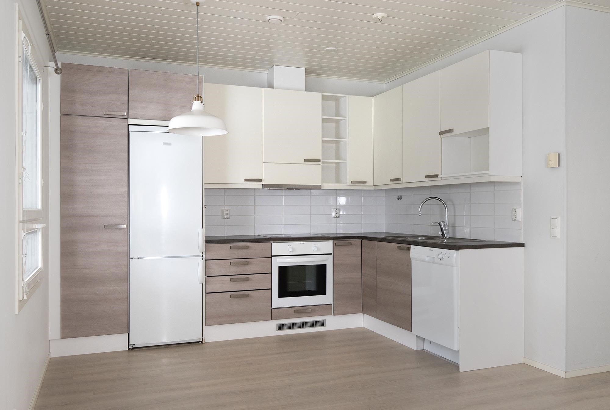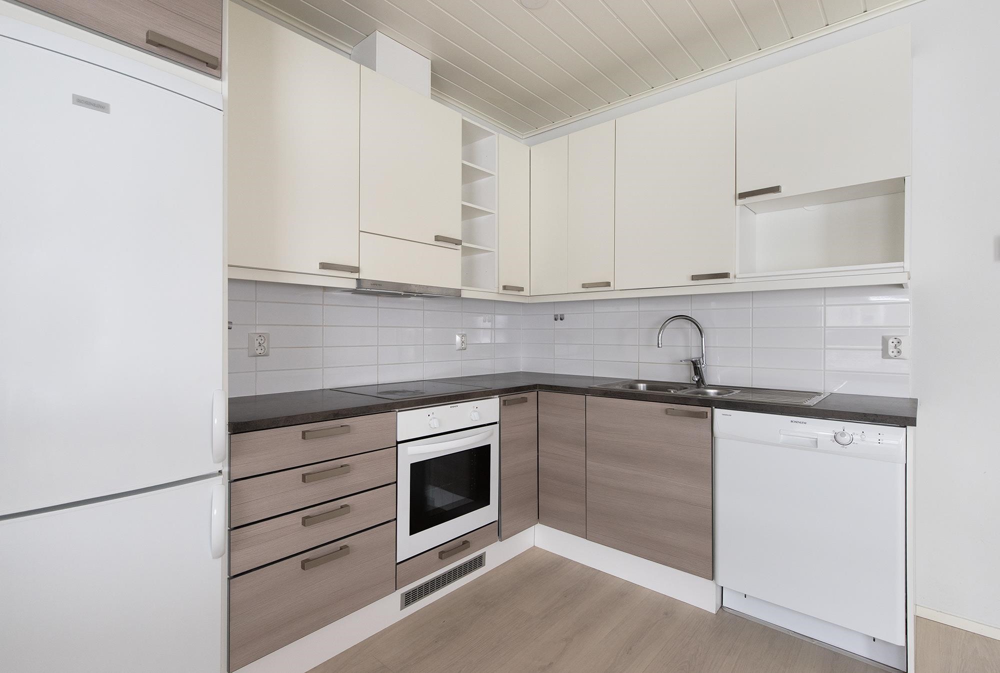 - Jääkaappipakastin, induktioliesi, liesituuletin, astianpesukone, kaapistot.