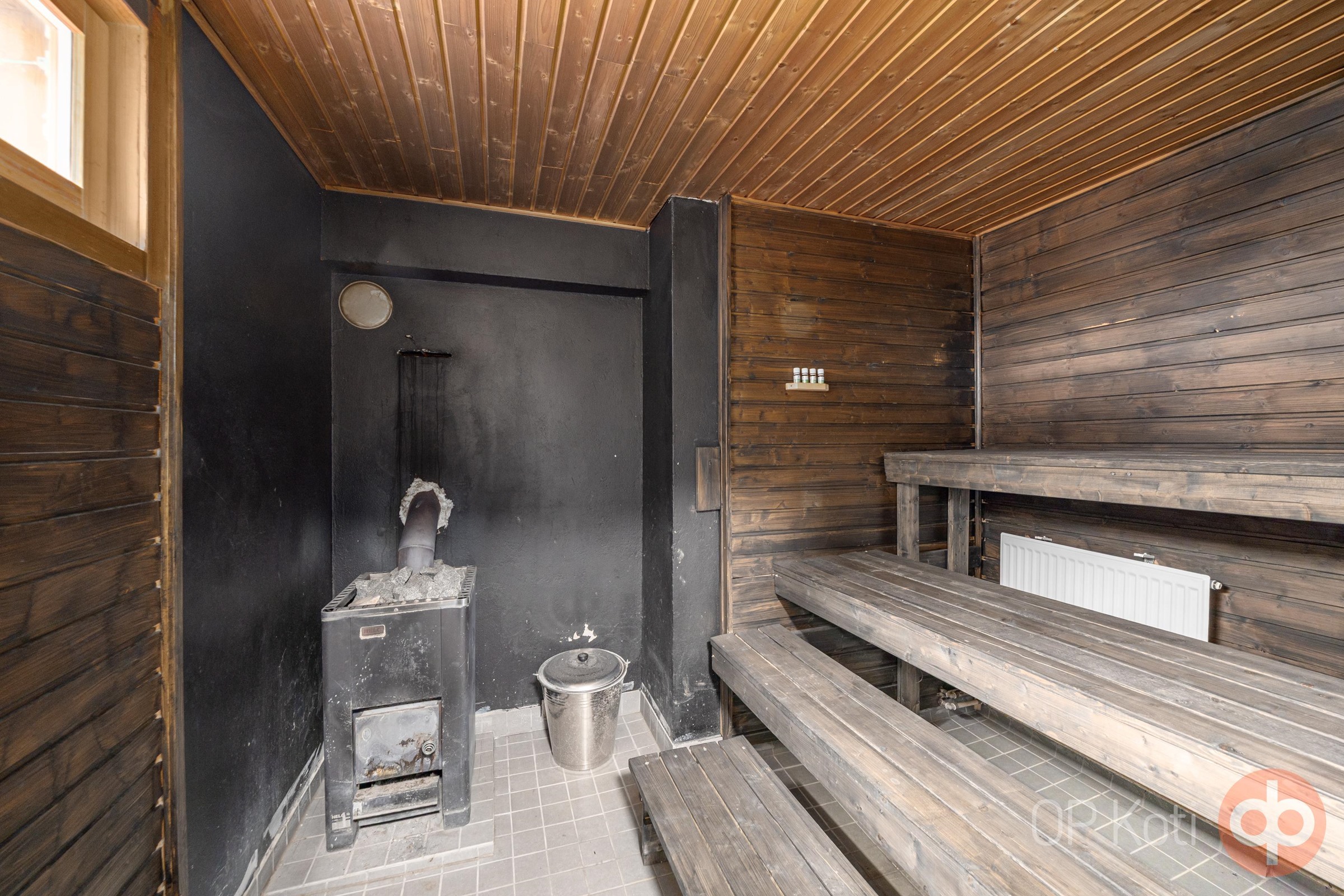 - Sauna, puukiuas, erillinen wc, suihku, suihkuseinä, peilikaappi, pesukoneliitäntä, lattialämmitys.