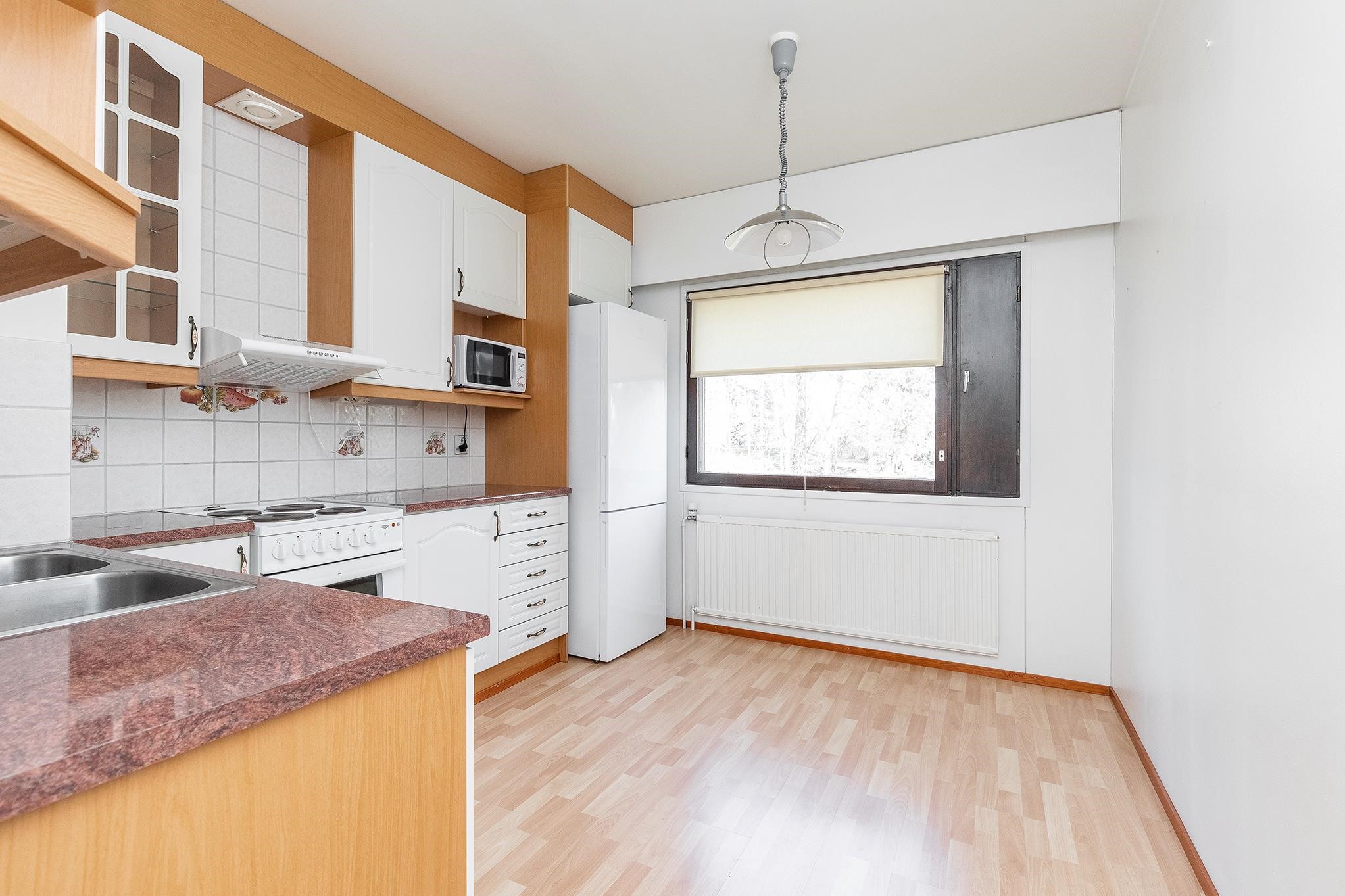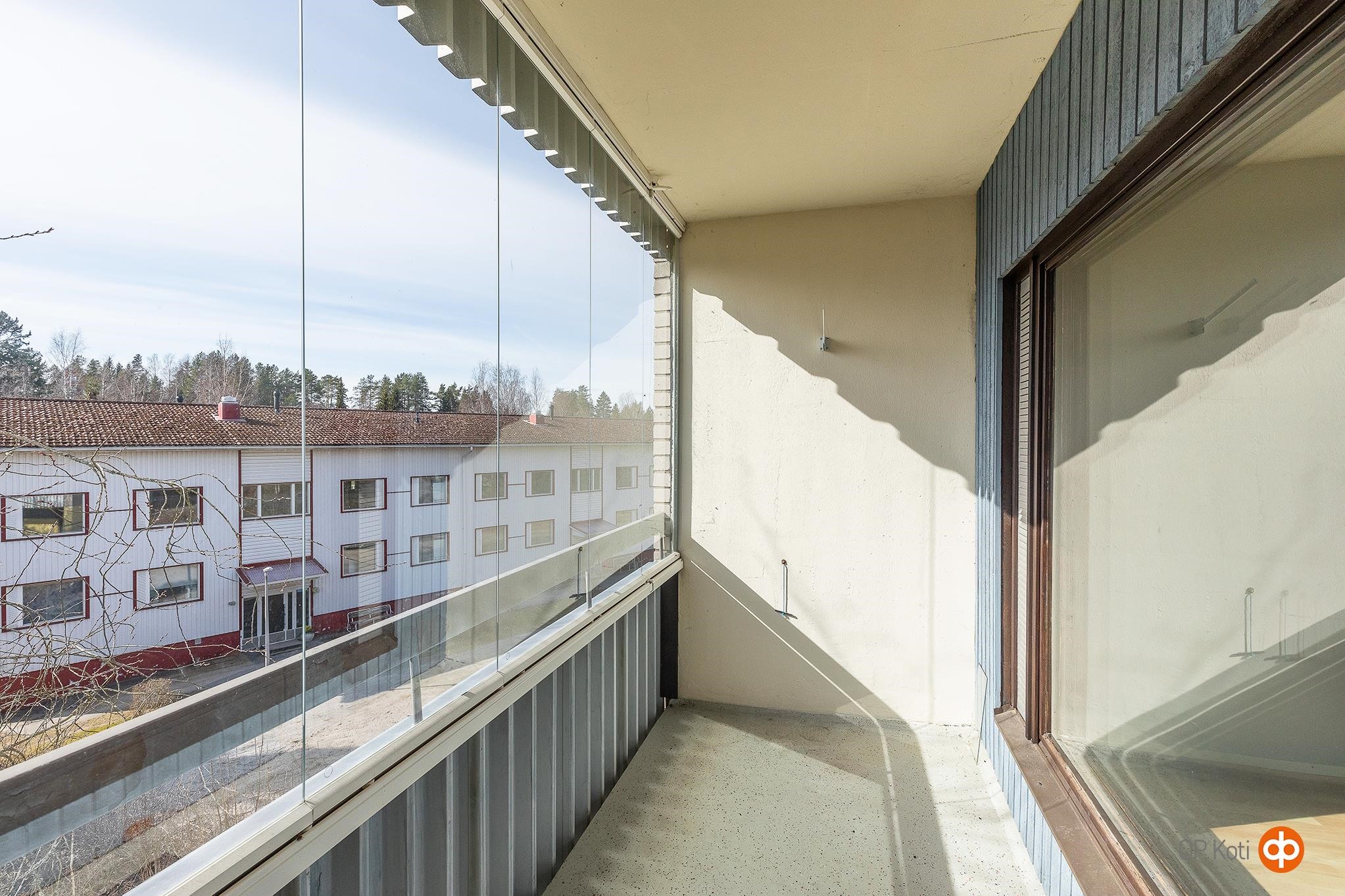 HUONEISTO Huoneistossa on mukavan kokoinen olohuone, jonka jatkona on lasitettu parveke ilta-auringon suuntaan. Siistissä keittiössä on tilaa isommallekin pöytäryhmälle. Makuuhuone on keittiön vieressä ja siellä on jonkun verran säilytystilaa.