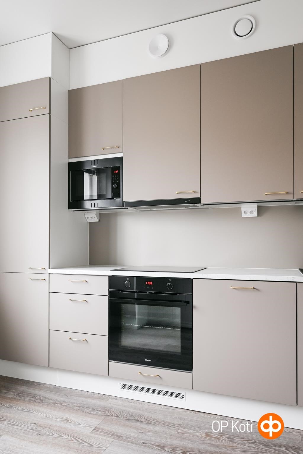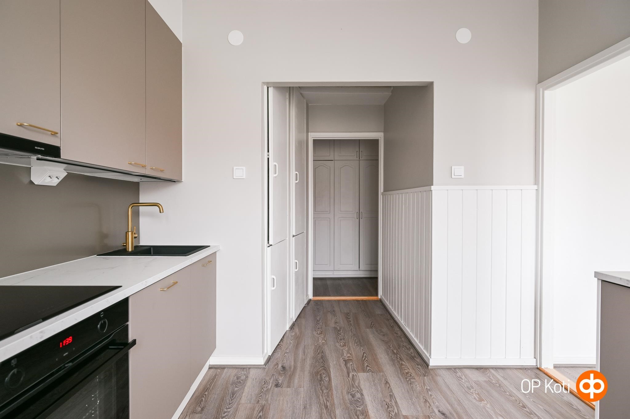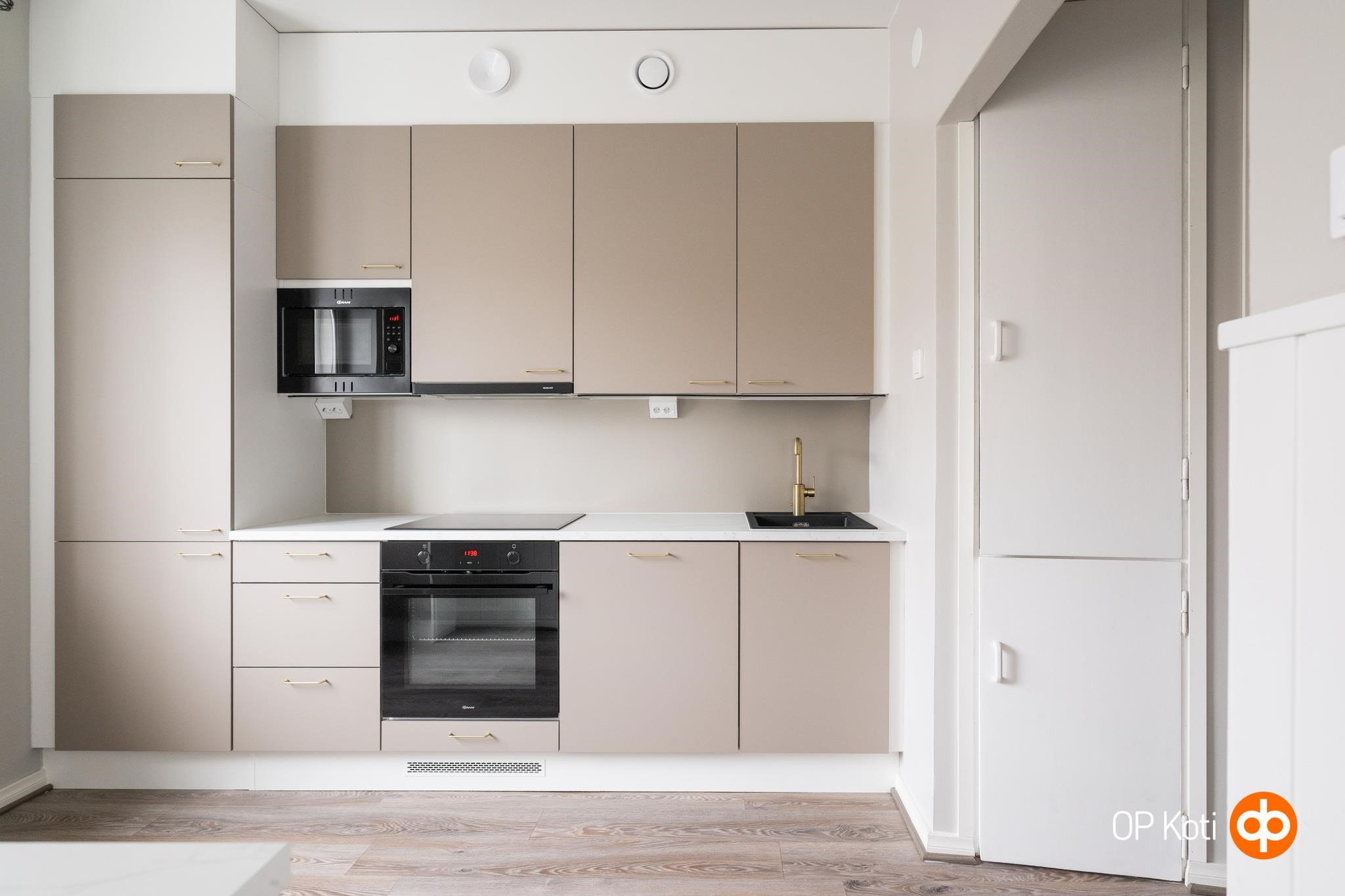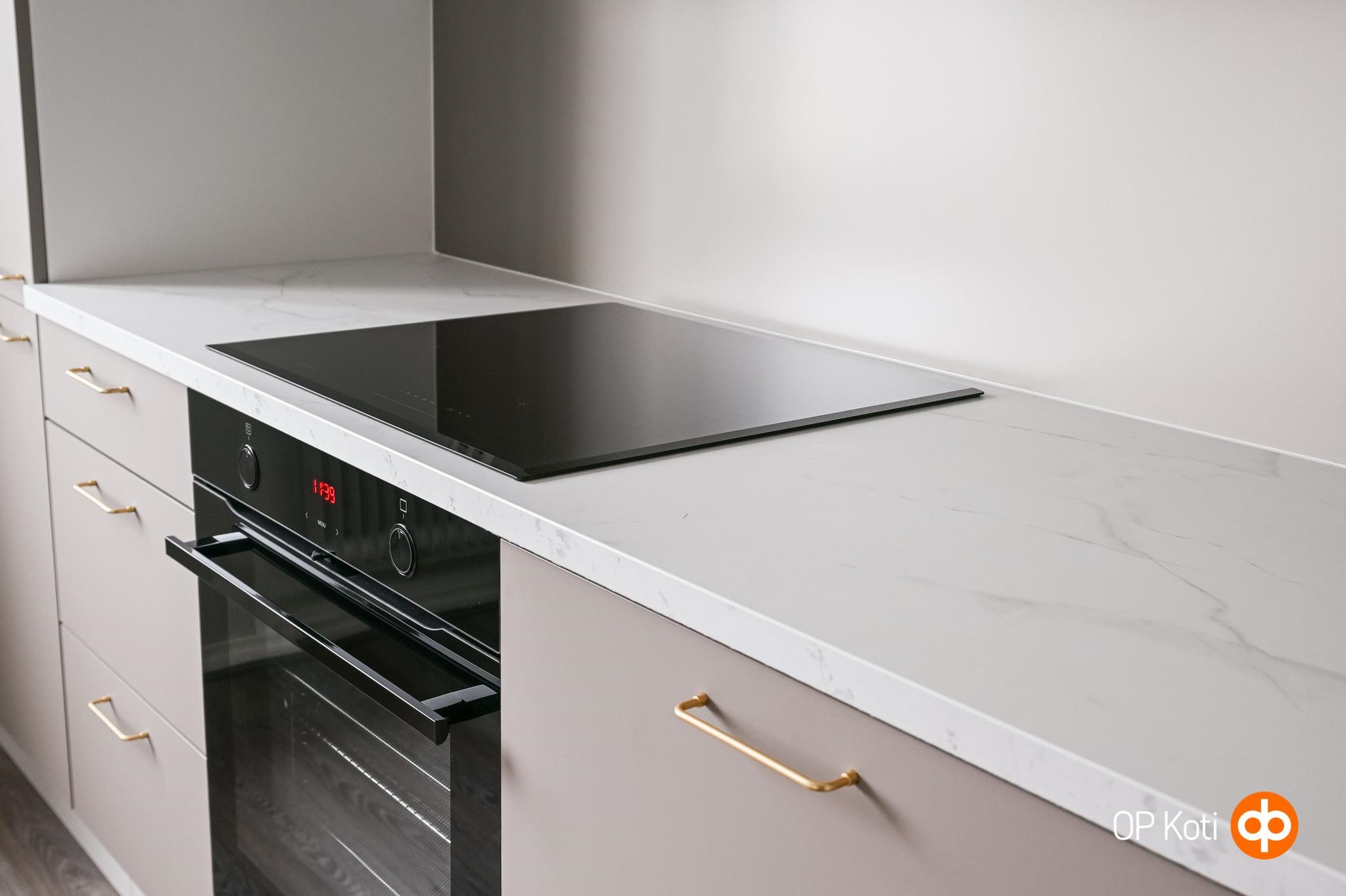 - Jääkaappipakastin, erillisuuni, liesitaso, induktioliesi, liesituuletin, mikroaaltouuni, astianpesukone, kaapistot, kiinteät valaisimet. Keittiö remontoitu 2026, integroidut kodinkoneet.