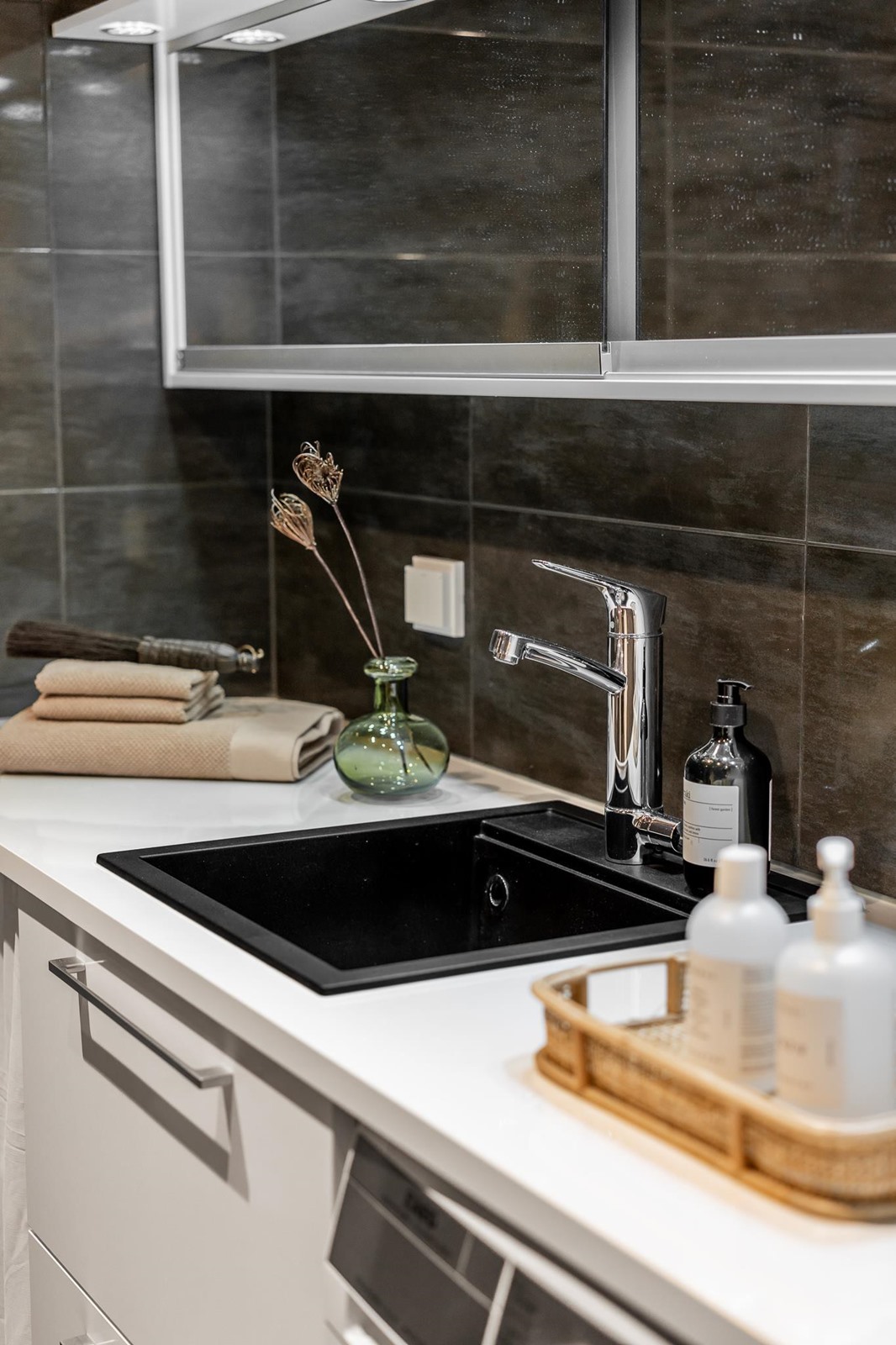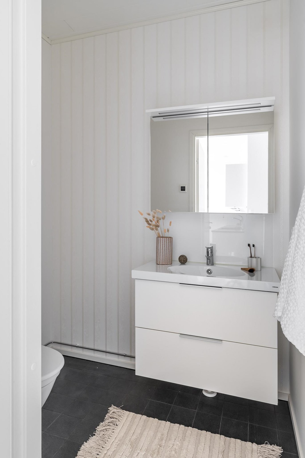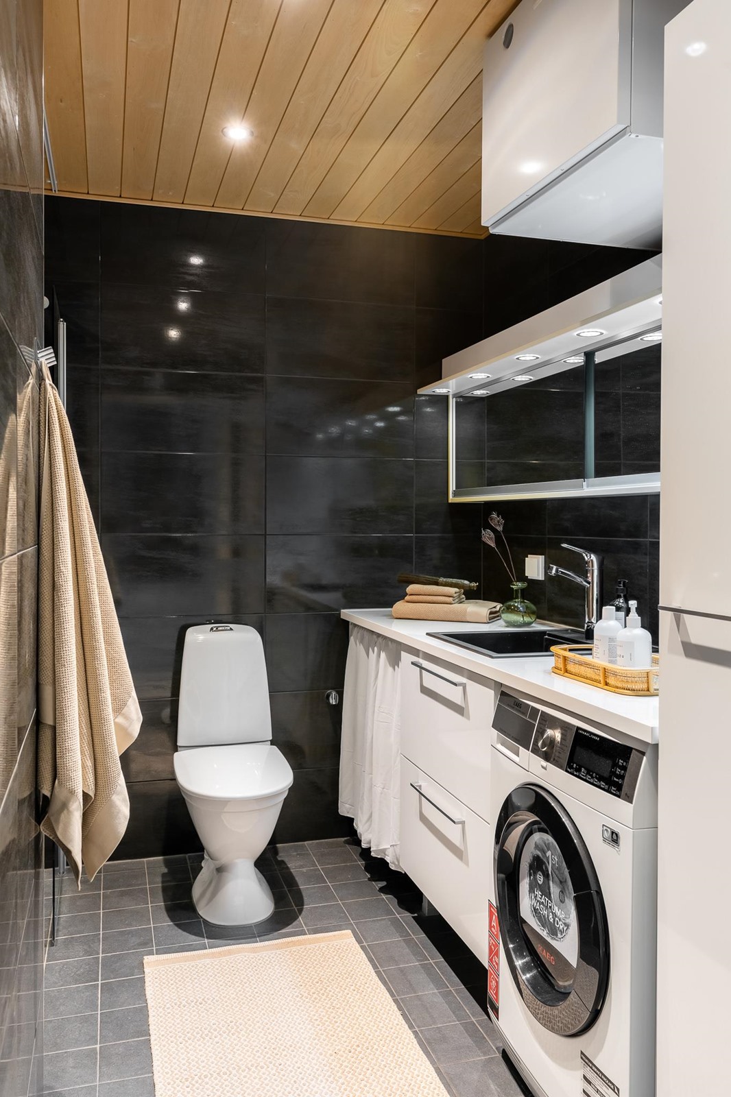 - Sauna, sähkökiuas, kylpyhuone, erillinen wc, suihku, suihkuseinä, peilikaappi, kaapit, allaskaappi, pesukoneliitäntä, lattialämmitys, kiinteät valaisimet.