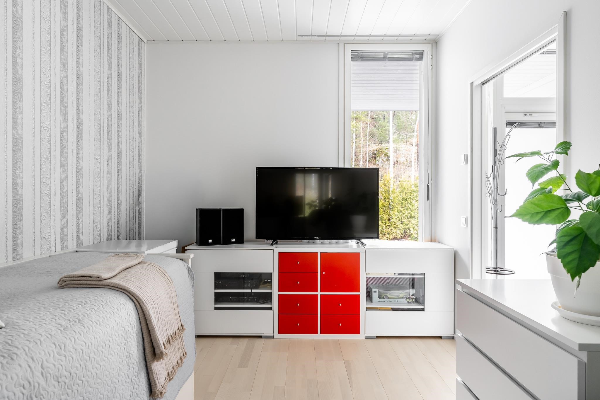 Huoneiston pohjaratkaisu on selkeä ja tilava: kaksi makuuhuonetta, avara olohuone ja ruokailutila sekä käytännöllinen keittiö, jossa on kaikki tarpeellinen sujuvaa arkea varten. Kylpyhuone ja oma sauna tuovat arkeen pientä ylellisyyttä, ja kodin pinnat ovat siistit ja ajattomat. Kodin runsaiden liukuovikaappien lisäksi käytössäsi on myös lämmin ulkovarasto. Huoneistokohtainen ilmanvaihto sekä viilennys tekevät asumisesta miellyttävää ympäri vuoden.