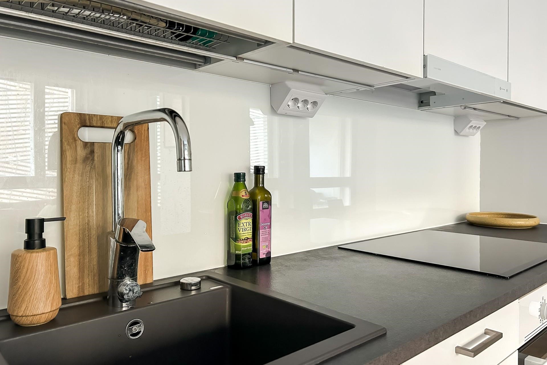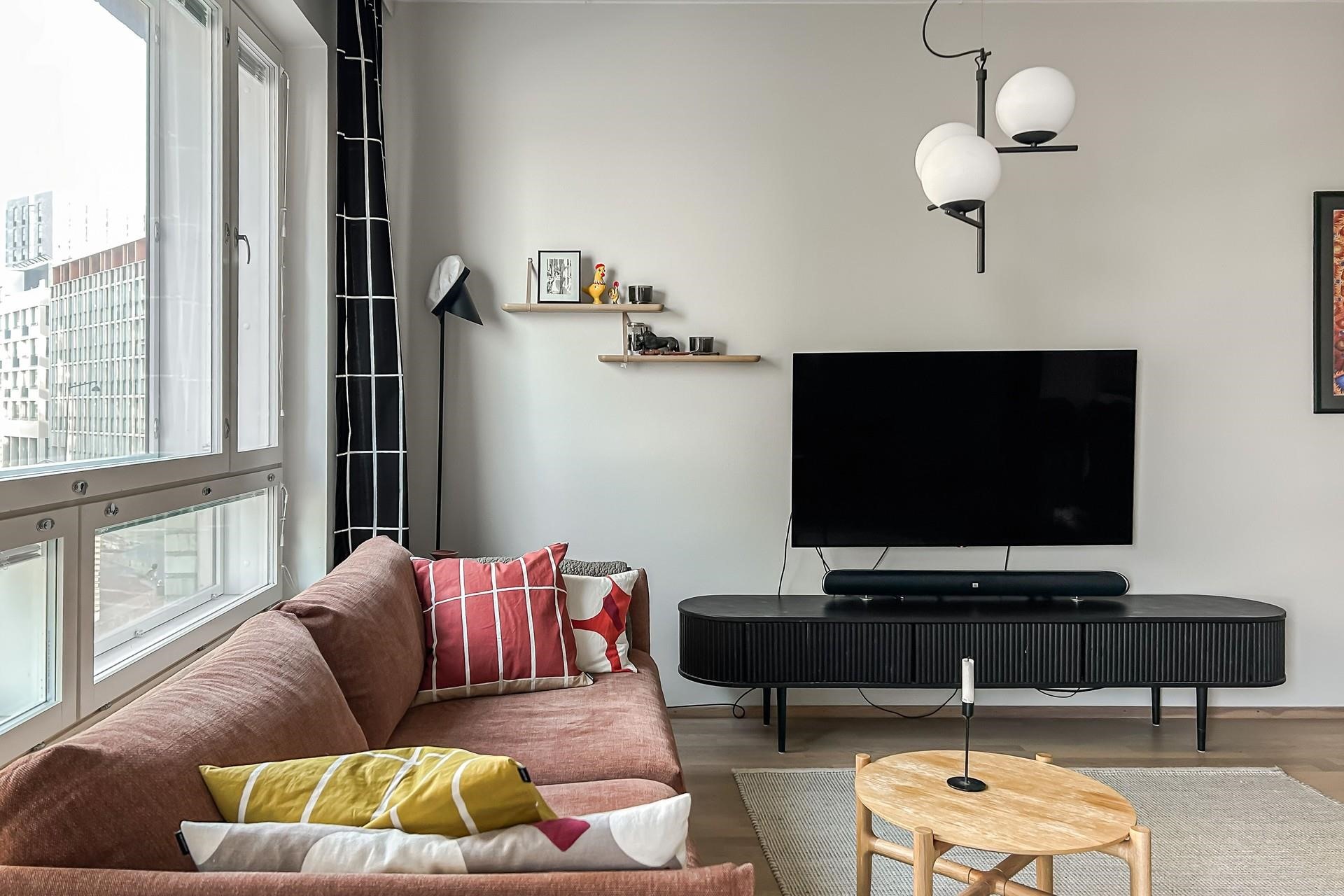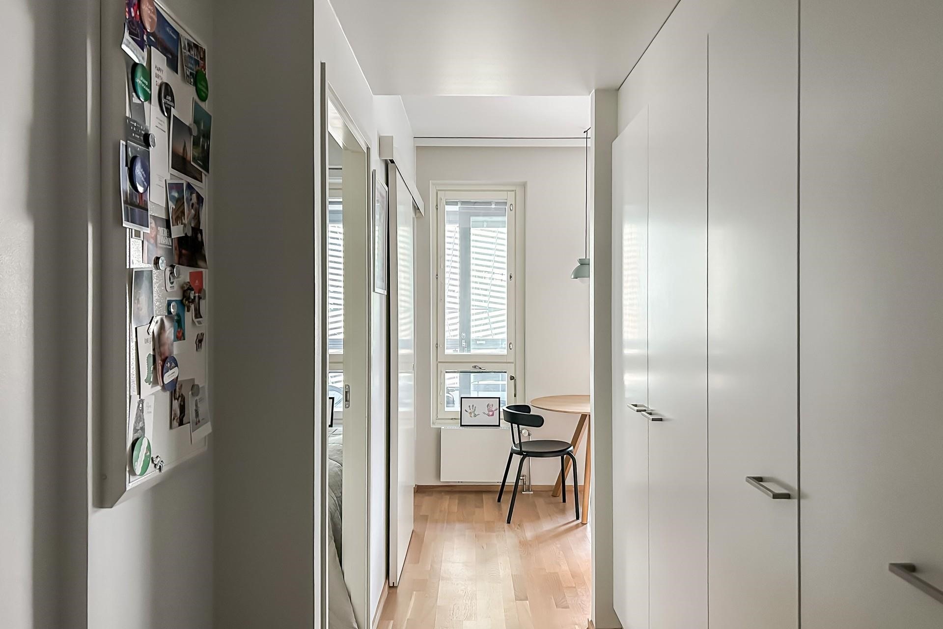 Toimivapohjainen koti sopii niin yksin asuvan kuin pariskunnankin tarpeisiin. Moderni avokeittiö laadukkailla integroiduilla kodinkoneilla sekä huoneiston tyylikkäät pintamateriaalit tekevät kokonaisuudesta huolitellun. Olohuoneesta pääset luoteen suuntaan olevalle lasitetulle parvekkeelle. Kylpyhuoneessa on paikka pyykinpesukoneelle.
