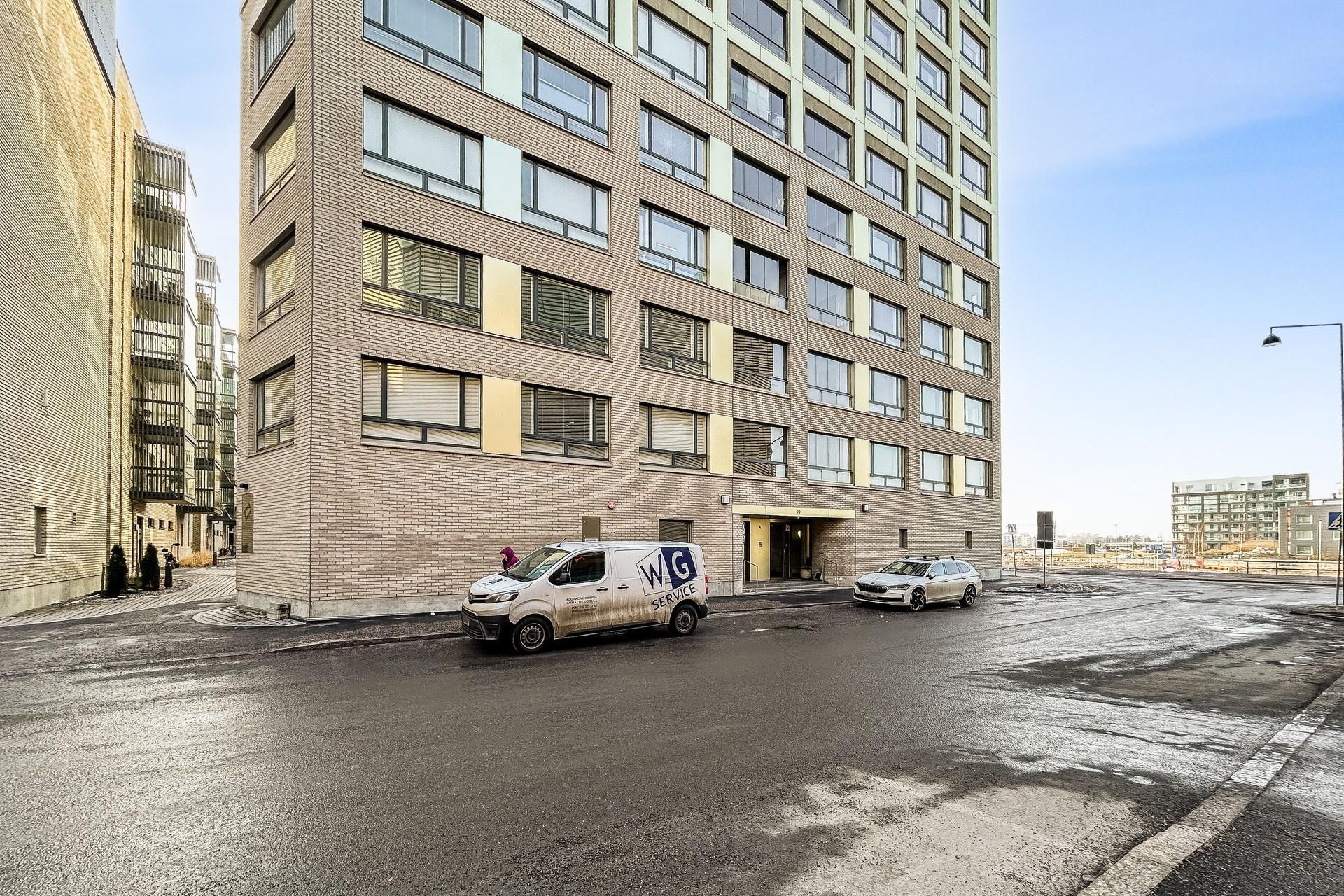 Palvelut: Alueella useita ruokakauppoja, esim. Jätkäsaaren Lidl 8 min kävelymatkan päässä (n. 600m). Alueella paljon ravintoloita ja kahviloita. 24h kuntosali Fressi Jätkäsaari 2 min kävelymatkan päässä asunnolta. Kauppakeskus Ruoholahti n. 1,2km asunnolta, Keskustan palveluihin n. 1,5km matkaa. Liikenneyhteydet: Hyvät kulkuyhteydet, ratikkapysäkki lähellä, Ruoholahden metroasemalle reilu kilometrin matka kävellen.