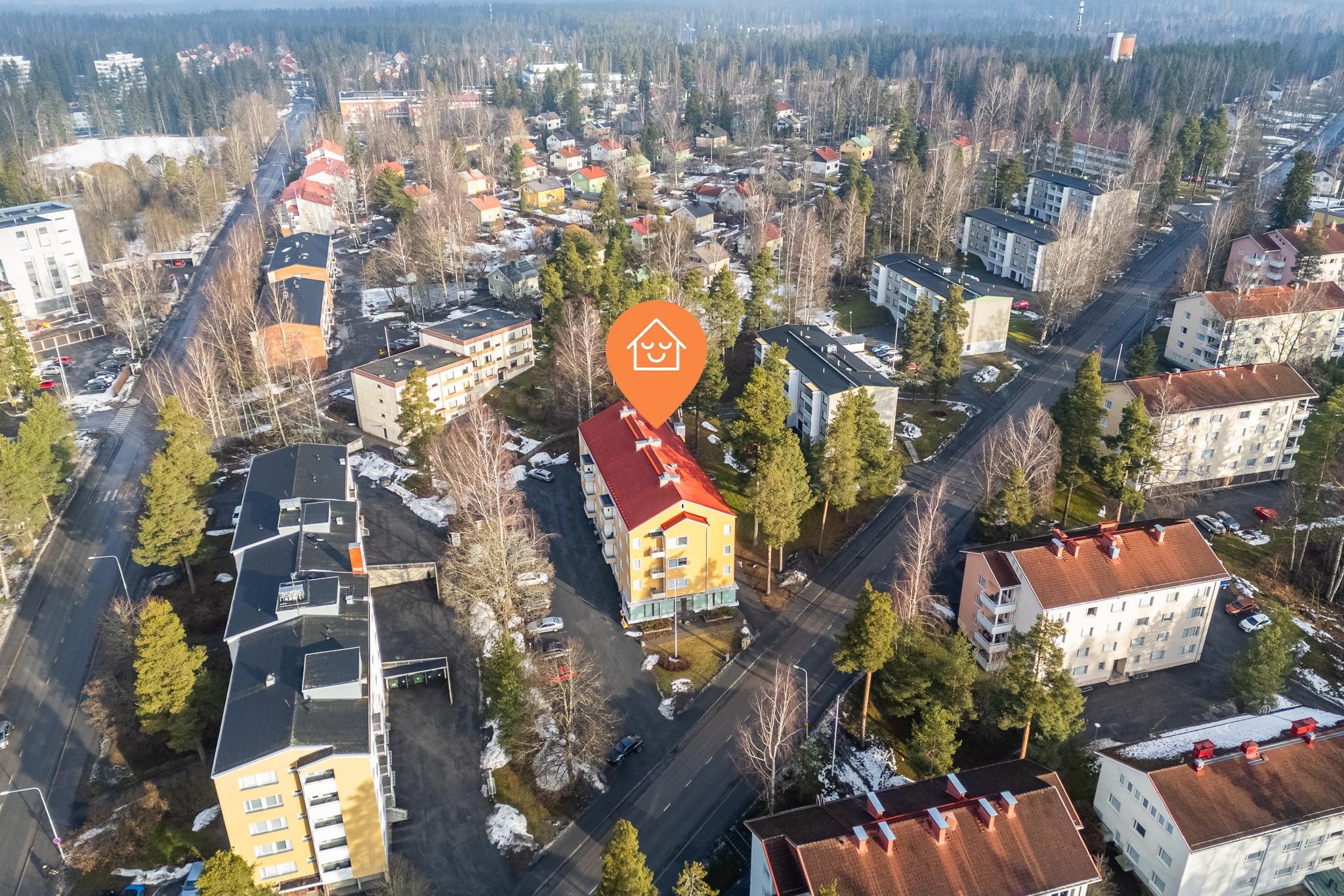 Asunnon sijainti on loistava, sillä lähikauppa on vain 100 metrin päässä ja Valkeakosken ydinkeskustan palvelut ovat kävelymatkan päässä. Liikenneyhteydet ovat erinomaiset, sillä vieressä ovat niin lähi- kuin kaukoliikenteen bussipysäkit. Kaikki kouluasteet löytyvät myös läheltä.