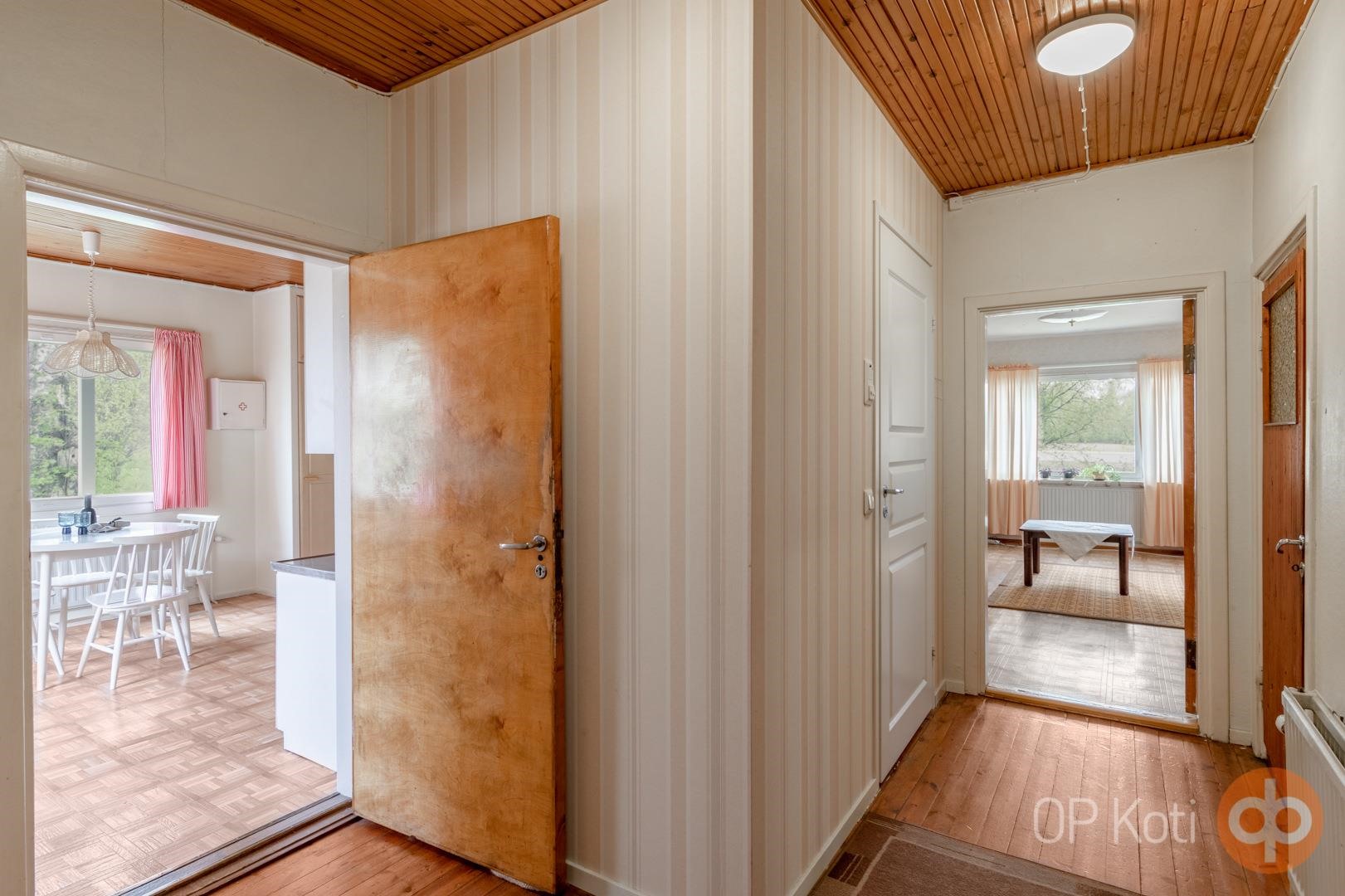 Omakotitalo on noin 110 m2 ja siinä on kolme makuuhuonetta sekä lisäksi kellarikerroksessa on pesutilat ja harrastetilaa. Kodissa on öljylämmitys.
