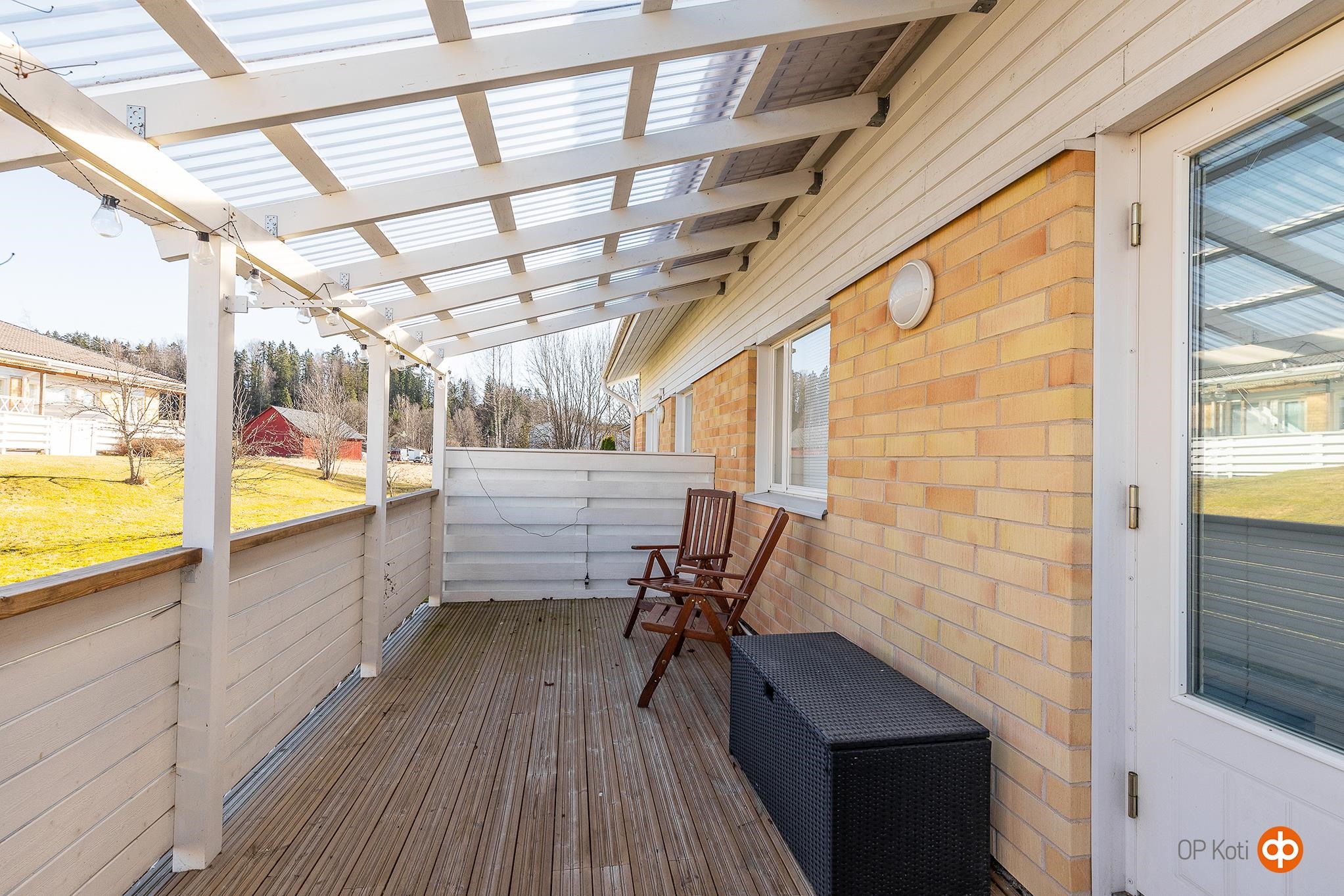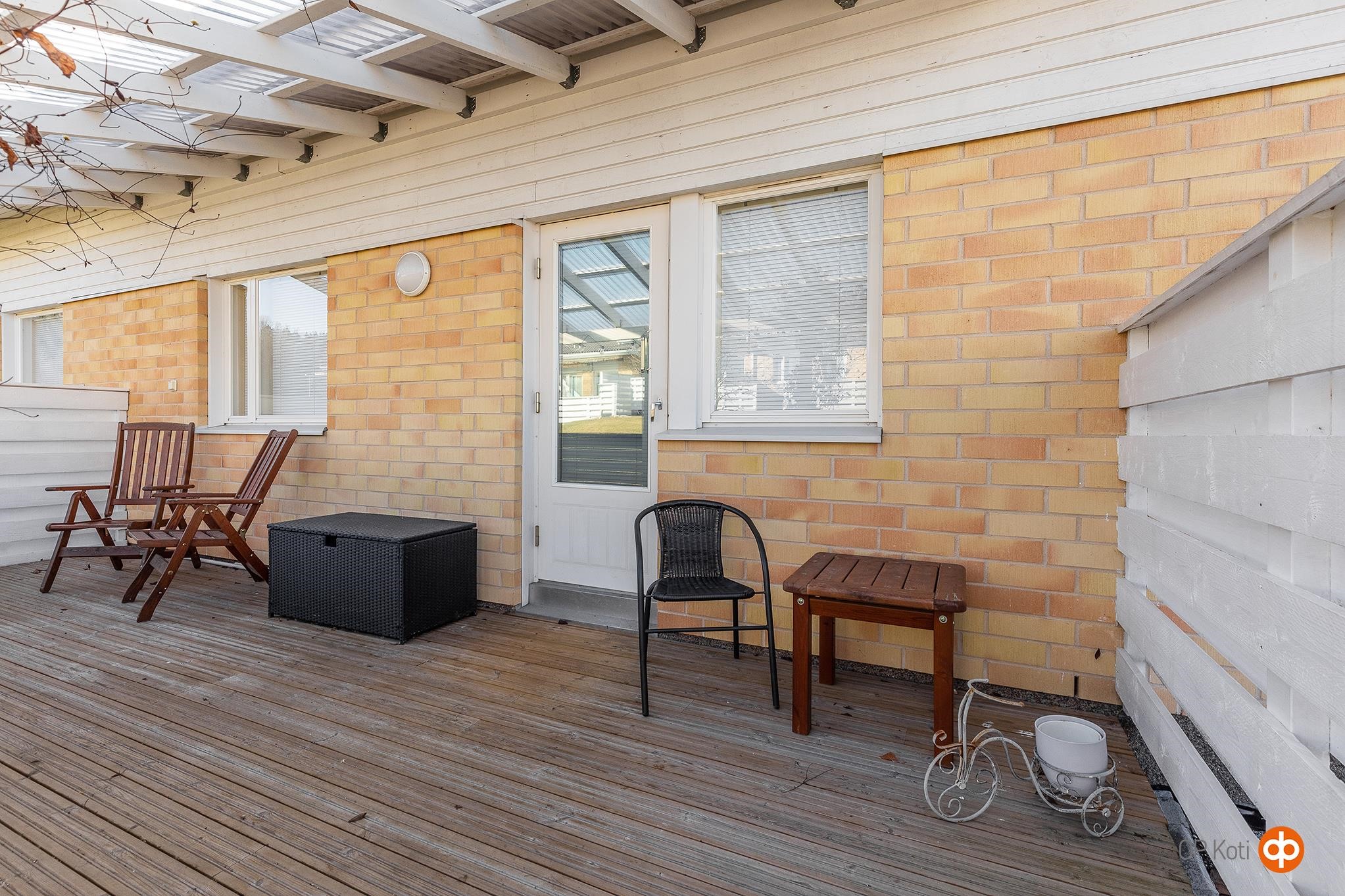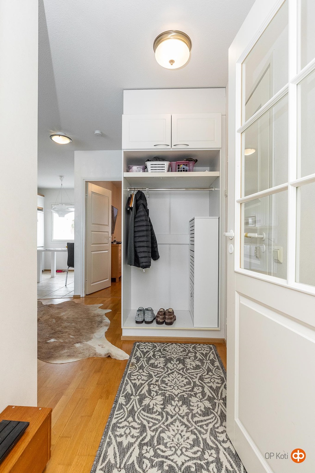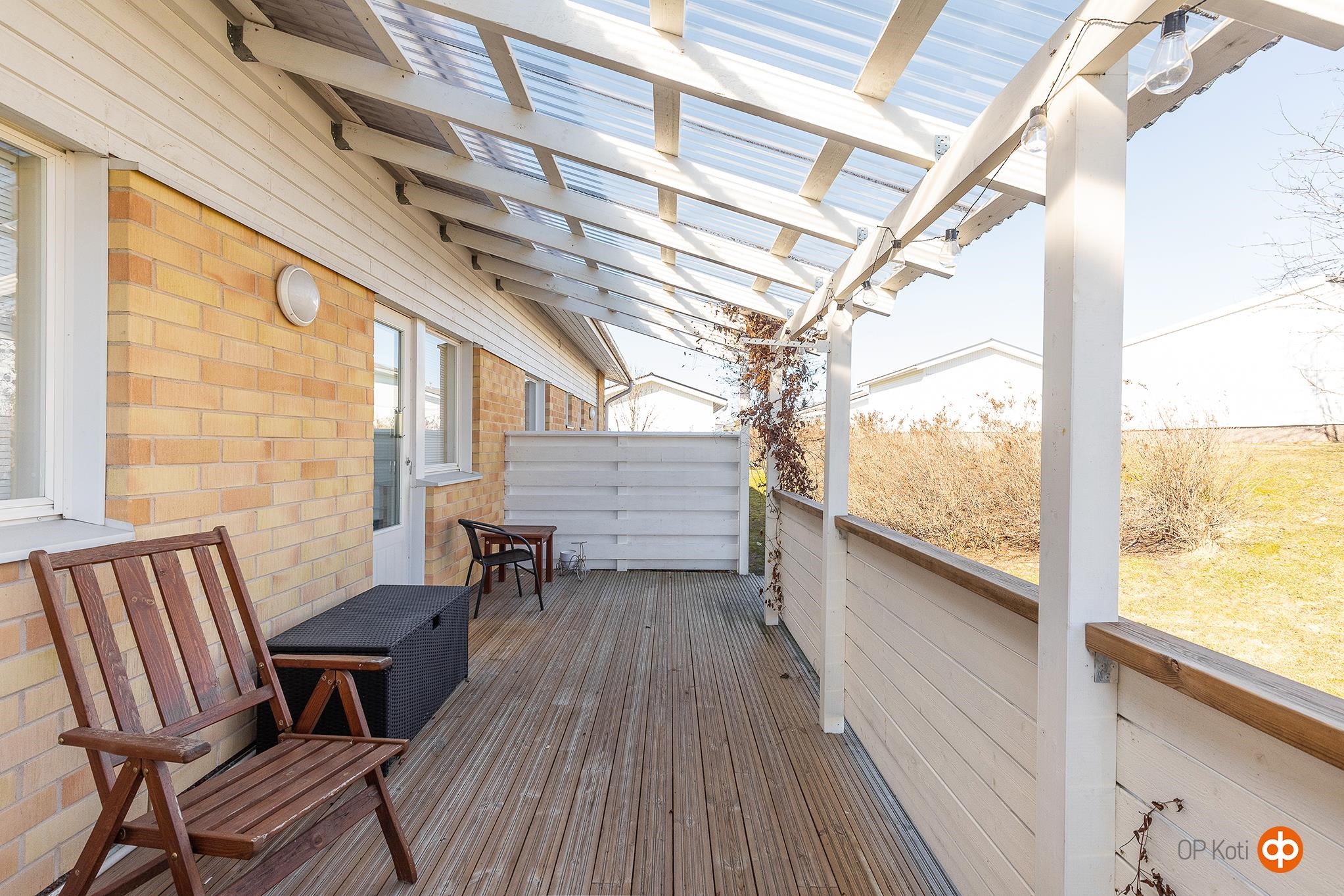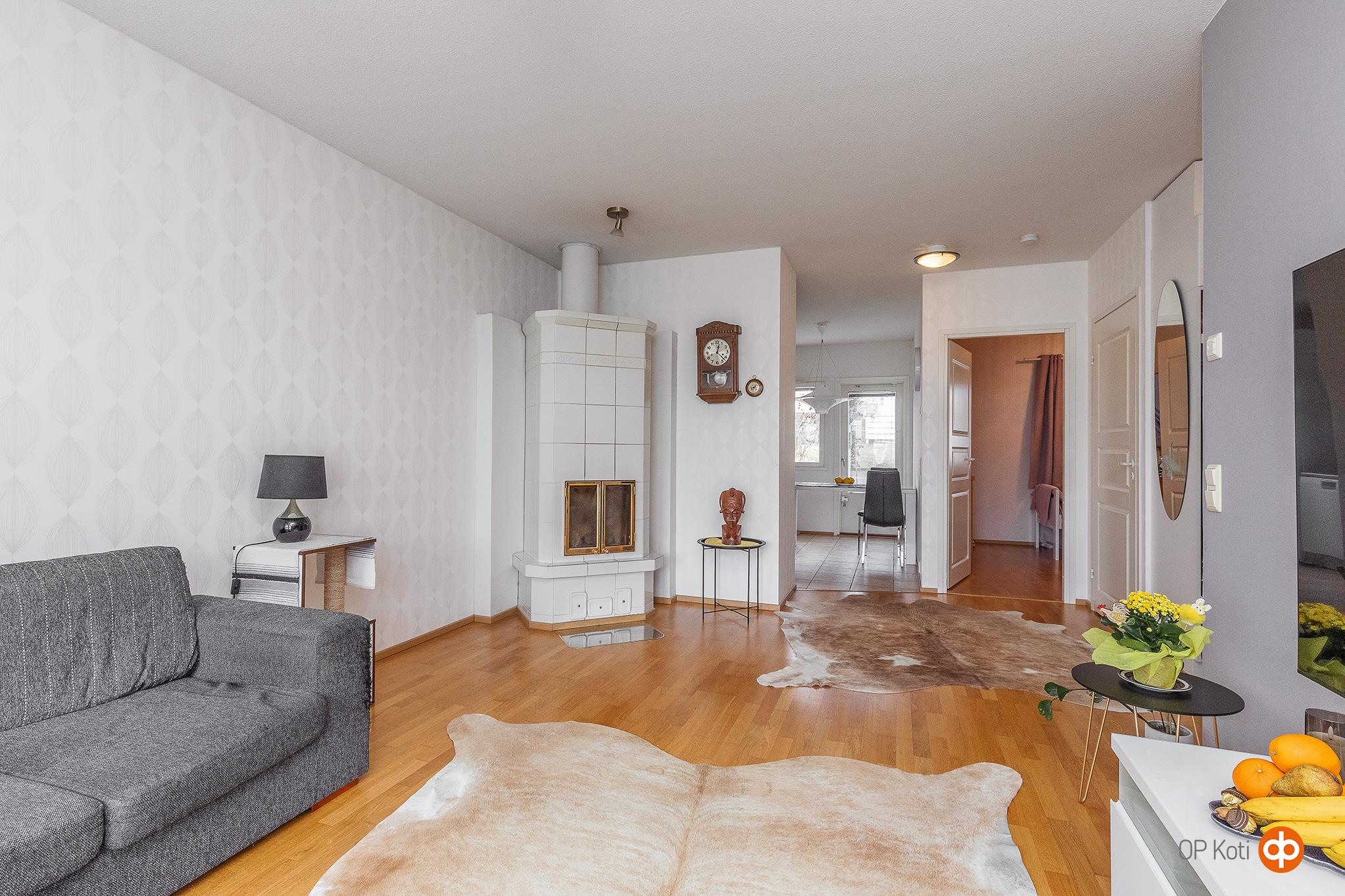 Kaksiolle mukavat 59,5 m² näkyvät kodin sisätilojen avaruutena. Onnistunut läpitalon olohuone/keittiö tilaratkaisu. Keittiöstä käynti takapihan reilunkokoiselle terassille valokatteineen. Kodin energiakustannuksiin on mahdollisuus vaikuttaa olohuoneeseen asennetulla ilmalämpöpumpulla ja varaava kaakelitakalla. Siistikuntoinen valoisa ja vaalea keittiö, jossa mukavasti kaapistoja ja laskutilaa sekä hyvä paikka ruokapöydälle. Toiminnallinen kylpyhuone ja ikkunalla varustettu sauna. Kylpyhuoneessa hyvä tila pesukoneelle ja kuivausrummulle. Makuuhuoneessa tarvittaessa tilaa esim. työpisteelle. Makuuhuoneen läheisyydessä monen arvostama erillinen wc.