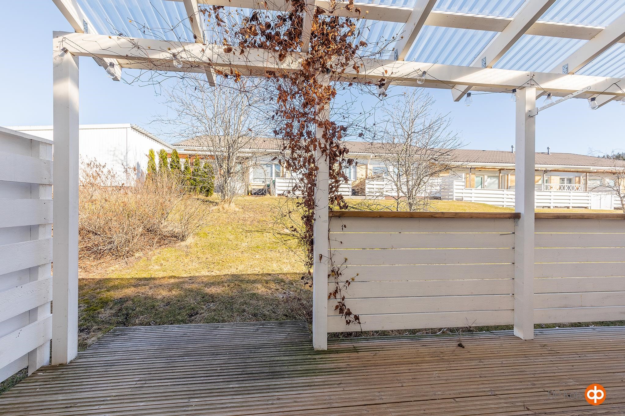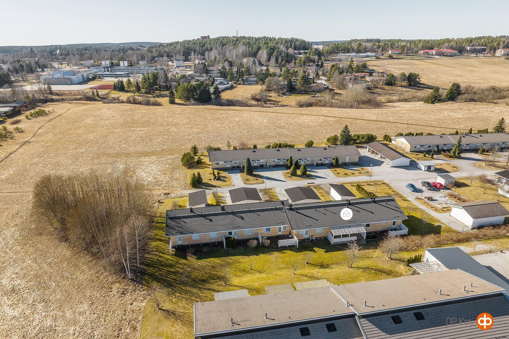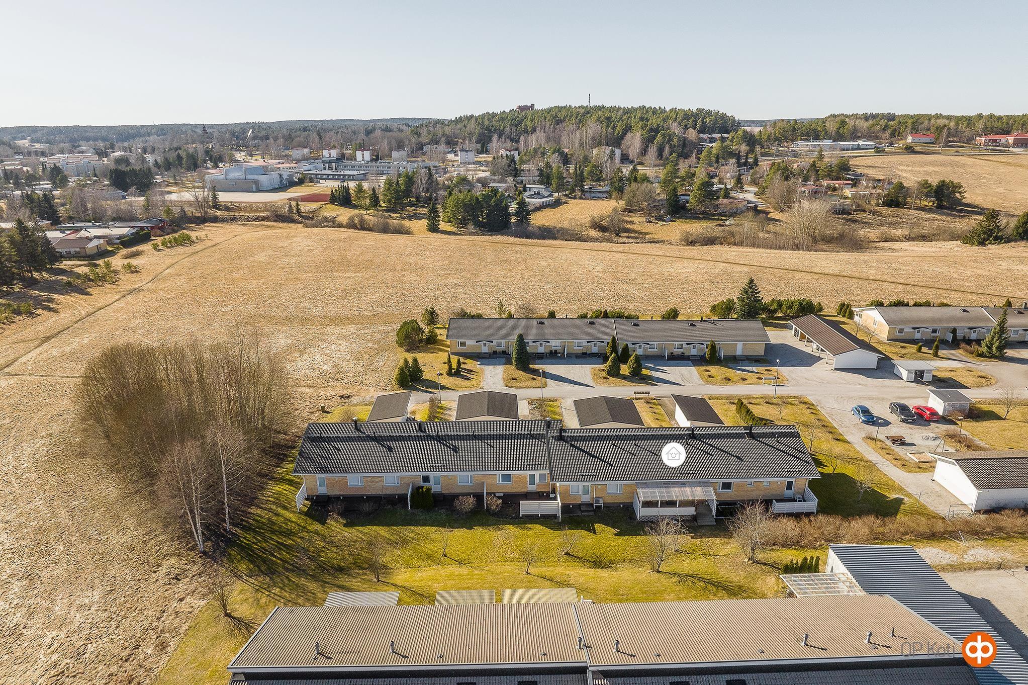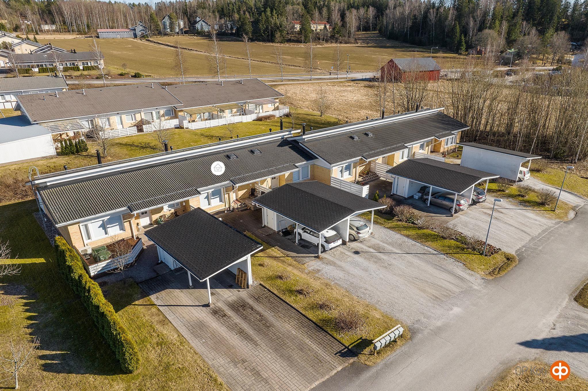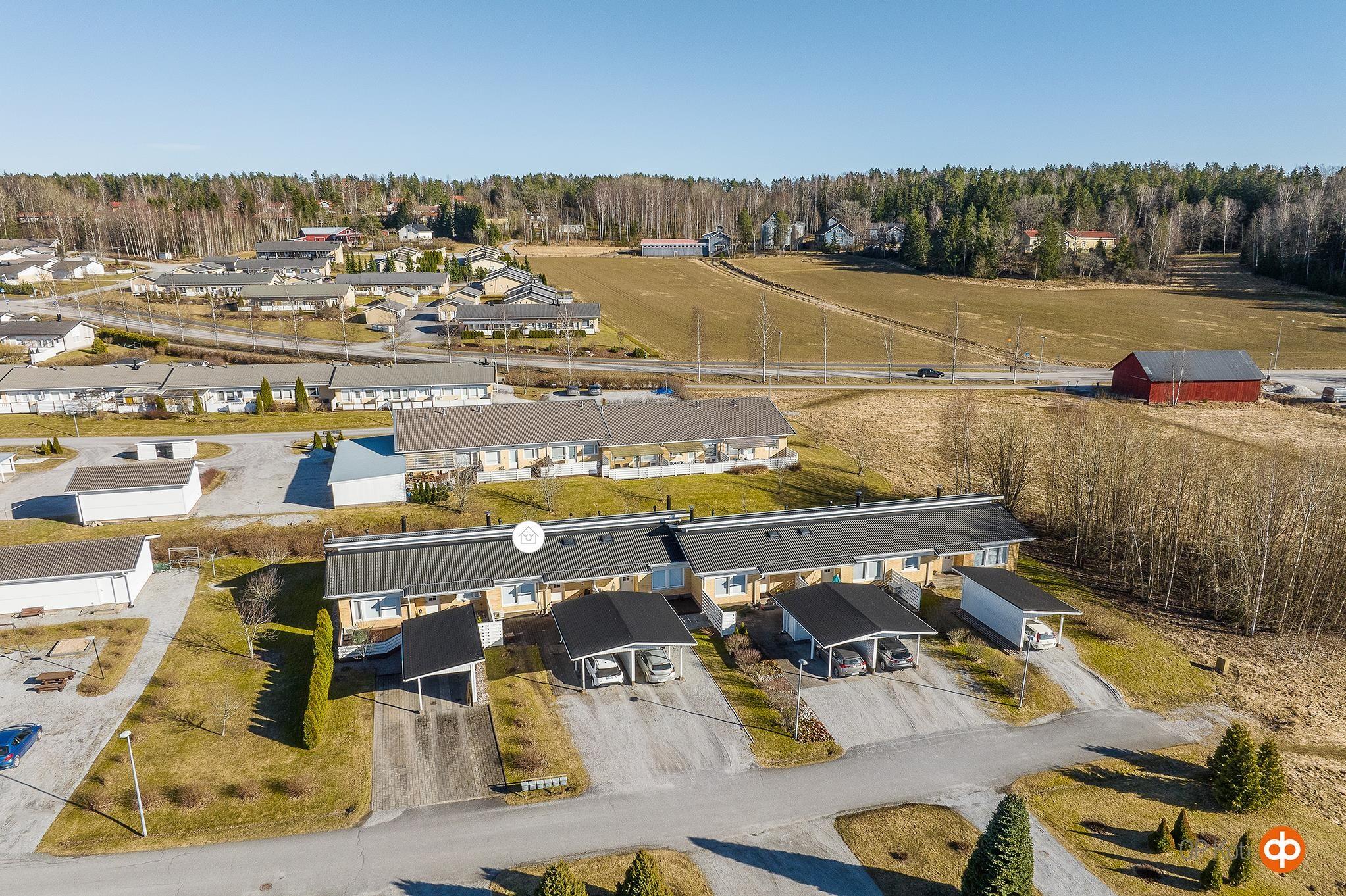 Rakennus päättyvän kujan varrella, ei häiritsevää ohikulku liikennettä. Rivitalon takapihat itään aamu-auringon suuntaan. Asunnolla suojaisa takapiha katetulla terassilla. Lämmin varasto sisäänkäynnin välittömässä läheisyydessä, autokatospaikka ja huoneiston edessä autopaikka perheen toiselle ajoneuvolle. Yhtiössä valokuitu.