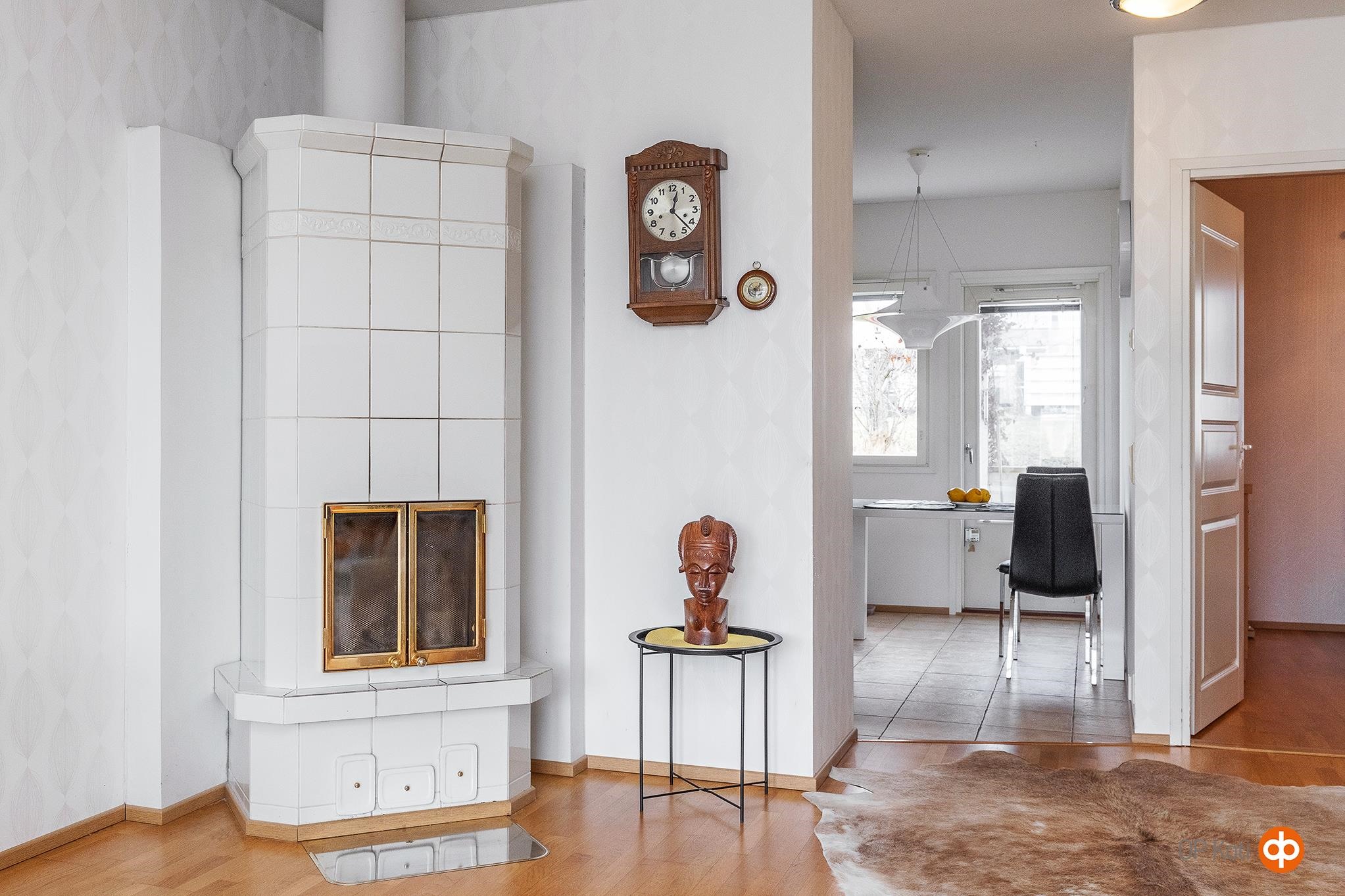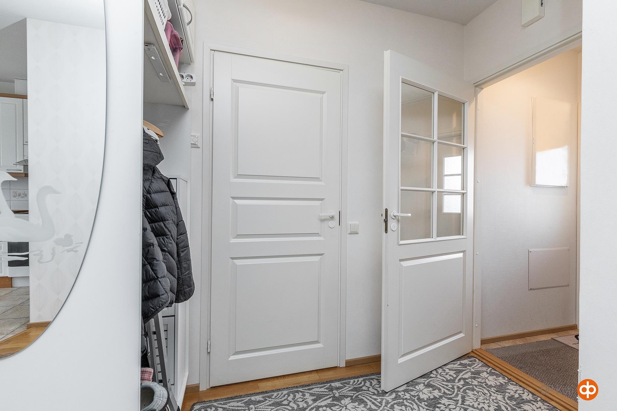 Siistikuntoinen kaksio arvostetulla Putolan asuinalueella. Asunnossa onnistuneesti käytetyt neliöt sekä patiot etu- ja takapihalla. Takapihalla valokatteen alla oleva huoneiston levyinen terassi ja etupihalla laatoitettu piha-alue ilta-auringon suuntaan. Tilava olohuone ja toiminnalliset keittiö sekä pesutilat. Kodin sähkölaskut pitävät kurissa olohuoneen varaava kaakelitakka ja ilmalämpöpumppu. Oma autokatospaikka huoneiston edessä ja etupihalla tilaa perheen toiselle autolle. Sisäänkäynnin läheisyydessä lämmin irtaimistovarasto. Hyvin hoidettu yhtiö, jossa ei seuraavan 5 vuoden aikana suuria remontteja suunnitteilla. Yhtiössä etätyötä helpottava valokuitu ja pihatöistä vastaa huoltoliike.