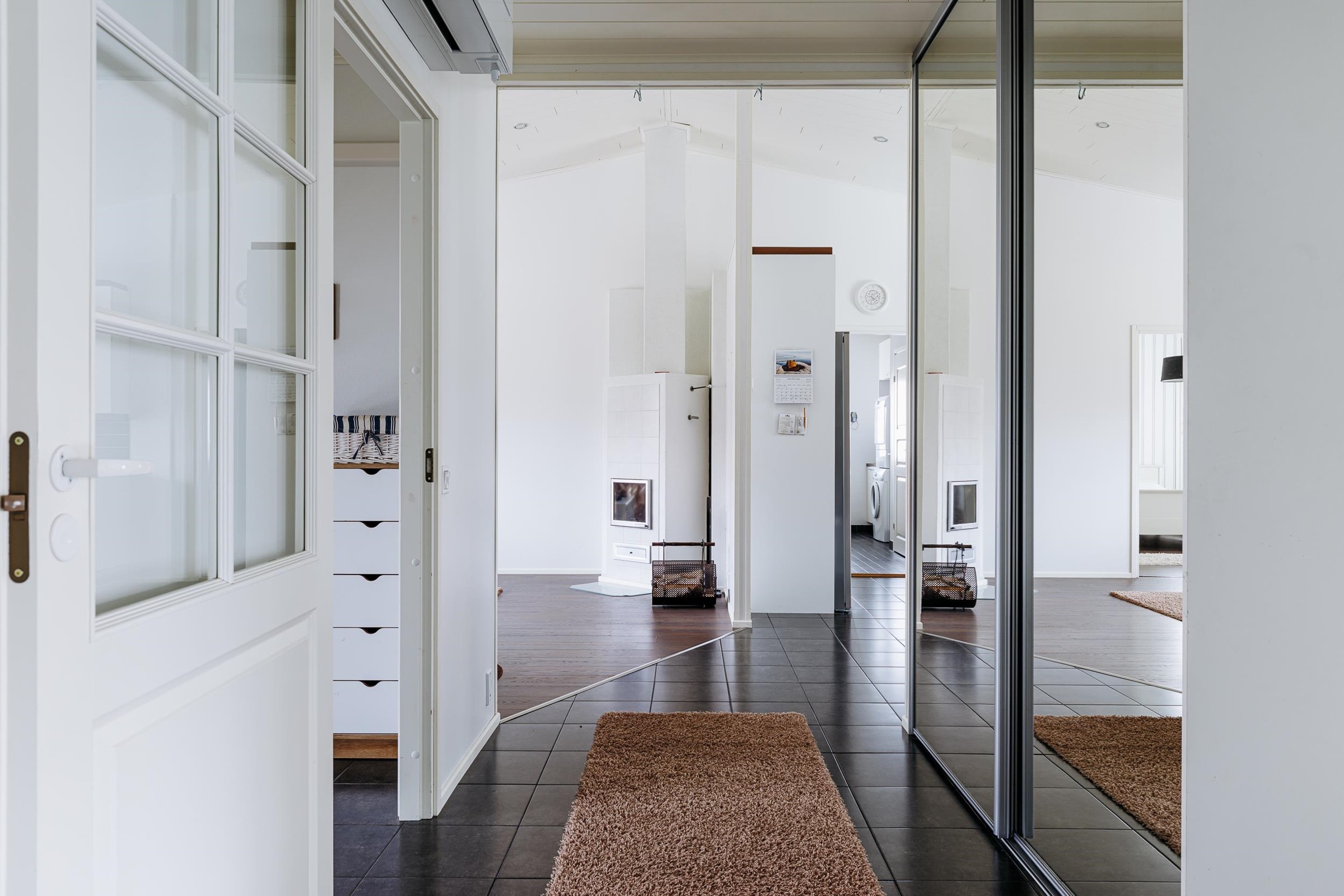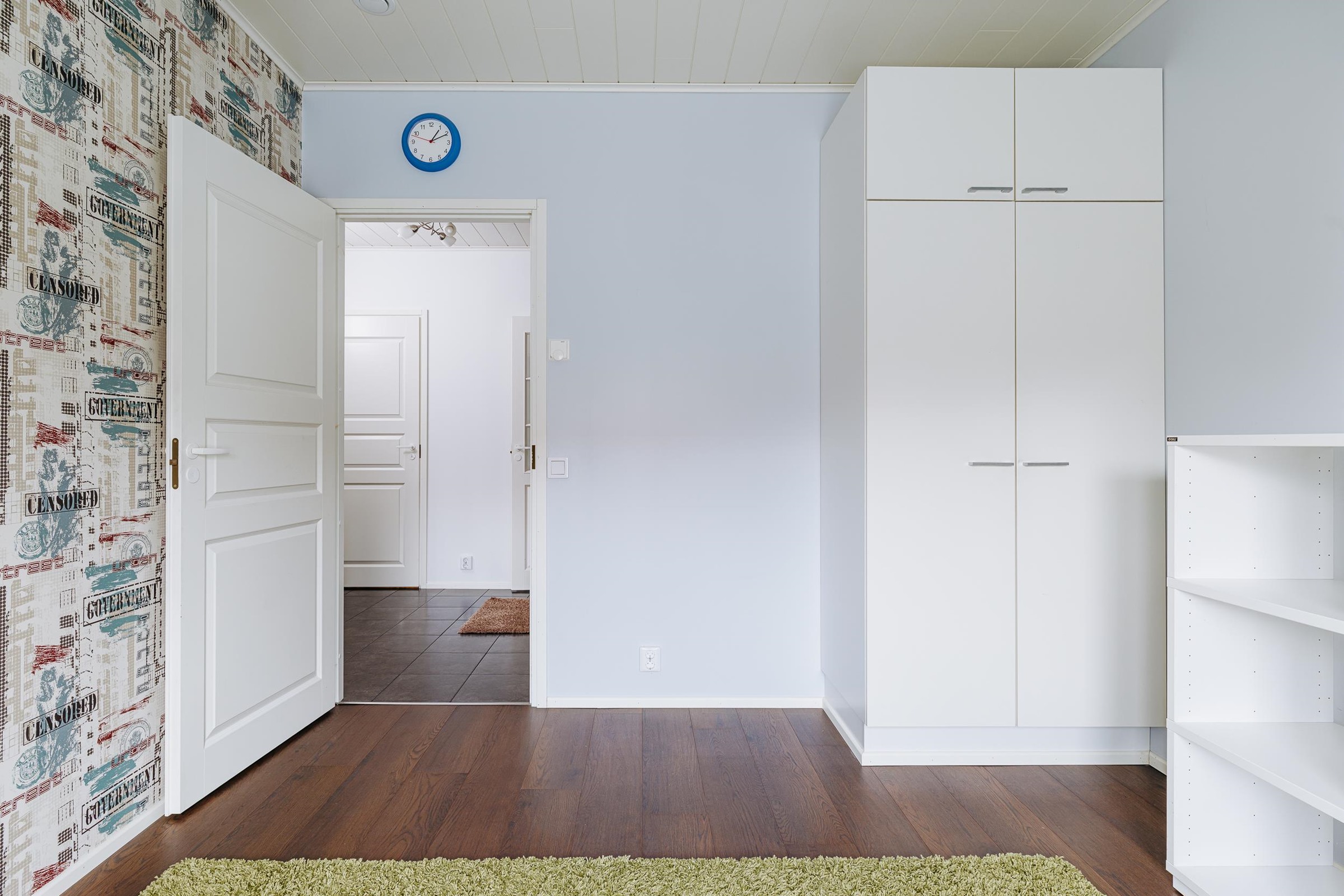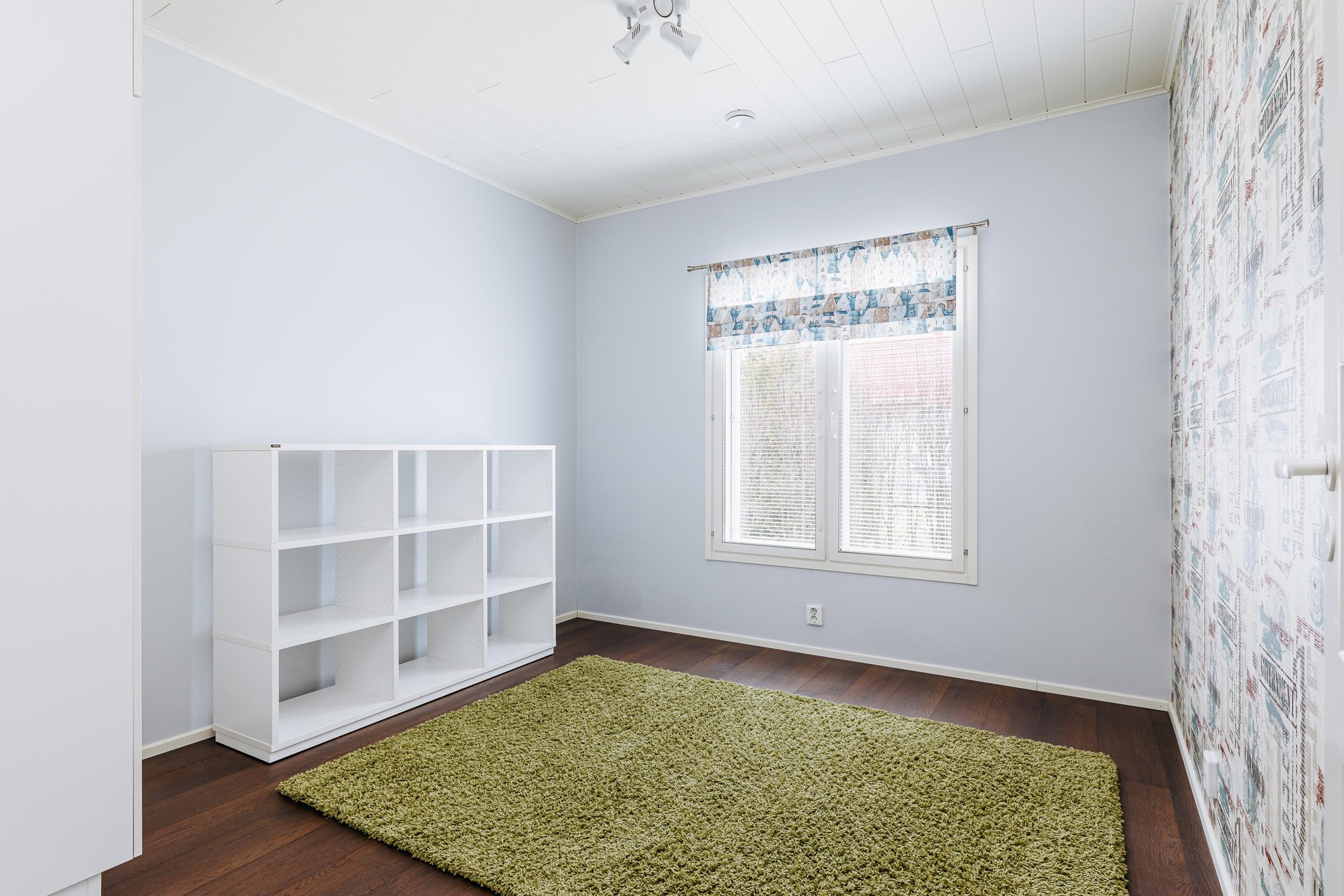 Tilavaan keittiöön mahtuu isompikin ruokapöytä, ja keittiöstä on sujuva kulku kodinhoitotilaan sekä edelleen pesutiloihin, mikä helpottaa arjen toimivuutta. Makuuhuoneista kolme sijaitsee talon toisessa päässä, kun taas yksi makuuhuone on sijoitettu kätevästi omaan rauhaansa talon toiseen päähän. Tästä huoneesta on kulku vaatehuoneen kautta kodinhoitotilaan ja pesutiloihin. Runsaat säilytysratkaisut, kuten tilava vaatehuone, tekevät kodista erityisen käytännöllisen lapsiperheen tarpeisiin.