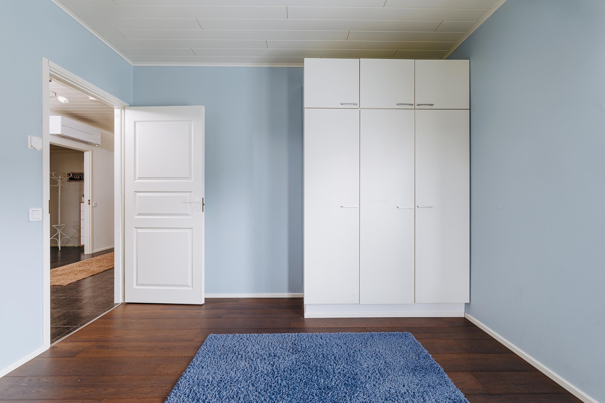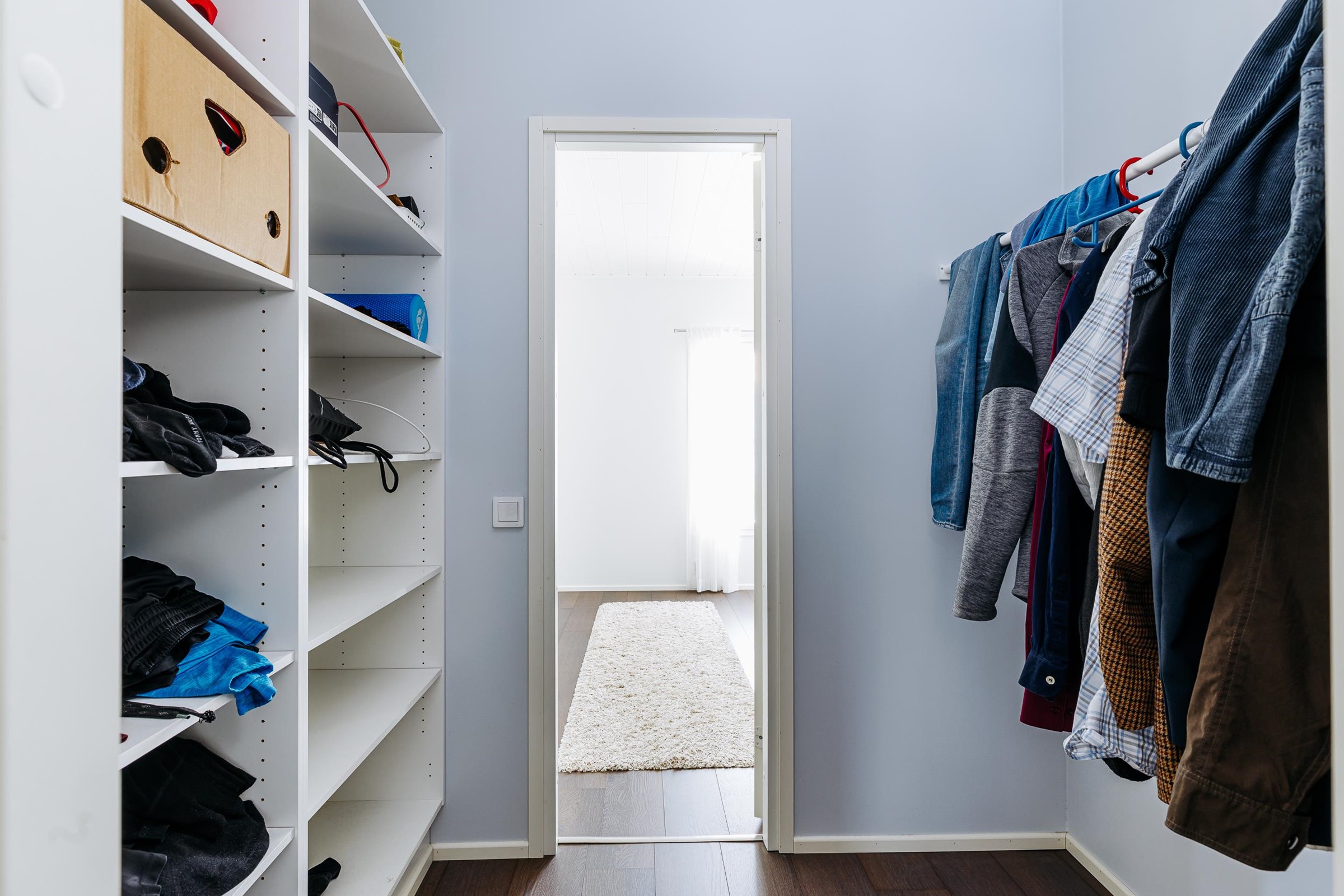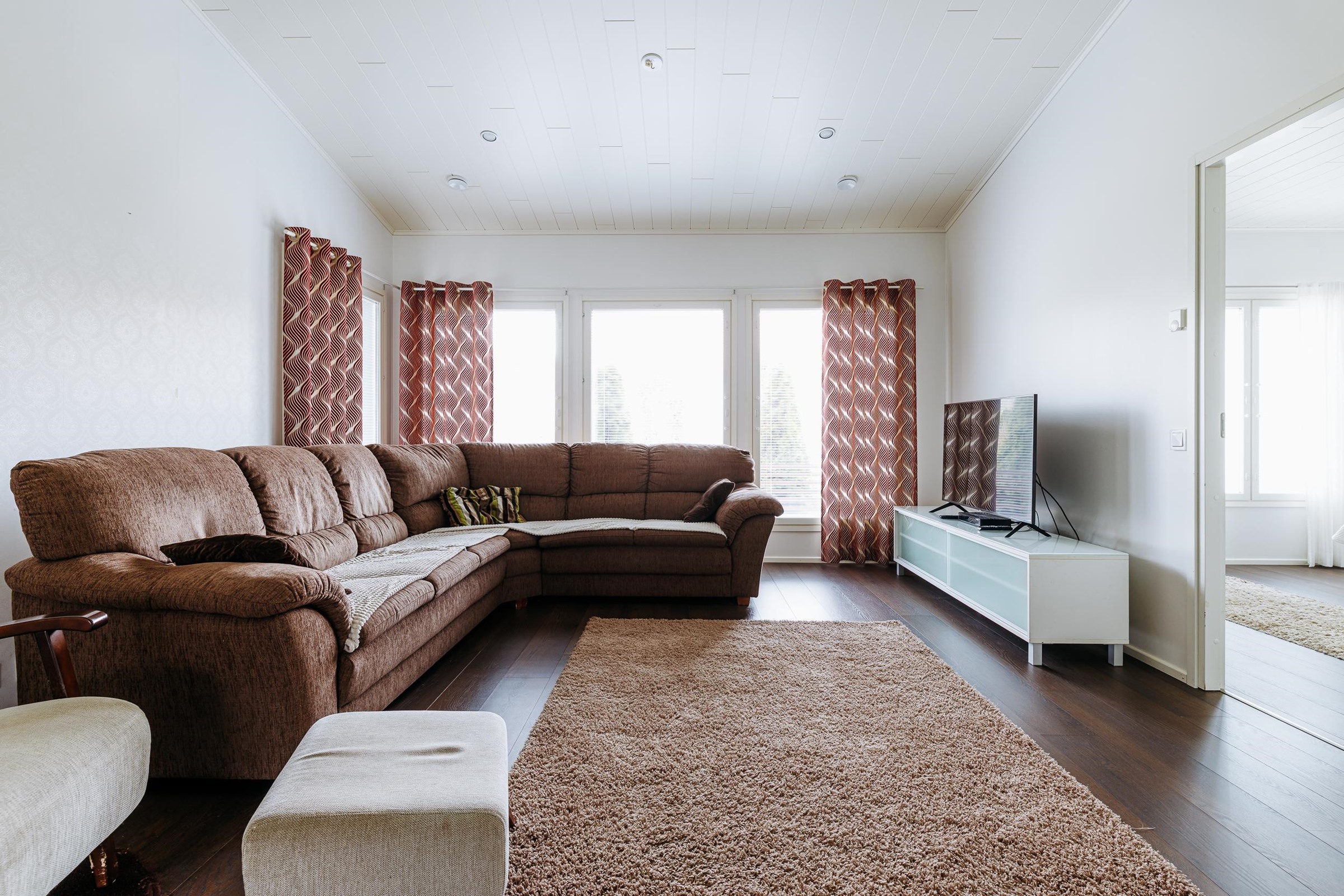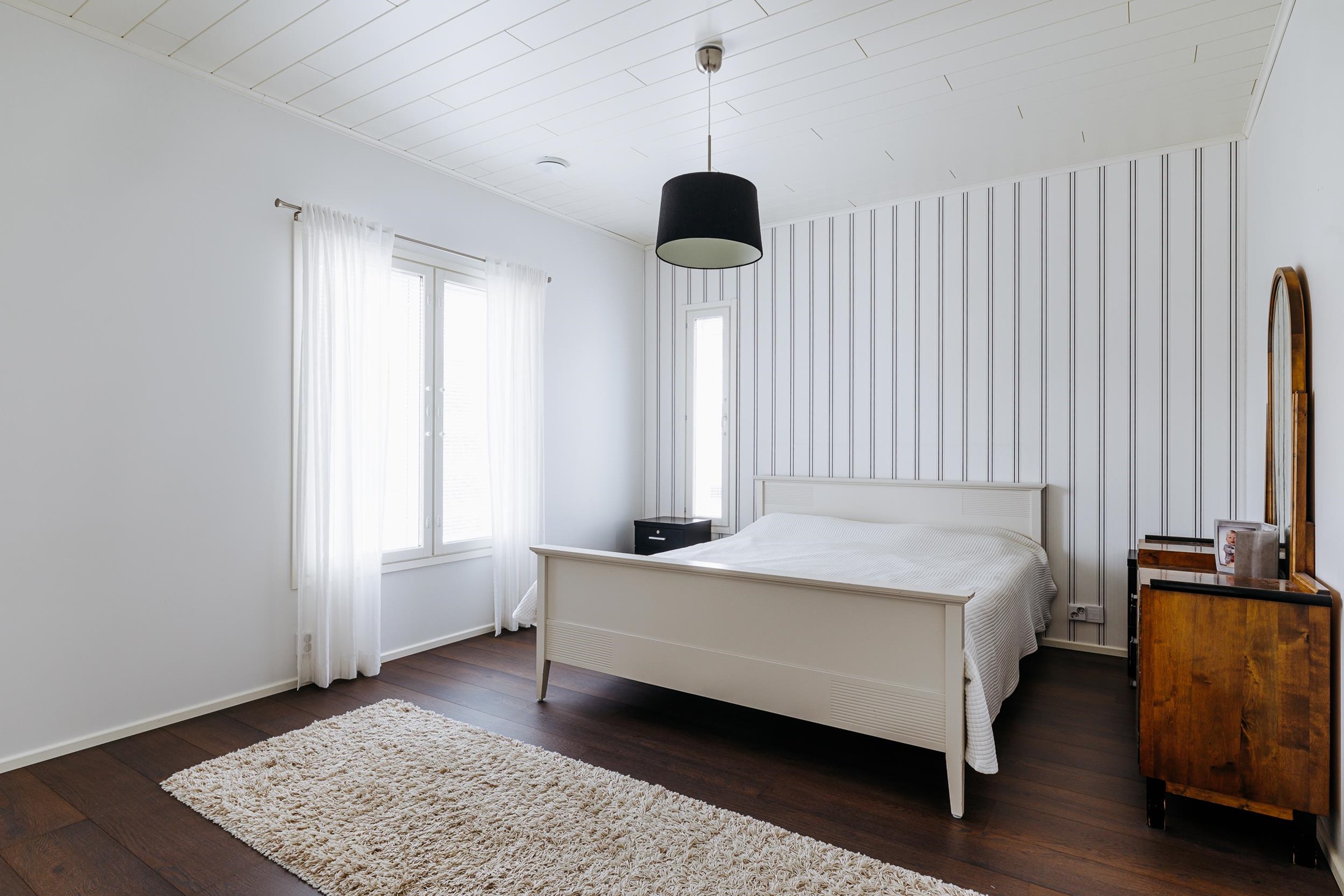 Tilavaan keittiöön mahtuu isompikin ruokapöytä, ja keittiöstä on sujuva kulku kodinhoitotilaan sekä edelleen pesutiloihin, mikä helpottaa arjen toimivuutta. Makuuhuoneista kolme sijaitsee talon toisessa päässä, kun taas yksi makuuhuone on sijoitettu kätevästi omaan rauhaansa talon toiseen päähän. Tästä huoneesta on kulku vaatehuoneen kautta kodinhoitotilaan ja pesutiloihin. Runsaat säilytysratkaisut, kuten tilava vaatehuone, tekevät kodista erityisen käytännöllisen lapsiperheen tarpeisiin.
