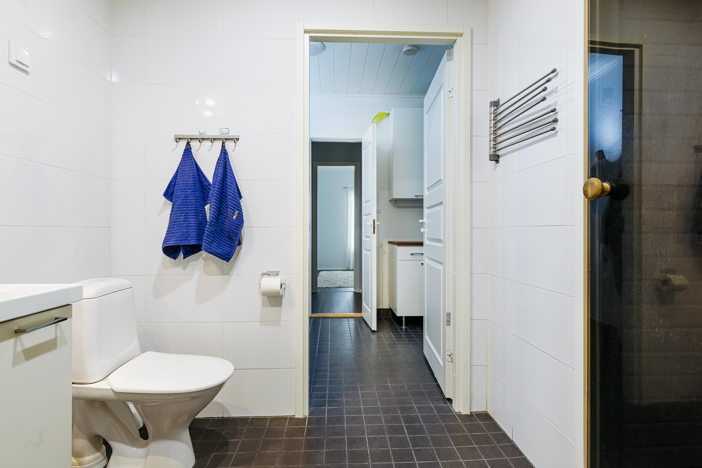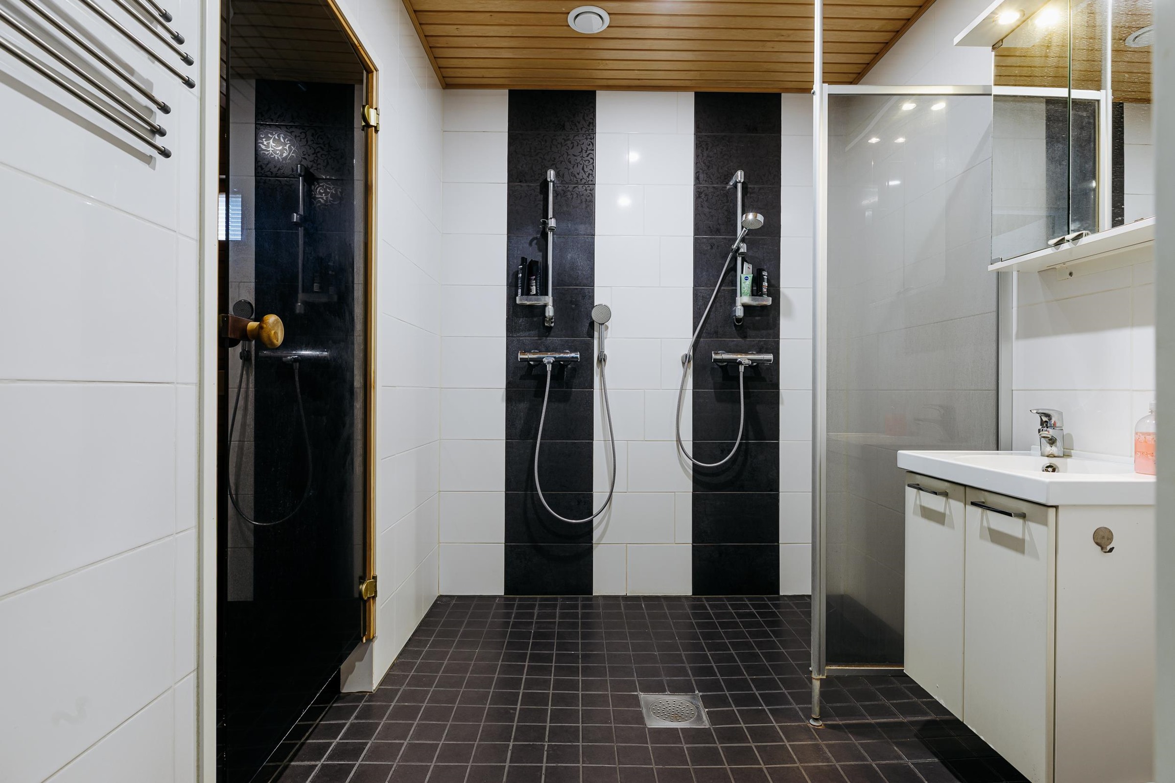 - Sauna, sähkökiuas, kylpyhuone, erillinen wc, suihku 2 suihkua, peilikaappi, allaskaappi, pesukoneliitäntä, lattialämmitys, kiinteät valaisimet.