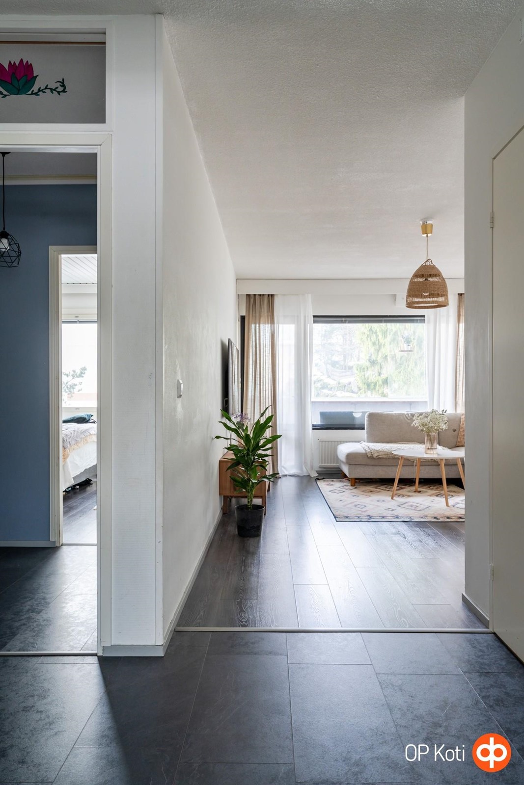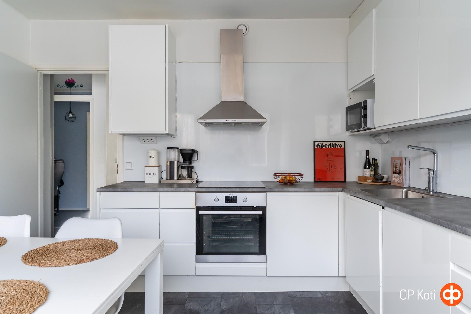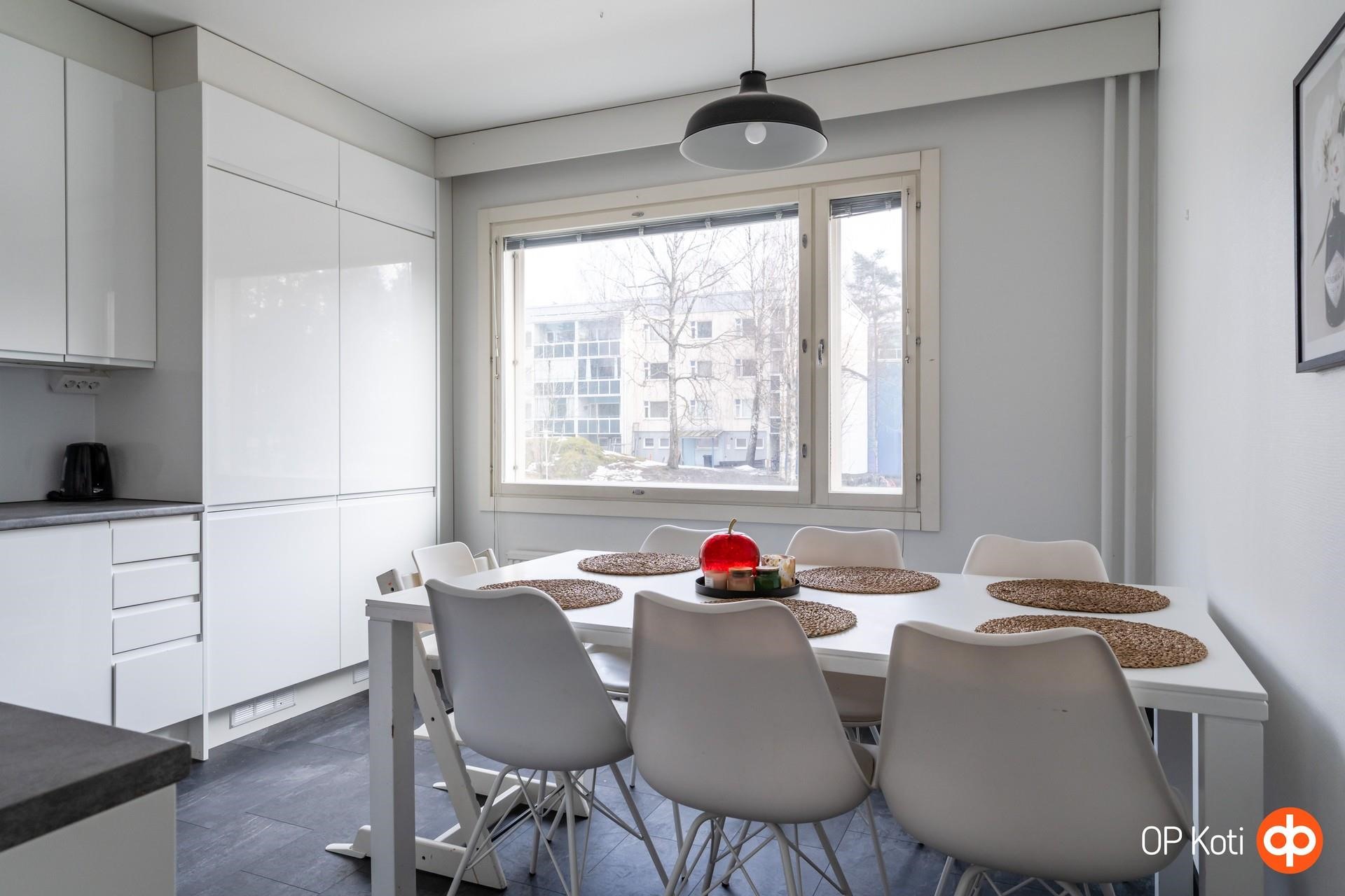 Vuonna 2022 kauttaaltaan pintaremontoitu koti hurmaa harmonisilla materiaaleilla: vaaleat, maalatut seinäpinnat, uudenkarheat laminaattilattiat. Keittiö on remontoitu kaapistoineen ja koneineen 2022, ja erillisuuni uusittu 10/2025, joten kokonaisuus on erittäin siistissä kunnossa ja käyttövalmis. Keittiön ikkuna avautuu itään, olohuone ja lasitettu parveke länteen, joten nautit siis ihanasti sekä aamu- että ilta-auringosta.