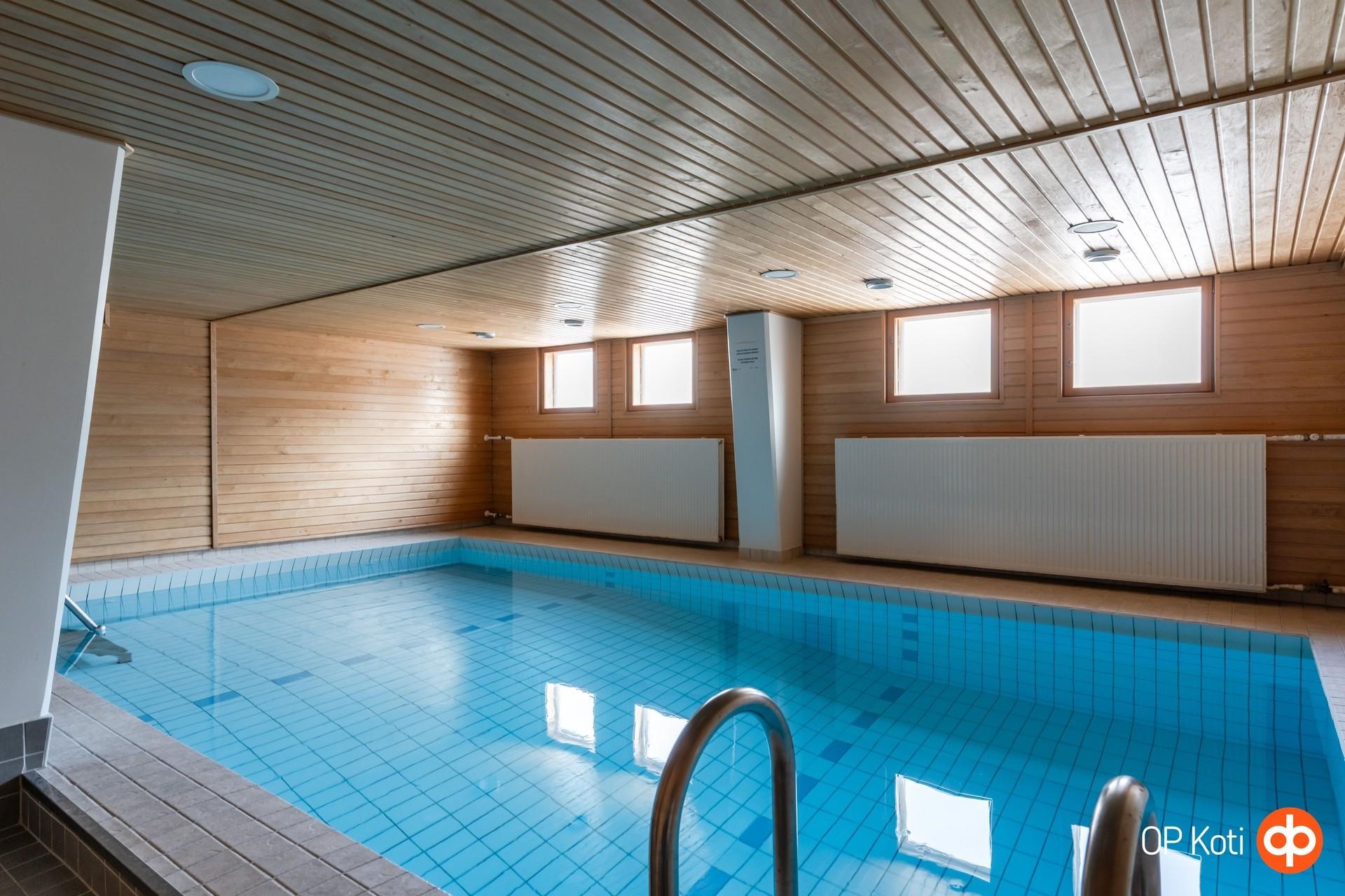 Taloyhtiössä on poikkeuksellisen hyvät yhteistilat, kuten uima-allas ja hienot saunatilat.