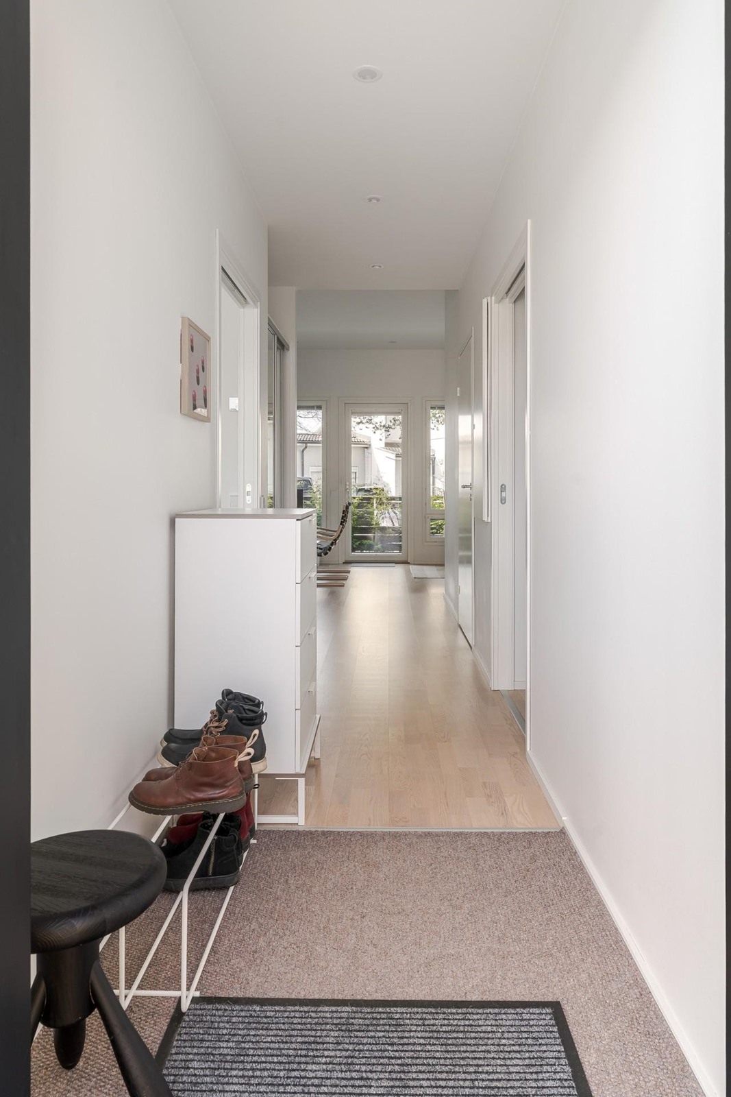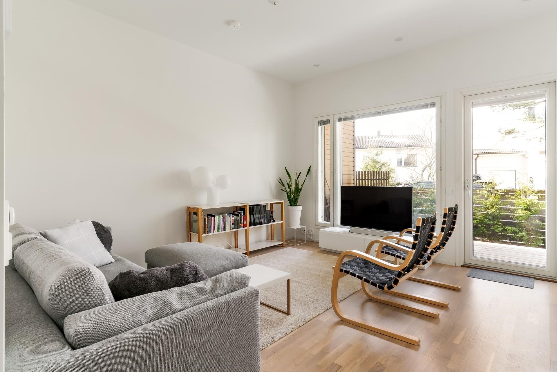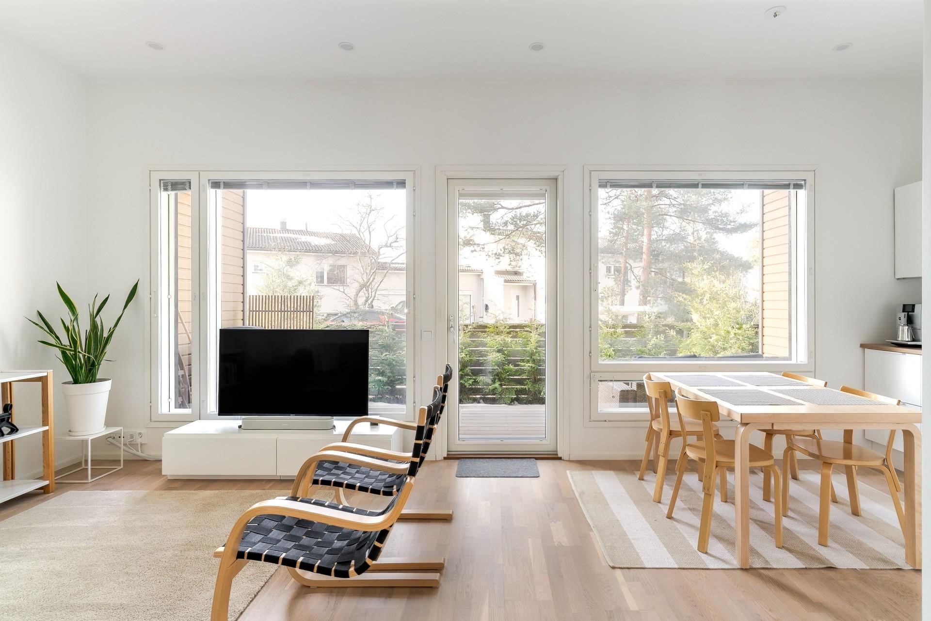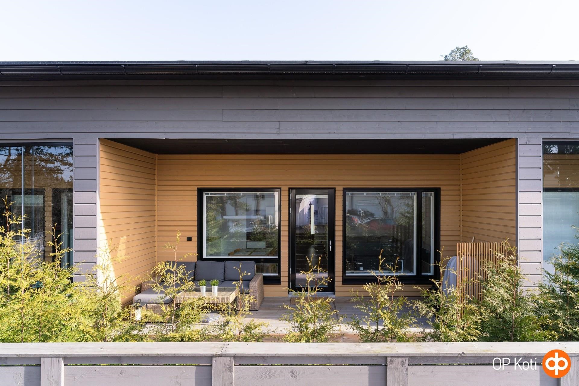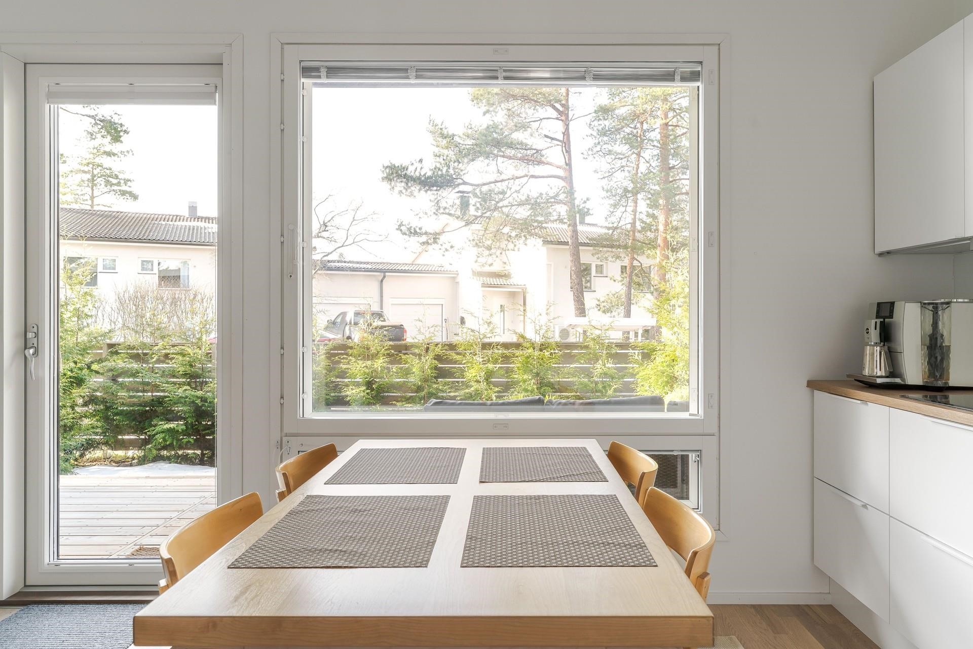 Yhdessä tasossa sijaitseva rivitalokoti, jonka keittiö, ruokailutila ja olohuone muodostavat avaran ja valoisan oleskelukokonaisuuden. Suuret ikkunat tulvivat sisään luonnonvaloa ja avautuvat suoraan tilavalle terassille. Huoneiston vaikuttava, lähes kolmen metrin (297 cm) huonekorkeus korostaa tilan ilmavuutta ja modernia tunnelmaa. Rauhallisella pientaloalueella sijaitseva suojaisa ja aidattu terassipiha tarjoaa ihanteelliset puitteet rentoutumiseen ja auringonpaisteesta nauttimiseen - aurinko hellii pihaa puolesta päivästä aina iltaan saakka. Täydellinen ympäristö arjen viihtyisyyteen ja ulkoilmaelämästä nauttimiseen.