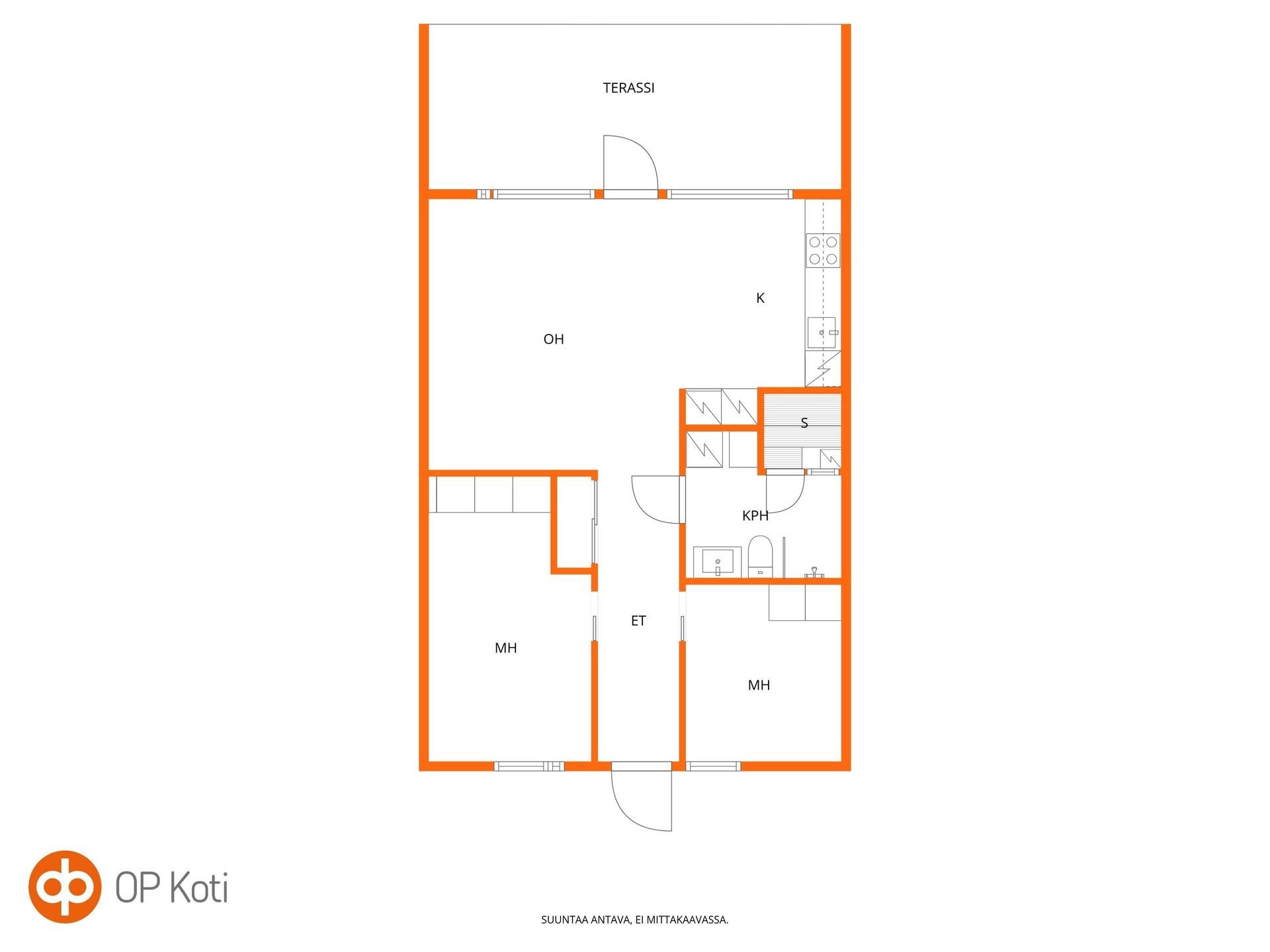 - 3h + avokeittiö + kph + s + terassipiha