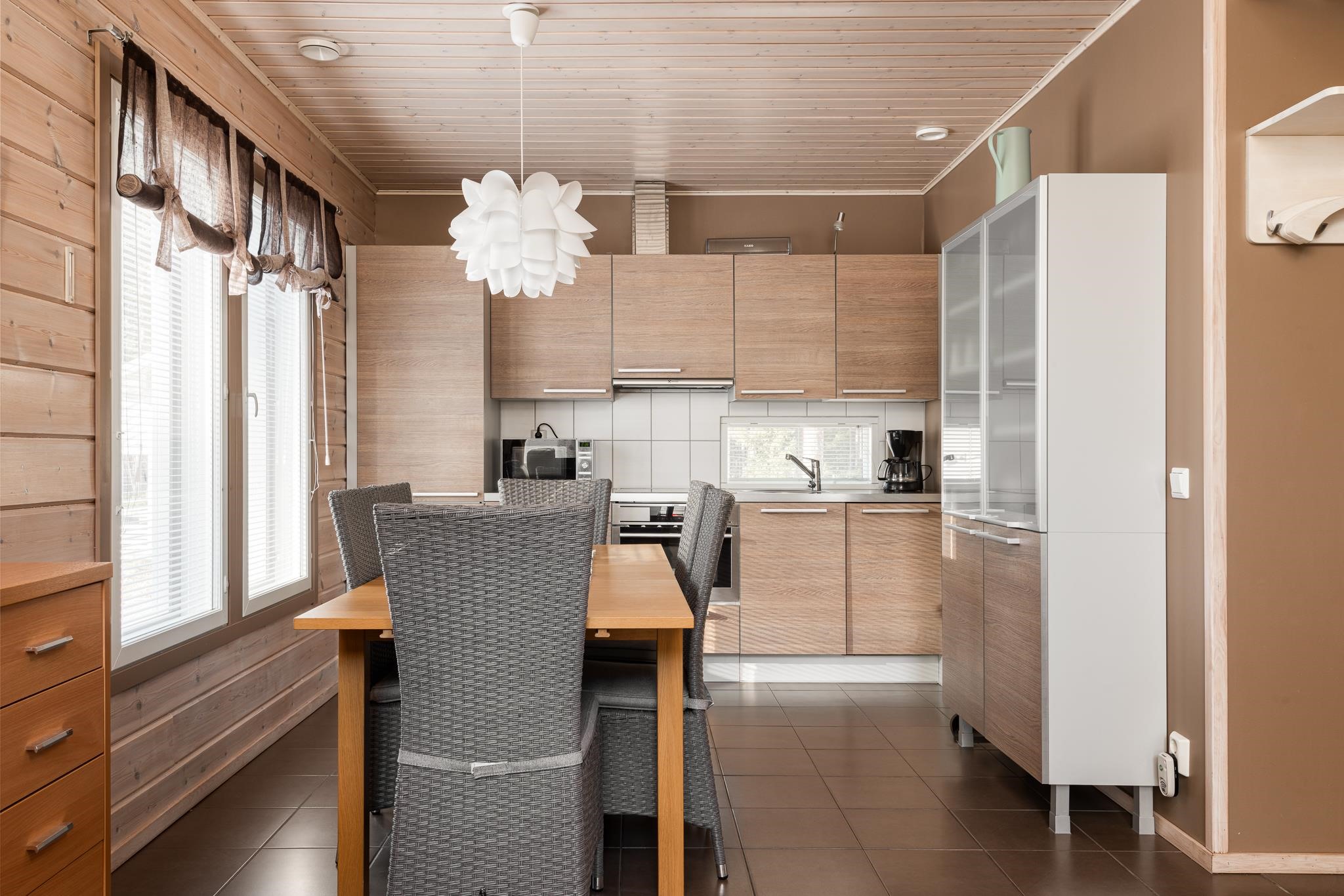 Avokeittiöstä löytyy kaikki tarvittava ruoanlaittoon. Liinavaatteet tuotava itse.