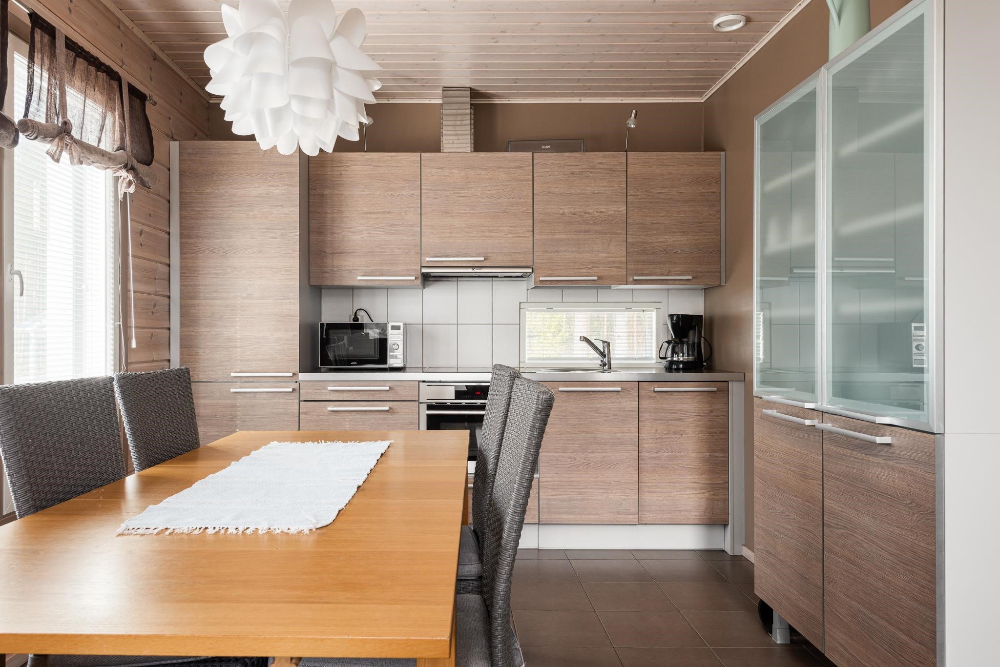 - Jääkaappipakastin, keraaminen liesi, mikroaaltouuni, astianpesukone. paahdin, vedenkeitin