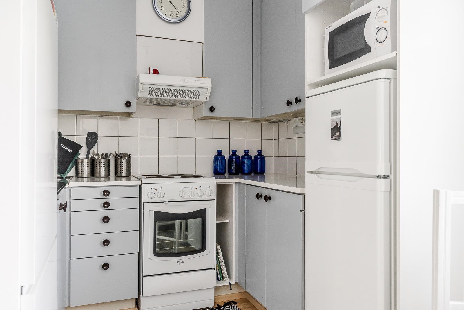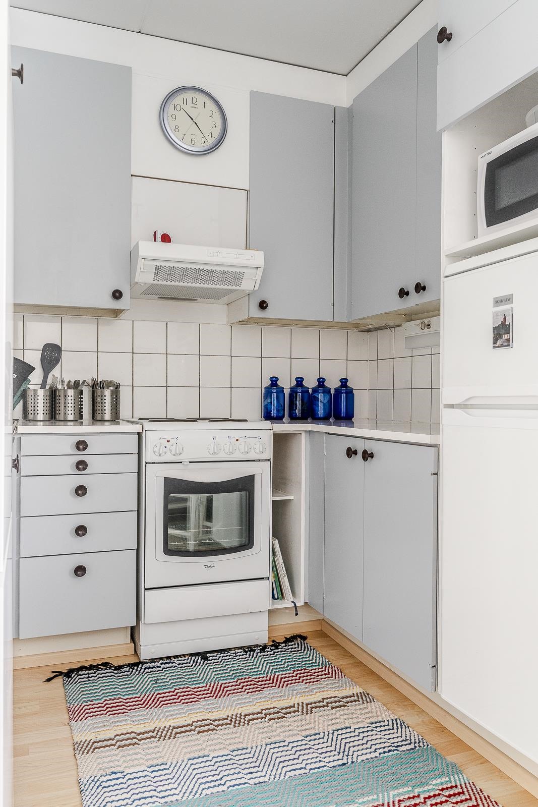 - Jenkkikaappi, sähköliesi, liesituuletin, kaapistot, kiinteät valaisimet.