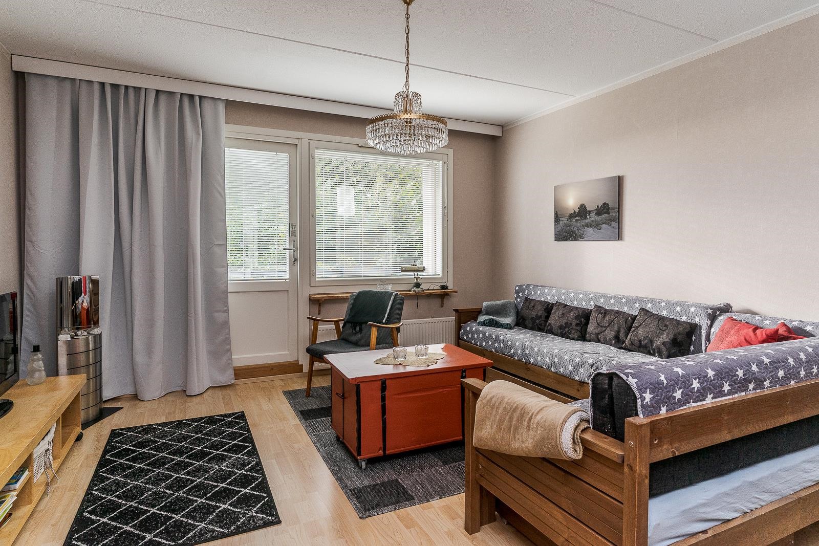 - 39,5 m2Asunto-osakeyhtiö on rekisteröity ennen 1.1.1992, yhtiöjärjestyksessä ilmoitettua asunto-osakeyhtiön asuinhuoneiston asuinpinta-alaa ei ole mitattu nykyisin käytettävän huoneisto-alan laskemismenetelmän mukaisesti (standardi SFS 5139). Tämän vuoksi asuinhuoneiston ilmoitettu asuinpinta-ala saattaa poiketa merkittävästi todellisesta huoneistoalasta.