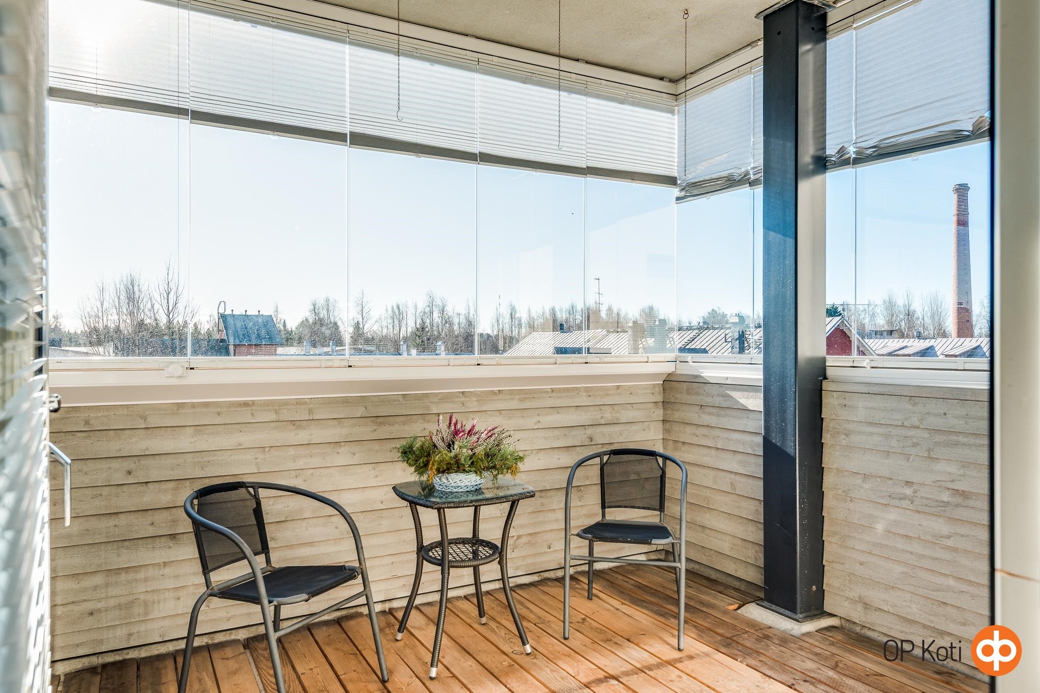Vuonna 2005 valmistunut koti tarjoaa sujuvaa arkea, viihtyisyyttä ja toimivan pohjaratkaisun. Asunnon valoisa olohuone yhdistyy luontevasti tilavaan keittiöön, jossa on runsaasti työskentelytilaa sekä hyvin tilaa isommallekin ruokapöydälle. Kaksi reilunkokoista makuuhuonetta tuovat joustavuutta asumiseen, joista toinen toimii mainiosti esimerkiksi työ- tai lastenhuoneena. Oma sauna kutsuu rentoutumaan päivän päätteeksi, ja lasitettu parveke tuo lisää asumismukavuutta toimien viihtyisänä lisätilana pitkälle syksyyn ja aikaisin kevääseen.