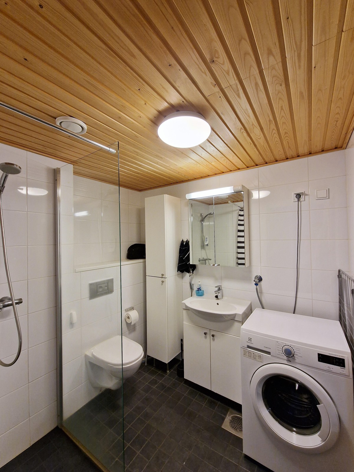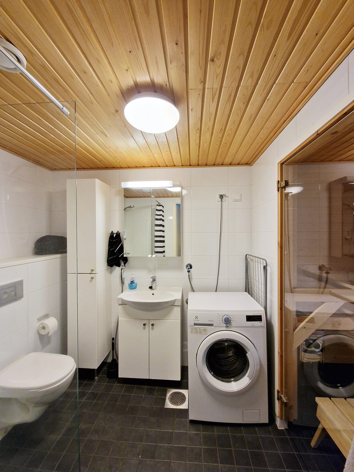 - Sauna, kylpyhuone, suihku, pesukoneliitäntä, lattialämmitys.