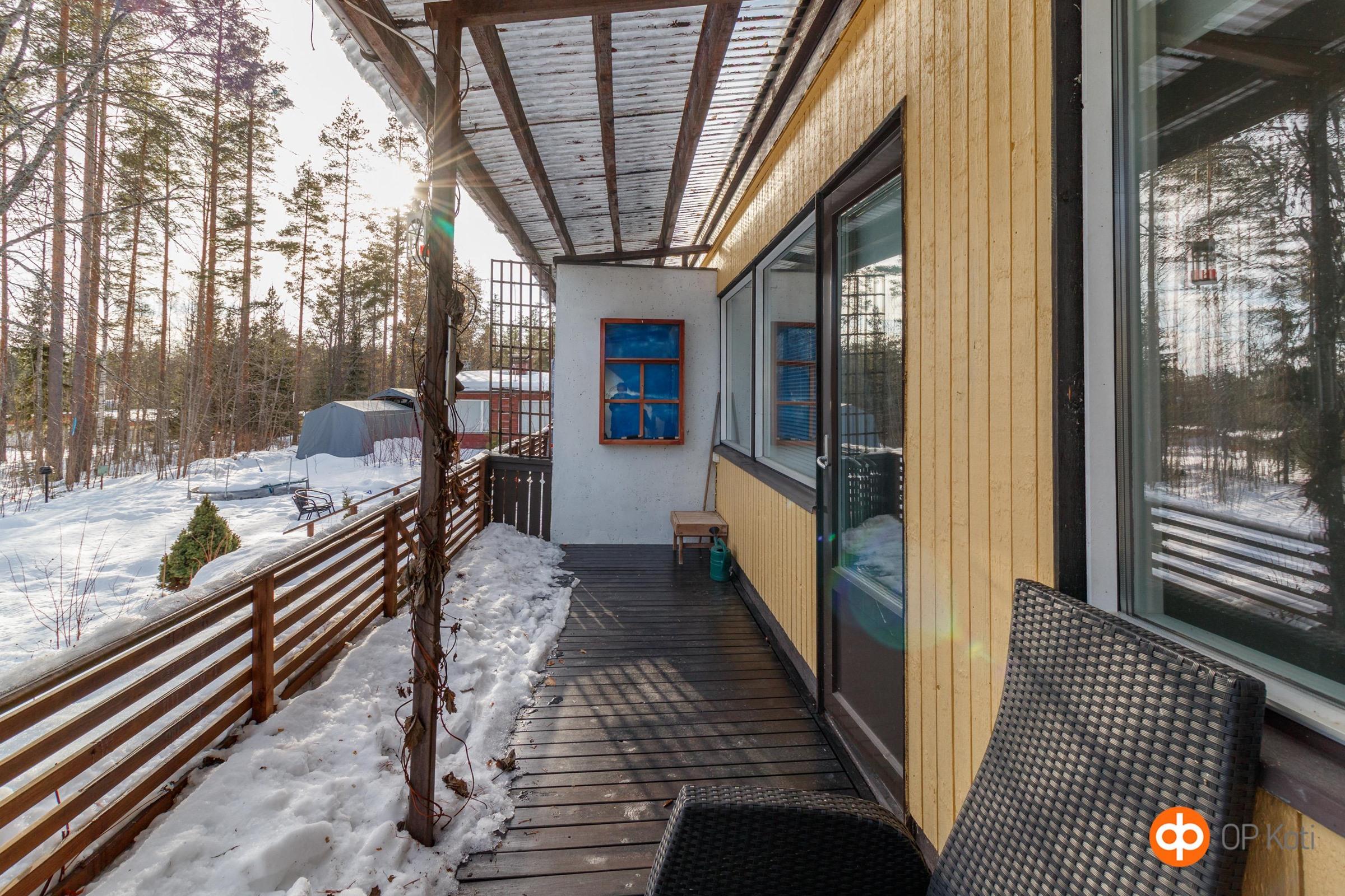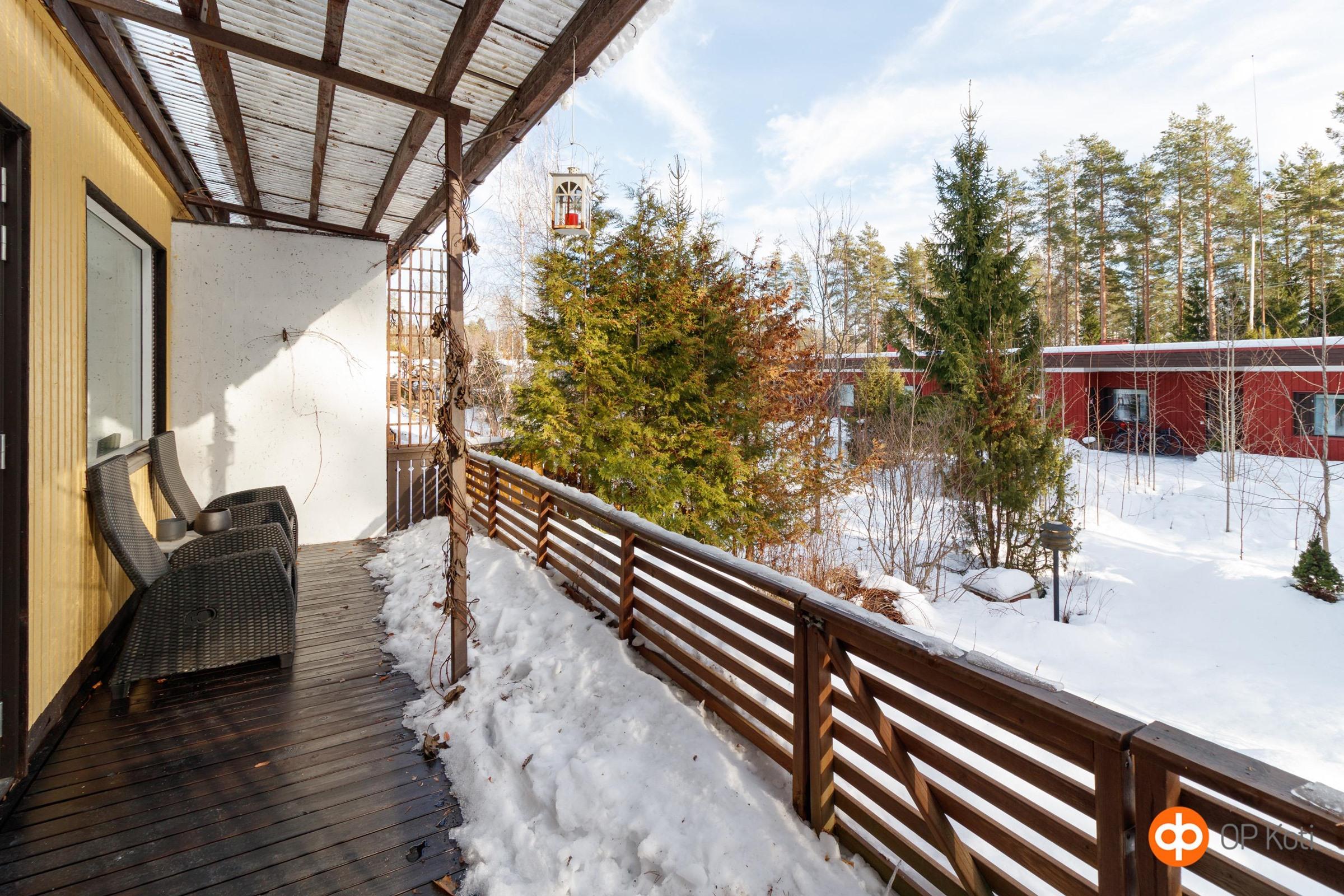 - Terassi, olohuone ja makuuhuoneen näkymät kaakkoon