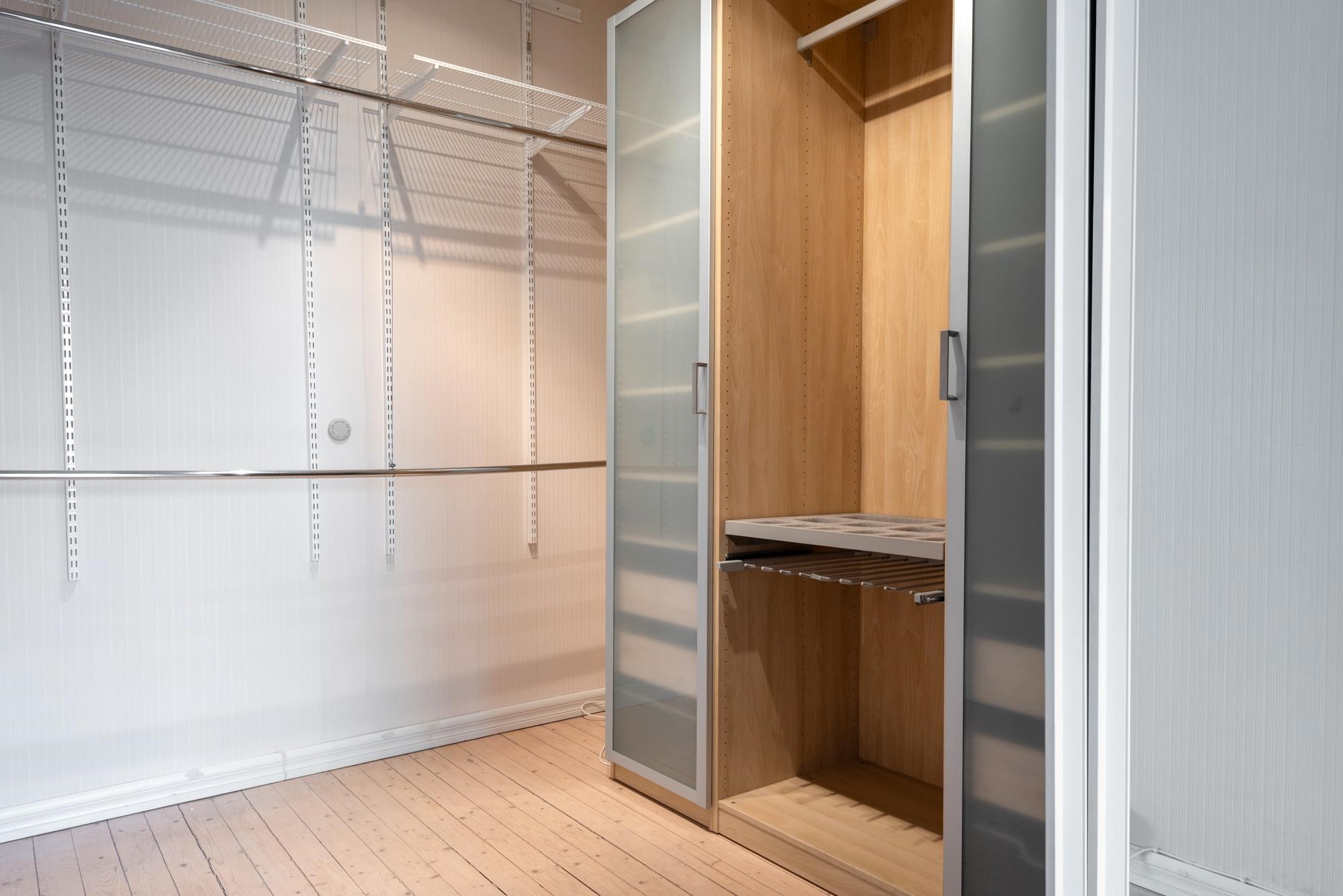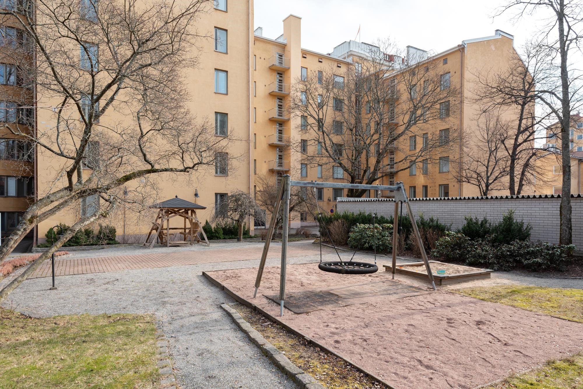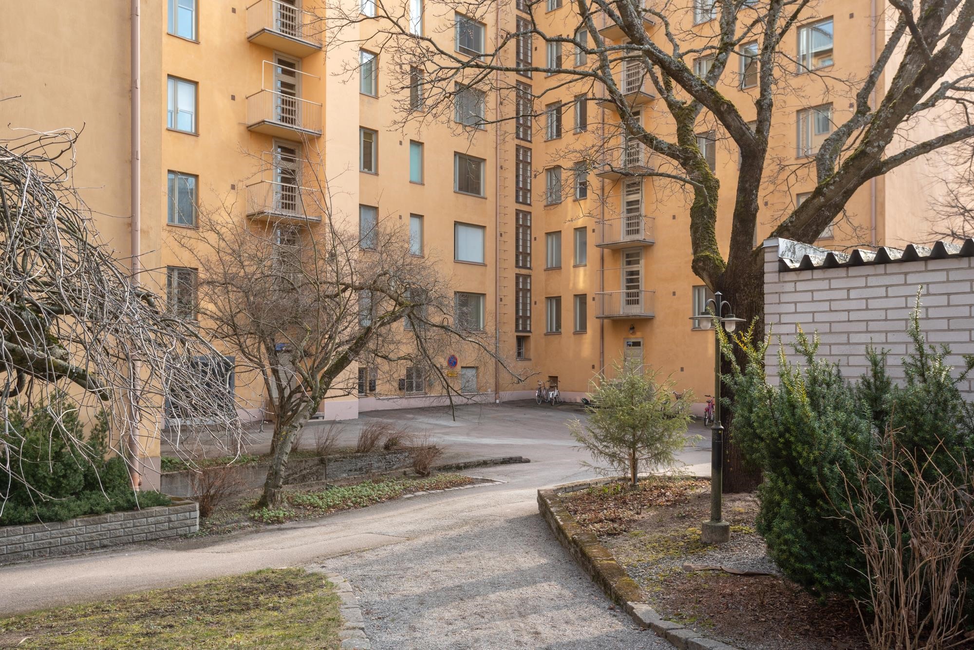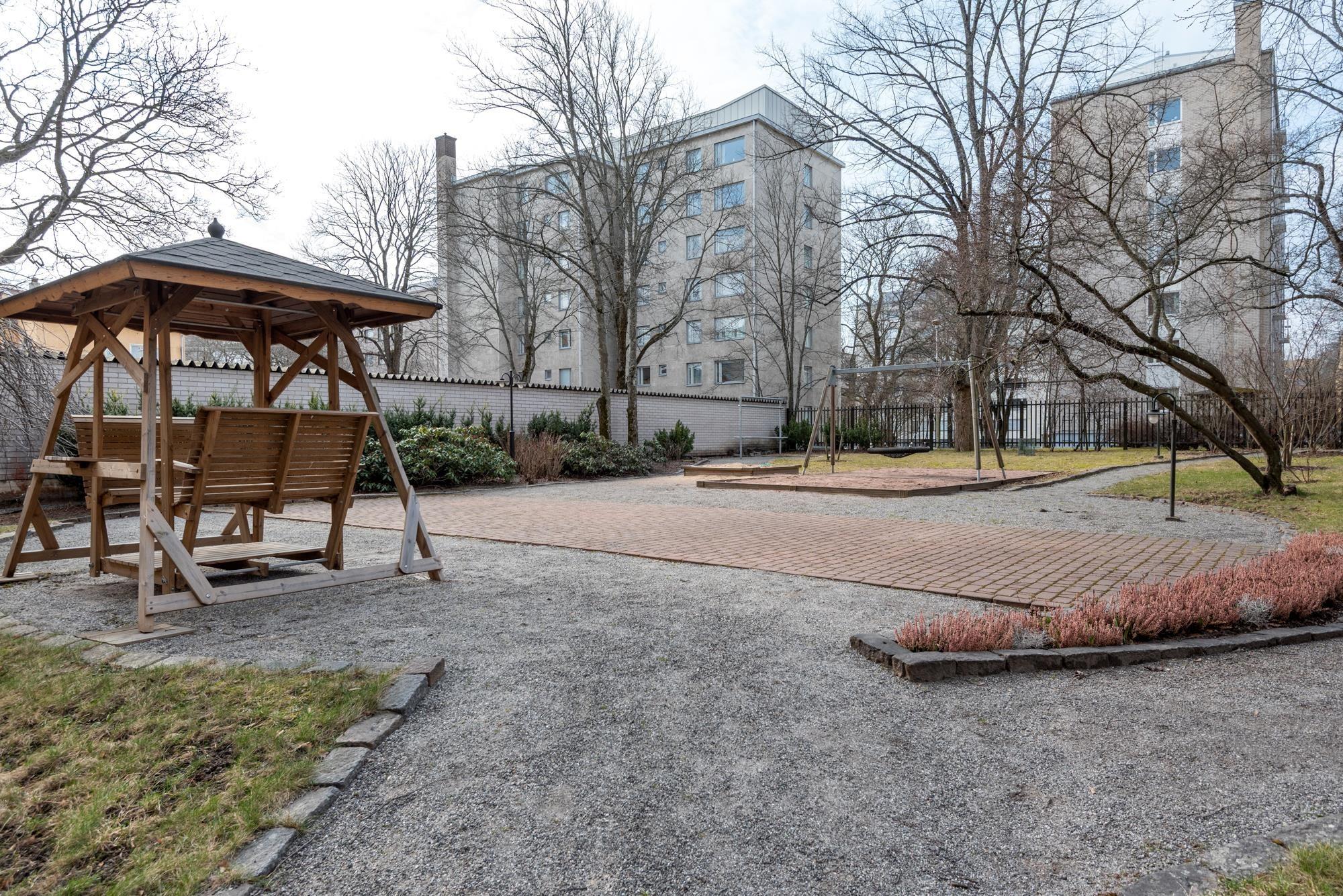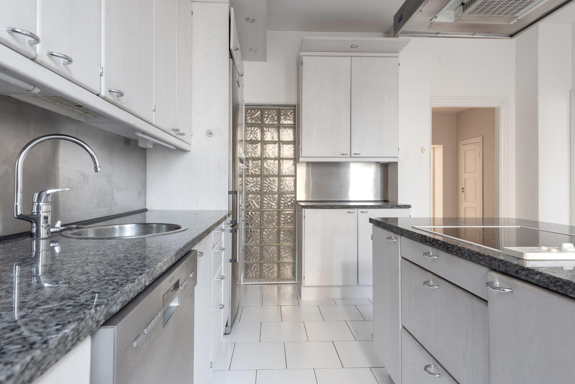 Asunnossa on kaksi tilavaa vaatehuonetta ja suuret huonekoot. Keittiössä ja kylpyhuoneessa on kattava ja nykyaikainen varustelu. Vaikka asunto sijaitsee tämän hissillisen talon ensimmäisessä kerroksessa, se on kuitenkin katutasoa korkeammalla.