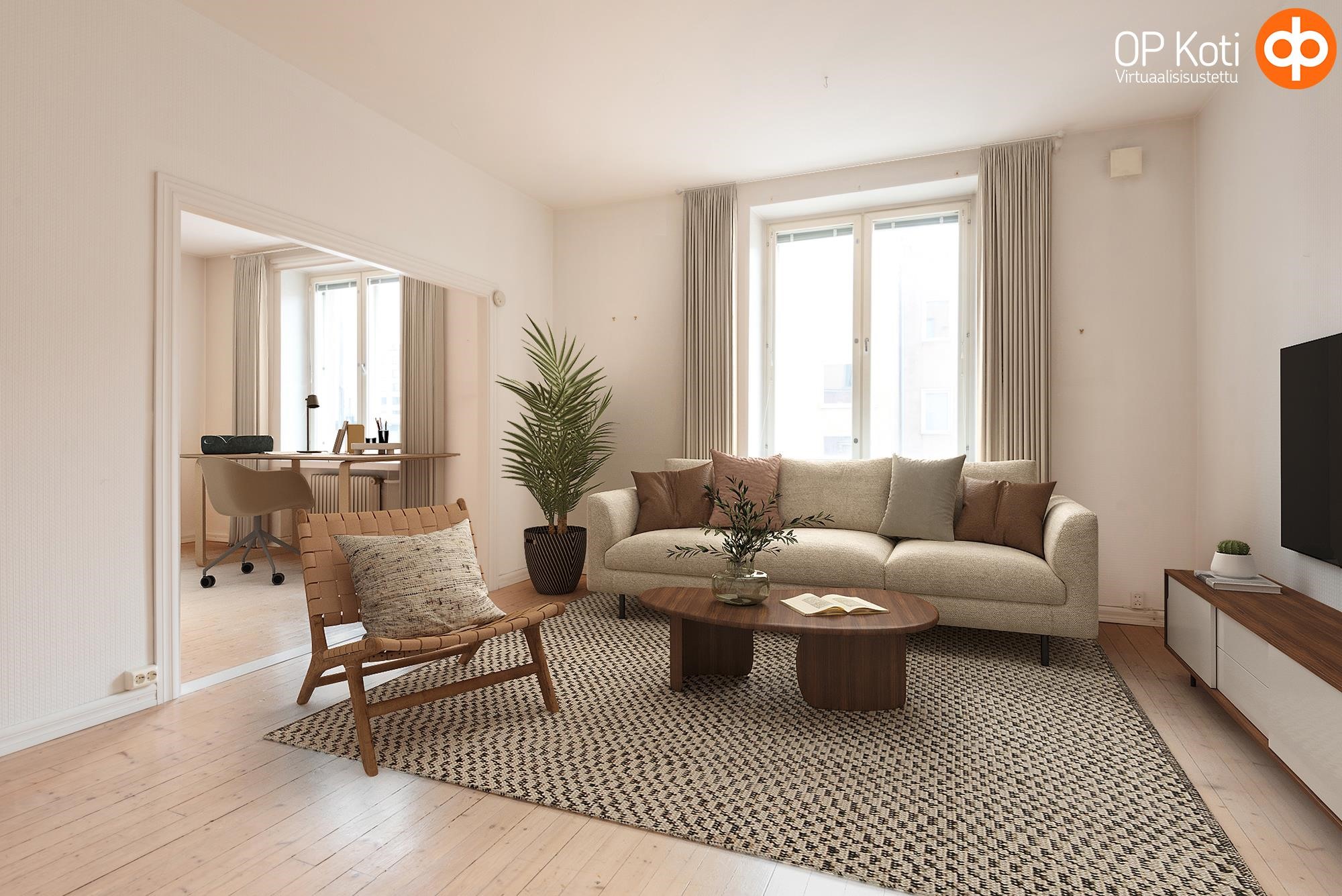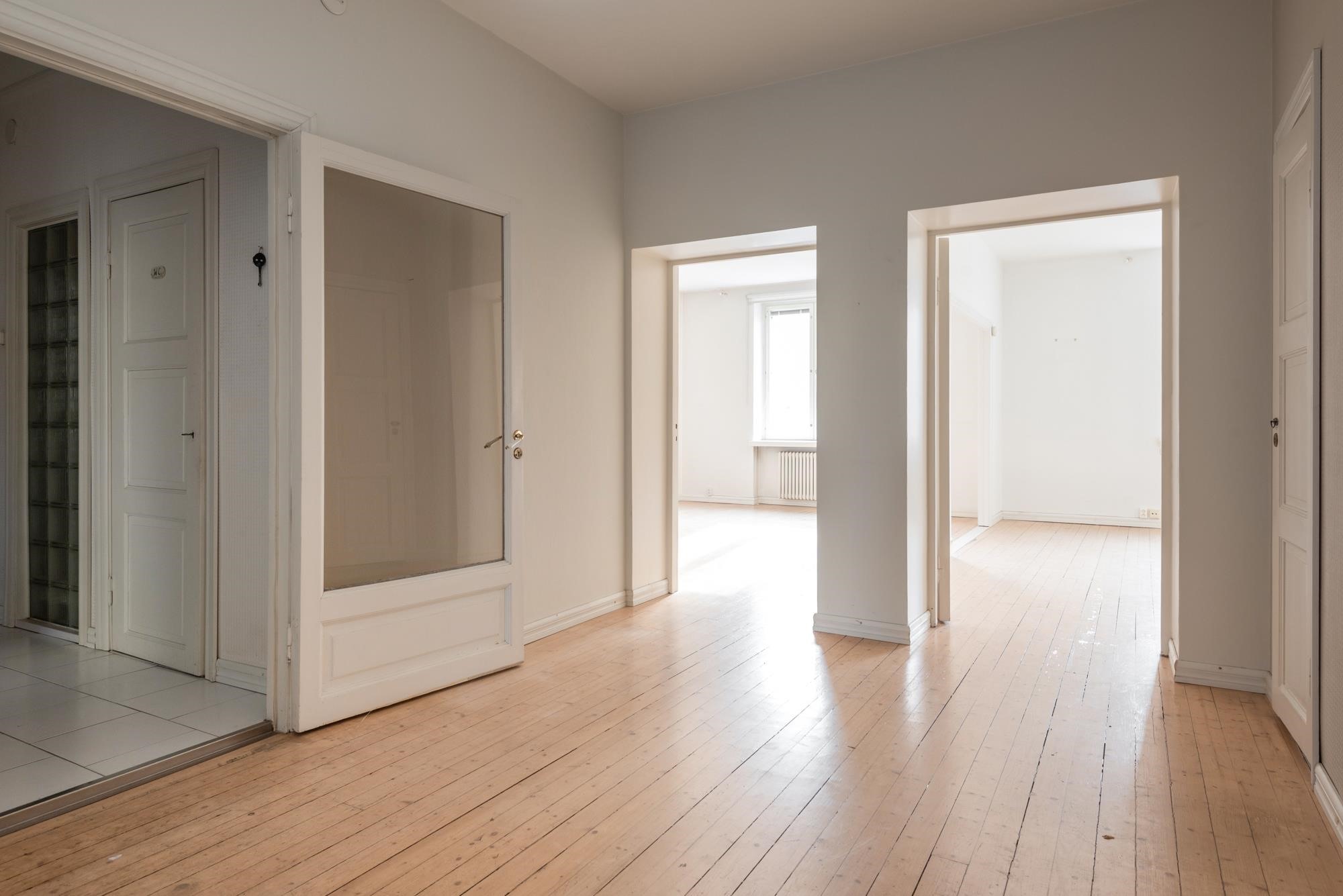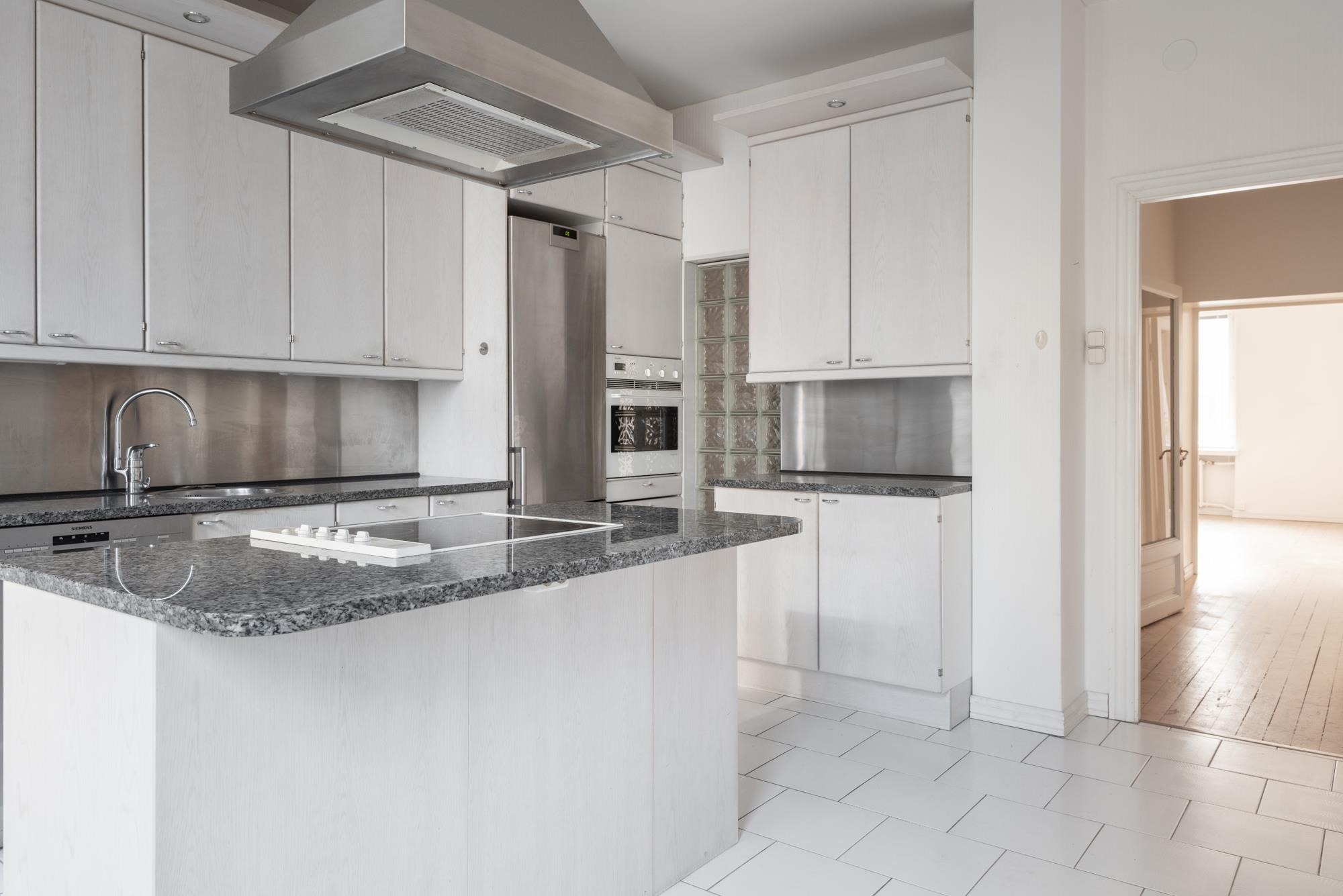Tervetuloa tutustumaan tähän upeaan asuntoon, joka sijaitsee vuonna 1929 valmistuneen arvostetun kivitalon ensimmäisessä kerroksessa. Tämä tilava ja valoisa 105 m²:n huoneisto huokuu historiallista aikakautensa charmia. Asunnon kauniit puulattiat on hiljattain hiottu ja lakattu ja seinäpinnat maalattu, mikä luo asuntoon raikkaan ja ylellisen tunnelman.