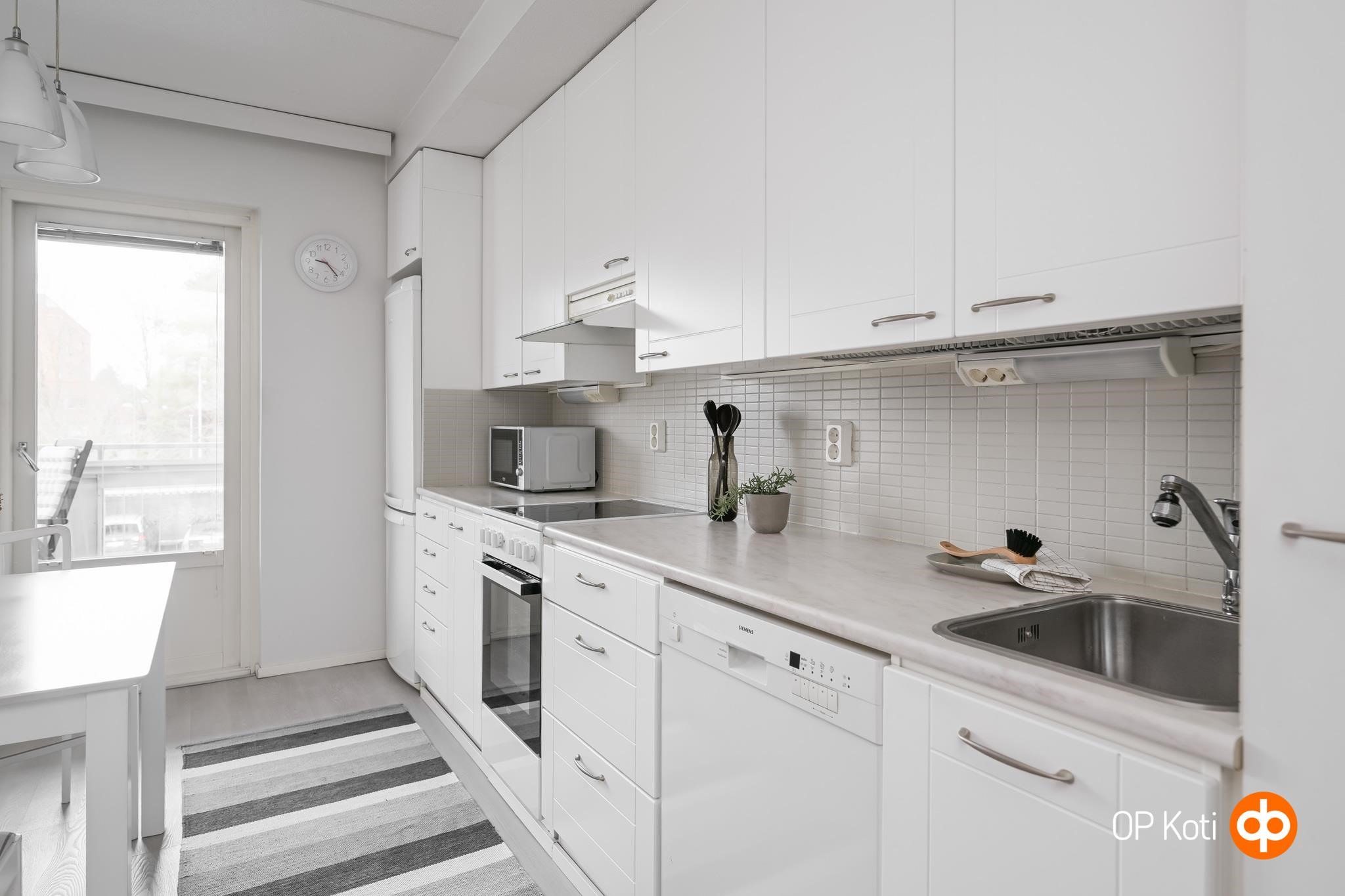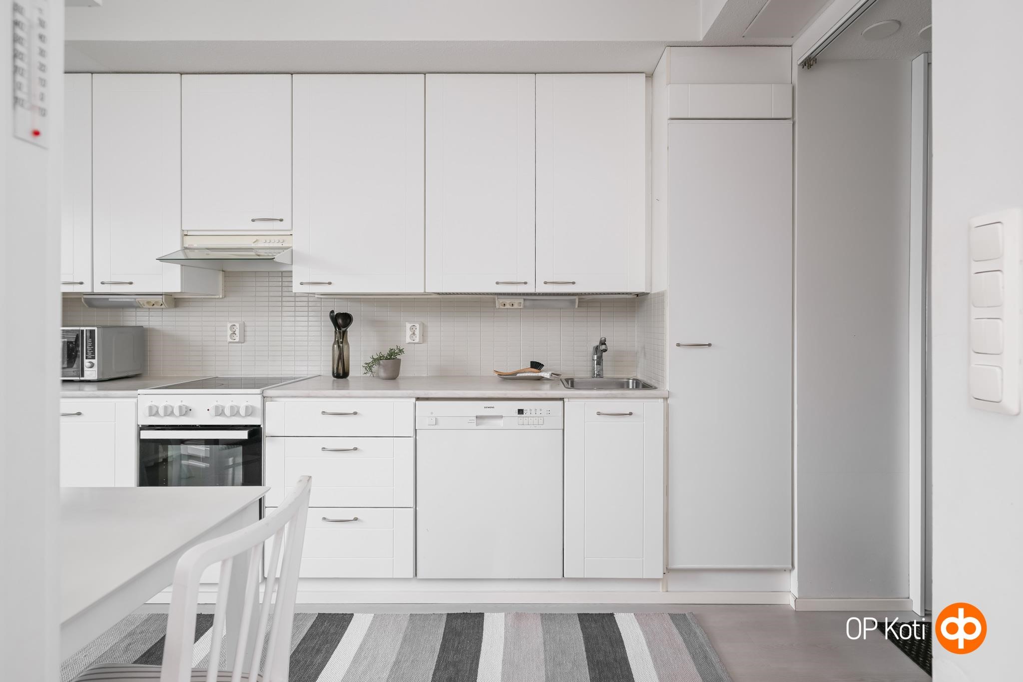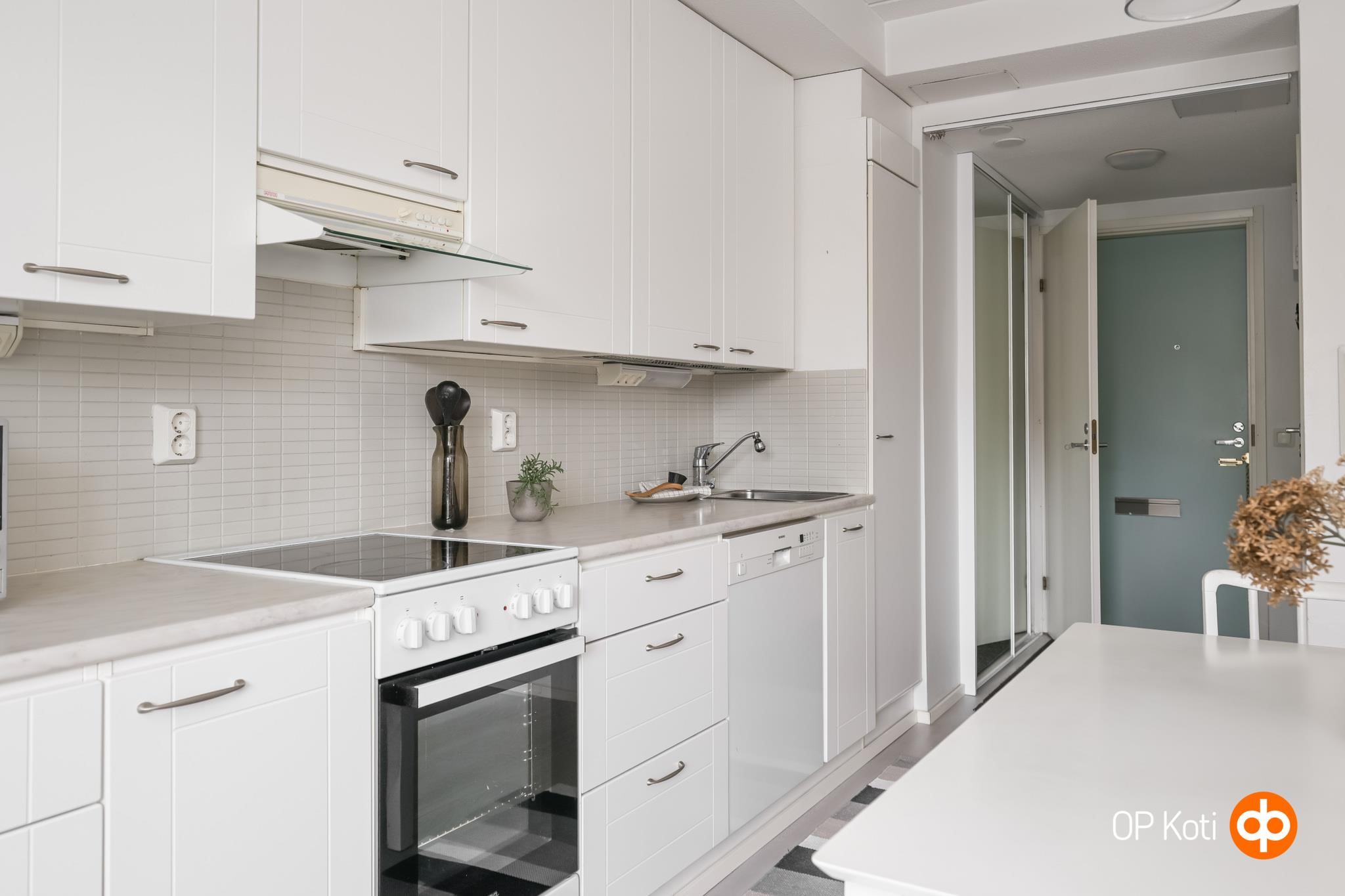 - Jääkaappipakastin, keraaminen liesi, liesituuletin, astianpesukone, kiinteät valaisimet.