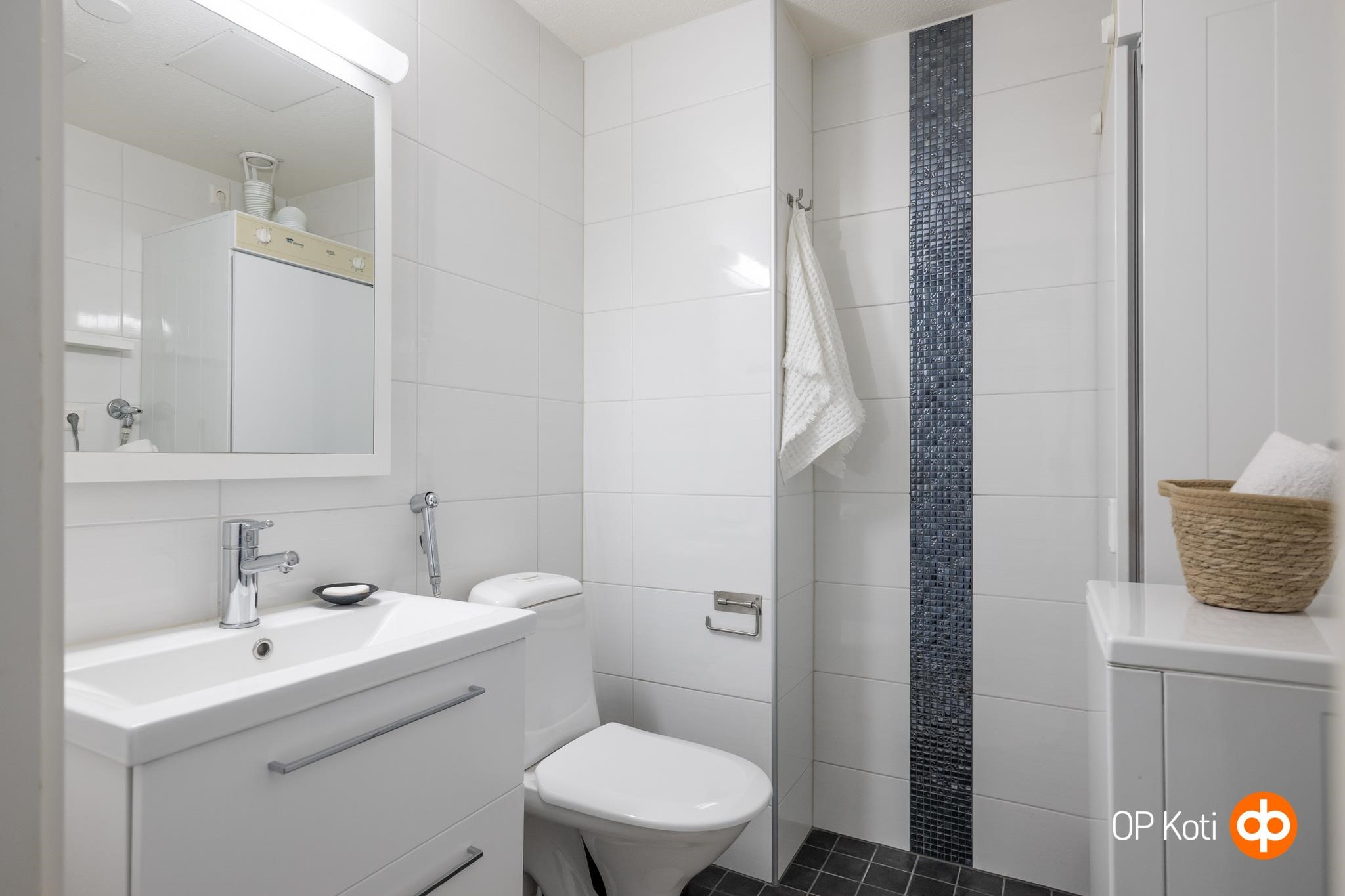 Kylpyhuone, sauna ja wc on remontoitu vuonna 2011. Erillinen wc tuo sujuvuutta arkeen - pieni mutta merkittävä yksityiskohta, jonka huomaa vasta käytössä. Makuuhuoneen yhteydessä oleva vaatehuone sekä parvekkeen varasto tarjoavat säilytystilaa juuri sopivasti.