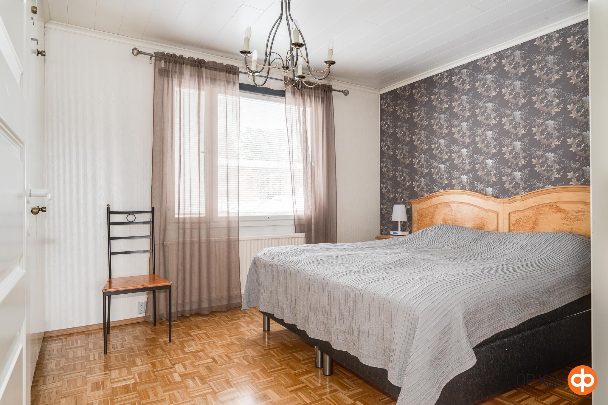 Keittiö: Laminaatti, maali. Olohuone: Parketti, tapetti. Makuuhuone 1: Parketti, tapetti. Makuuhuone 2: Parketti, maali. Makuuhuone 3: Parketti tapetti. Kodinhoitohuone: Laatta, tapetti. Sauna: Laatta, paneeli. Kylpyhuone: Laatta, laatta. Eteinen: Parketti, paneeli. Wc: Laatta, laatta.