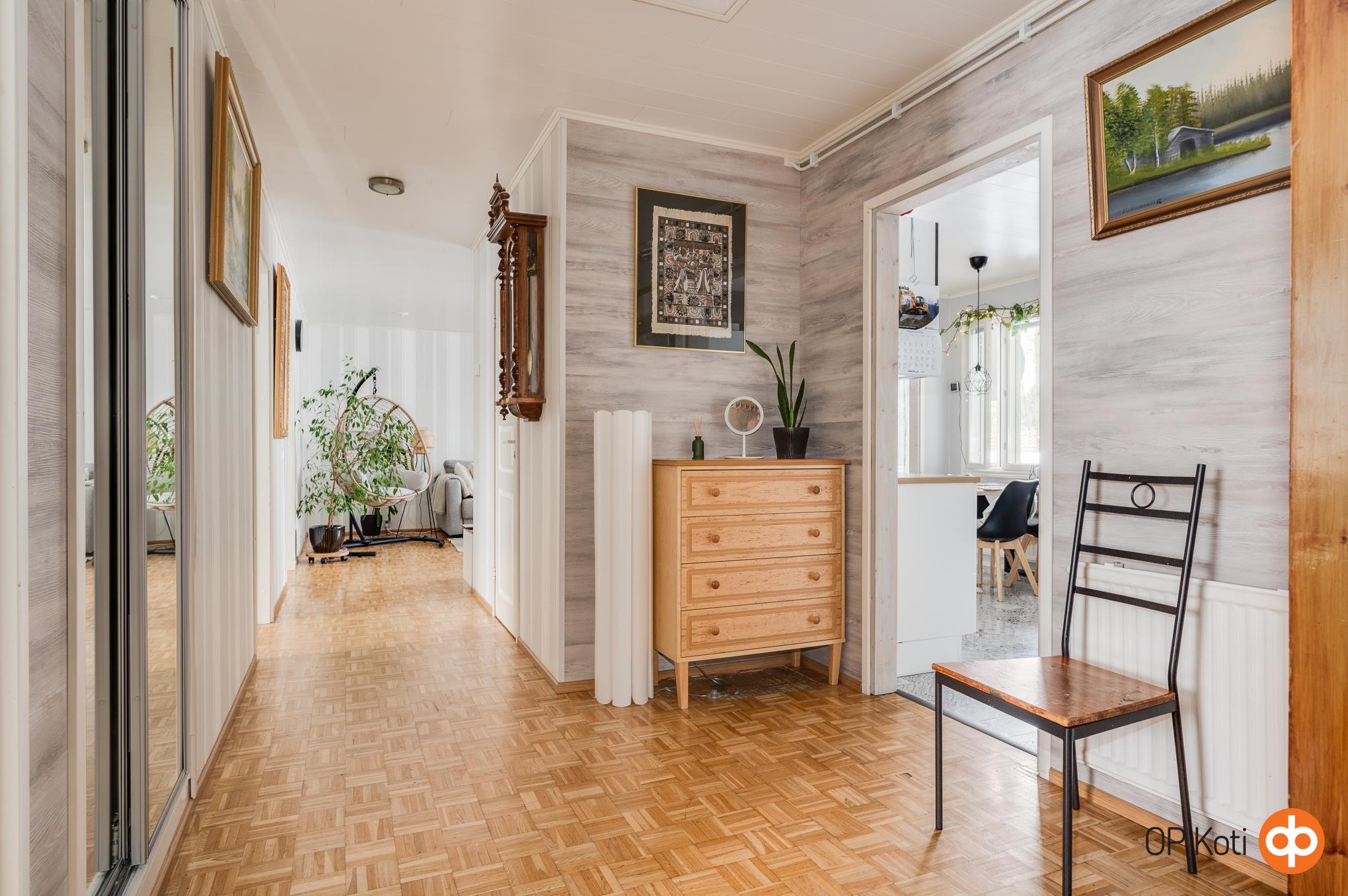 Olohuoneen ja ruokailutilan avaruus kutsuvat viihtymään, keittiö on remontoitu ja tarjoaa hyvät puitteet ruoanlaittoon. Kodin käytännöllisyys korostuu runsaissa säilytystiloissa ja toimivassa huonejaossa. Saunaosasto tarjoaa rentouttavat löylyt, ja kodinhoitotilat helpottavat arkea. Ilmalämpöpumppu tuo lisämukavuutta ja energiatehokkuutta, ja olohuoneesta avautuva terassi sekä palju kruunaavat kesäillat.