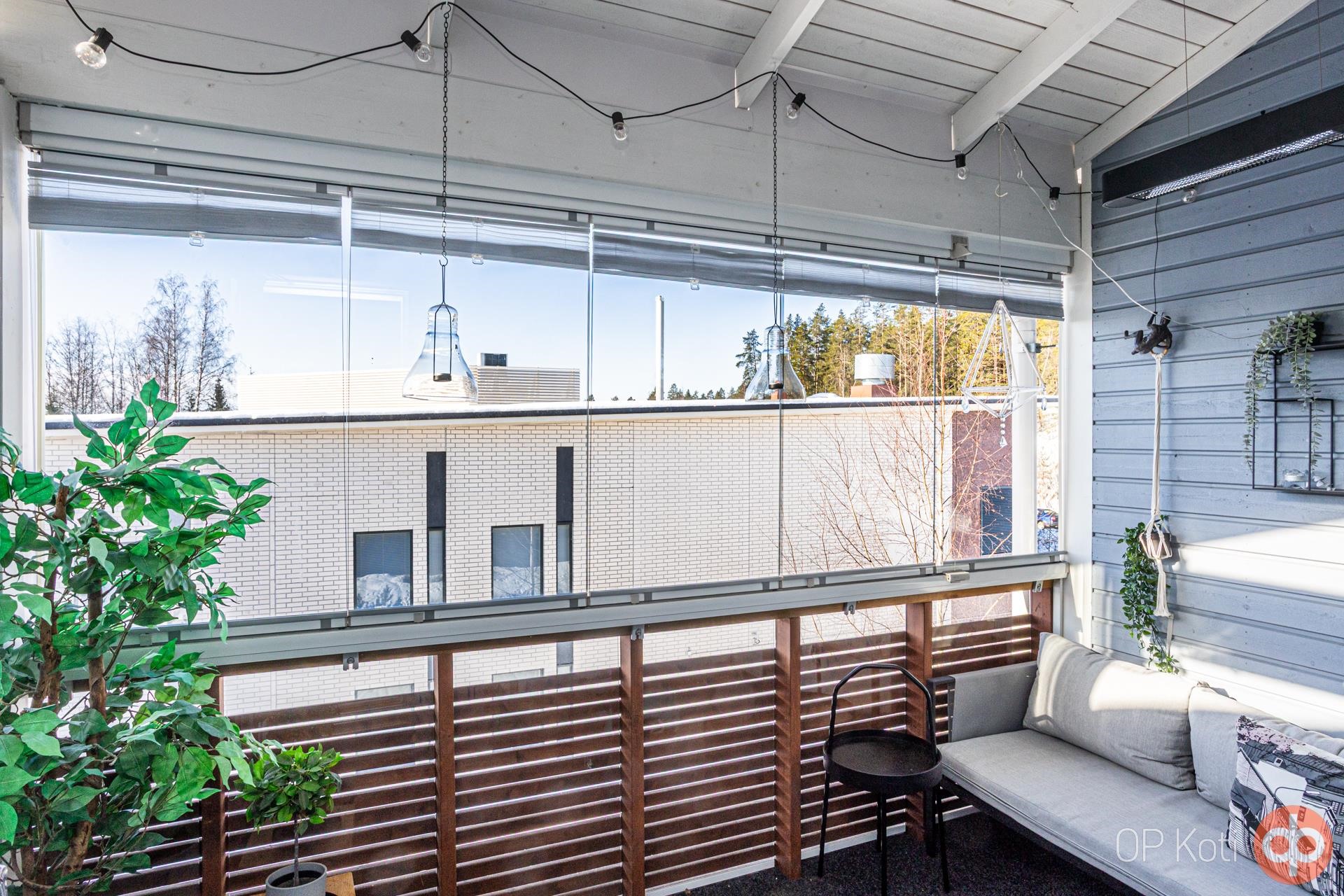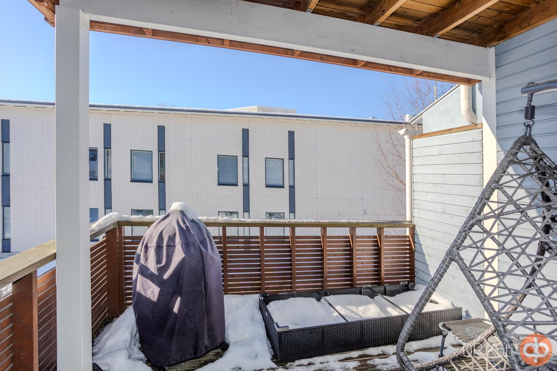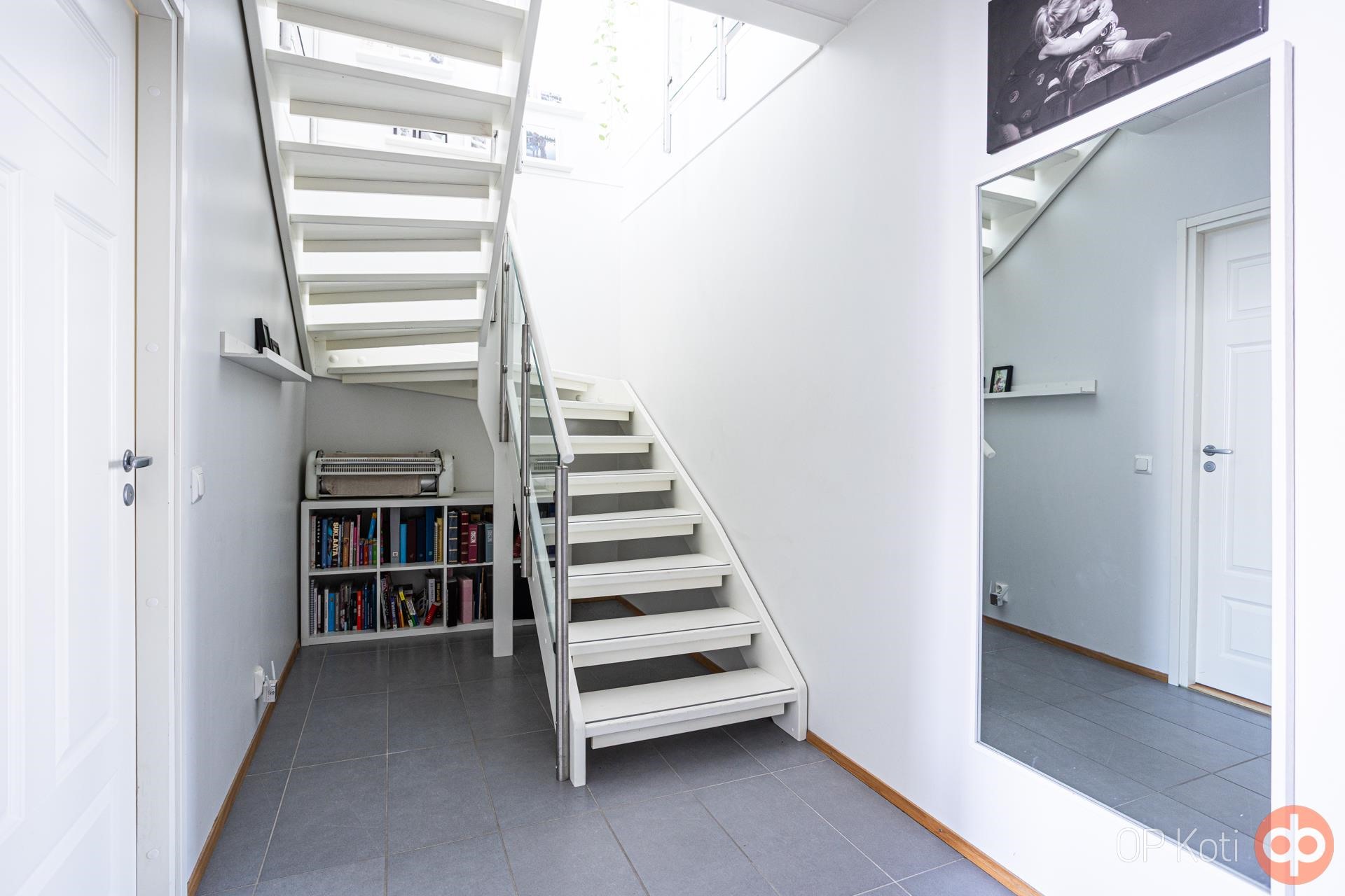 Asunto on kaksitasoinen, mikä tuo mukavasti tilaa ja selkeyttä asumiseen. Tilava kylpyhuone ja oma sauna lisäävät asumismukavuutta. Keittiö on siisti ja toimiva kokonaisuus, jossa on hyvin tilaa ruoanlaittoon ja arjen askareisiin.