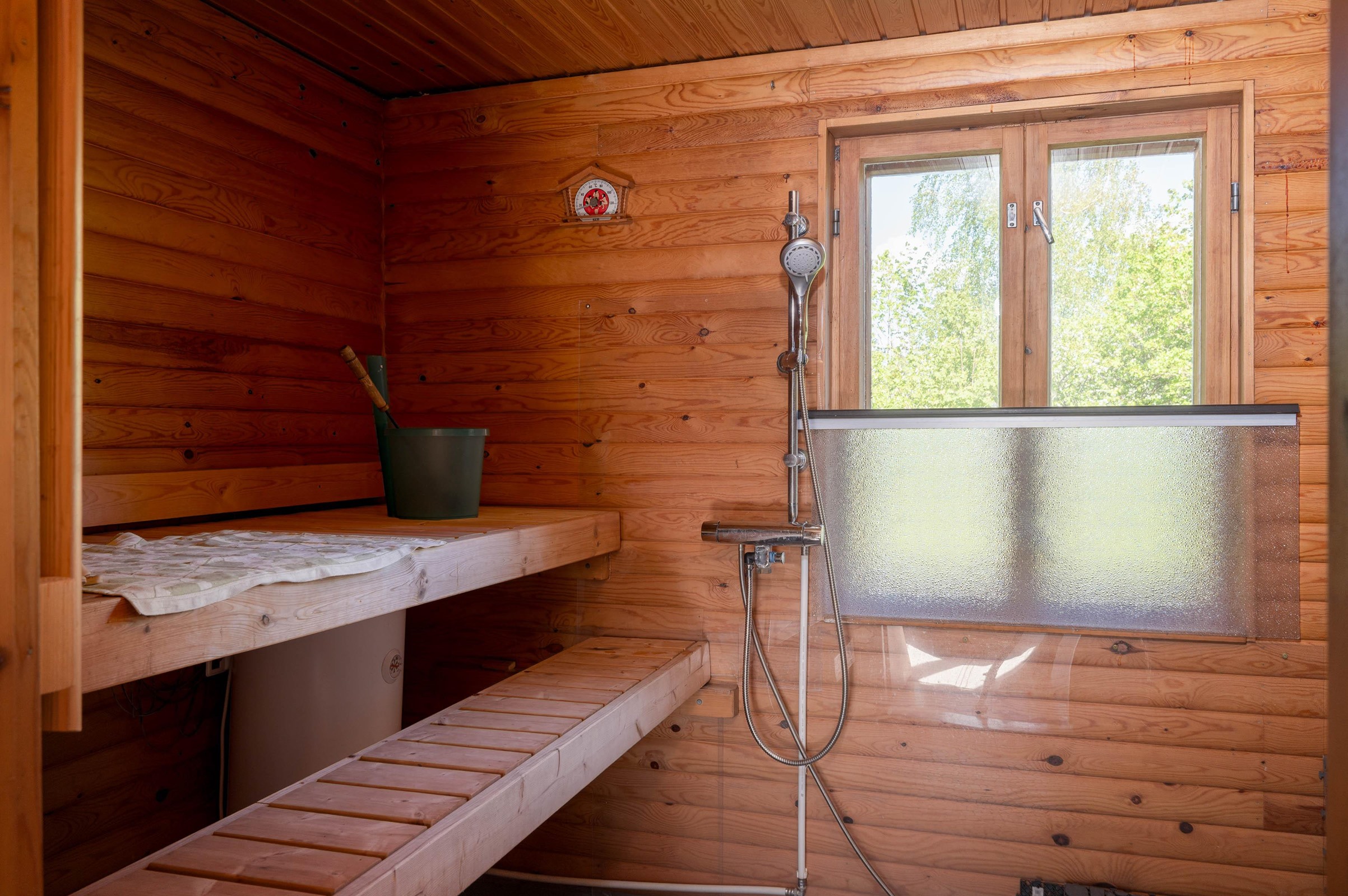 - Sauna, puukiuas vesipata, kiinteät valaisimet.