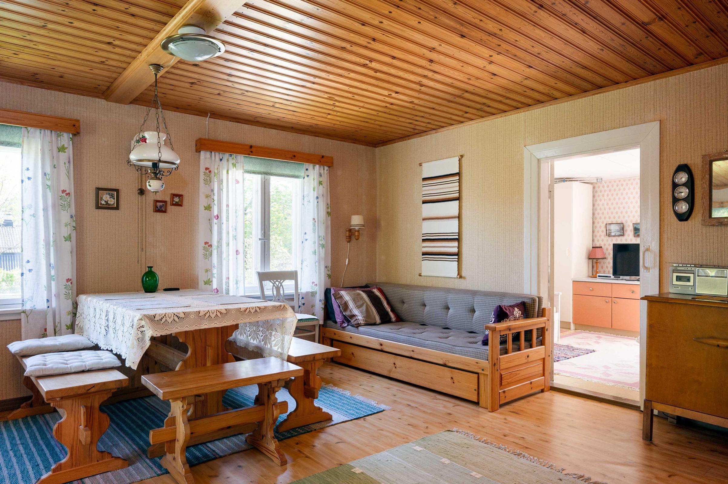 Keittiö: Lattia muovimattoa, seinät maalattu.. Olohuone: Lattia muovimattoa, seinät tapetoitu.. Makuuhuone 1: Lattia muovimattoa, seinät tapetoitu.. Sauna: Lattia betonia, seinät puupaneelia.. Eteinen: Lattia muovimattoa, seinät puupaneelia..
