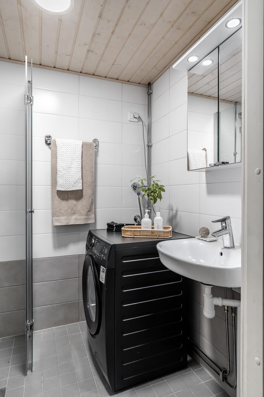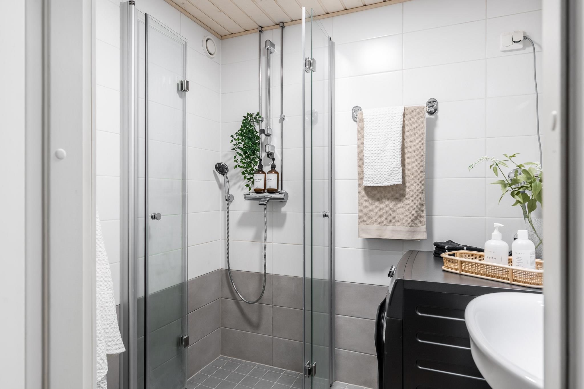 - Erillinen wc, suihku, suihkuseinä taittuvat suihkuseinät, peilit wc:ssä, peilikaappi pesuhuoneessa, pesukoneliitäntä, lattialämmitys pesuhuoneessa, kiinteät valaisimet, kaappi wc:ssä. Pesuhuone ja wc saneerattu putkiremontin yhteydessä v. 2018