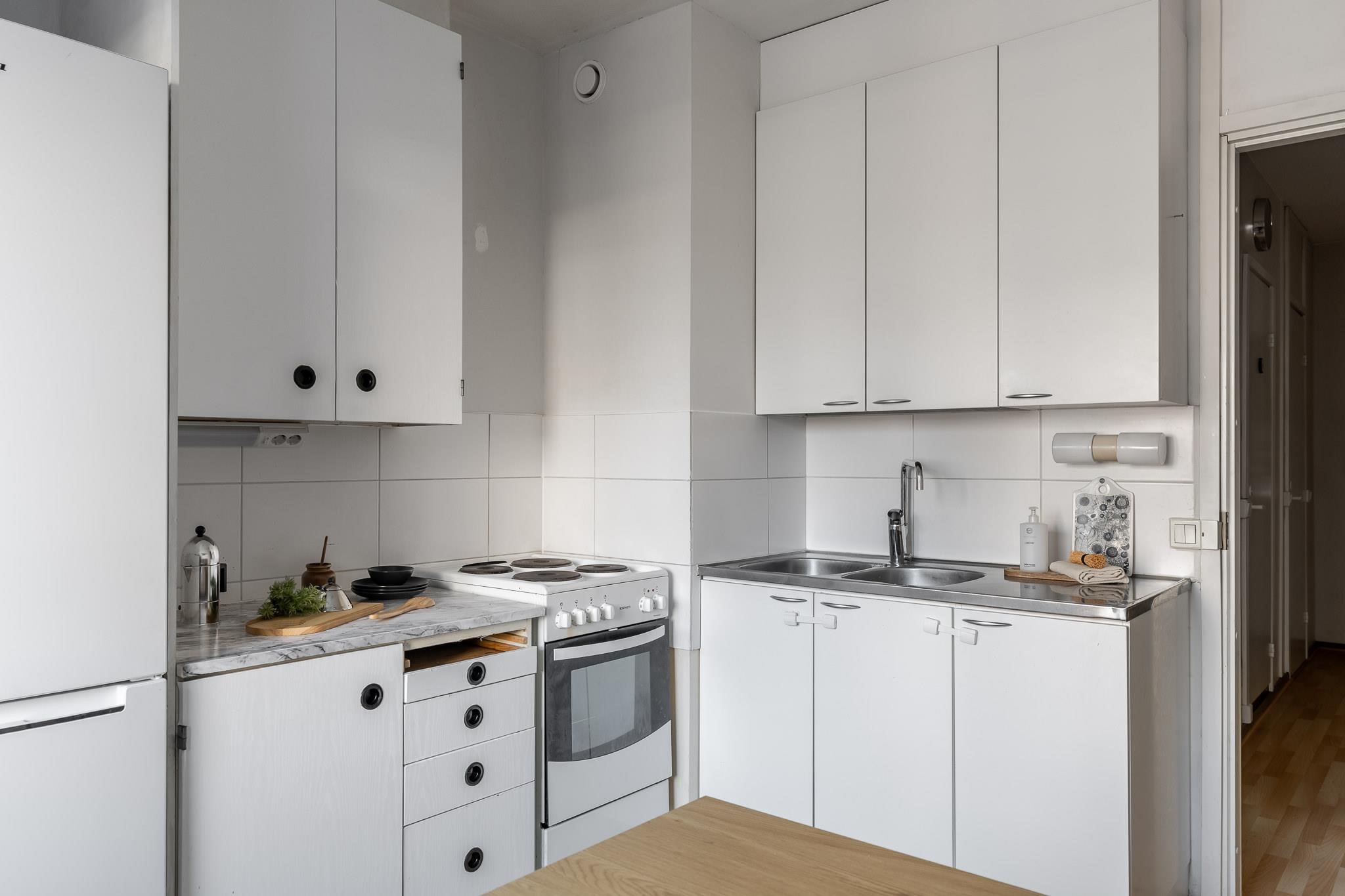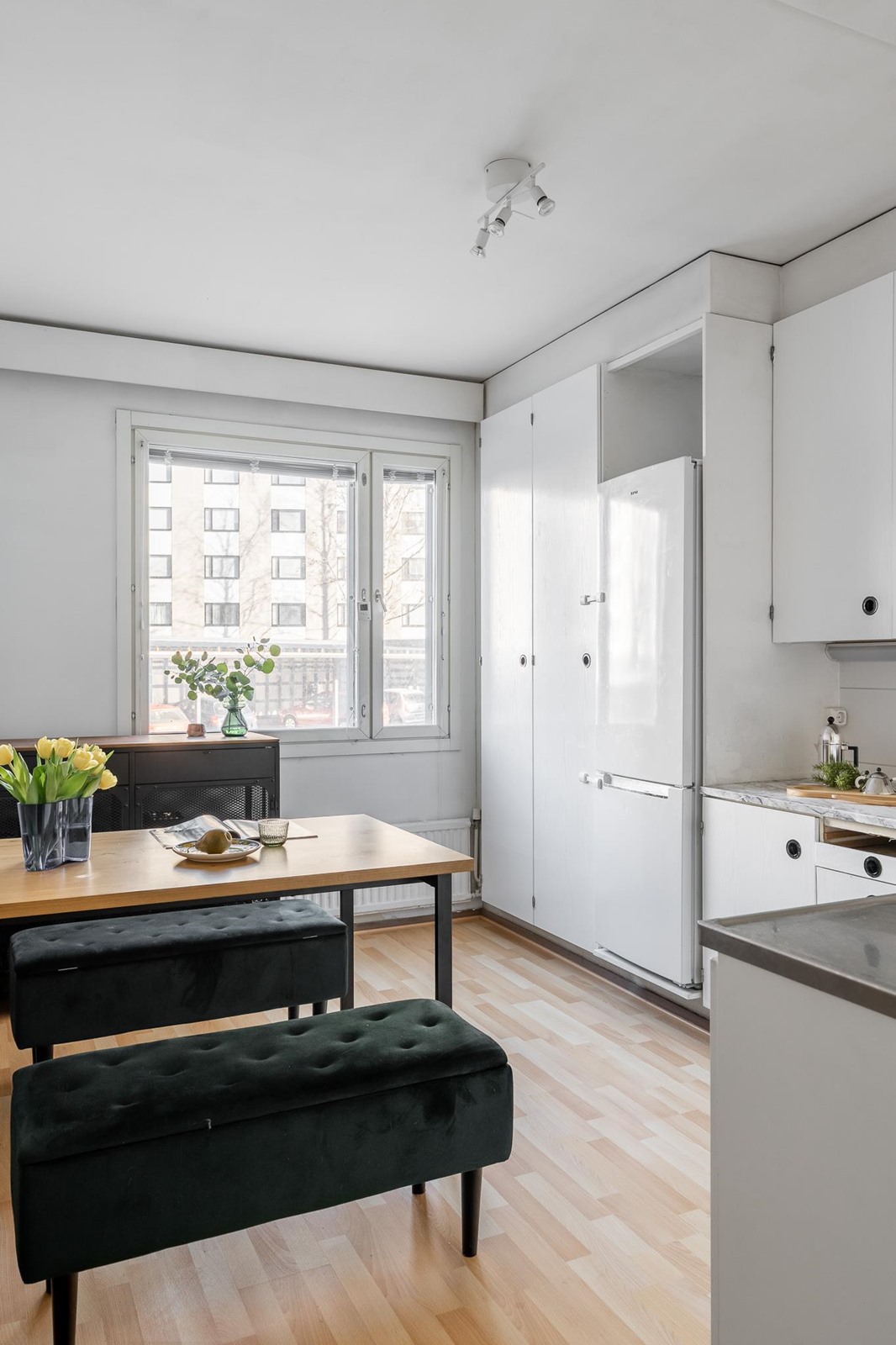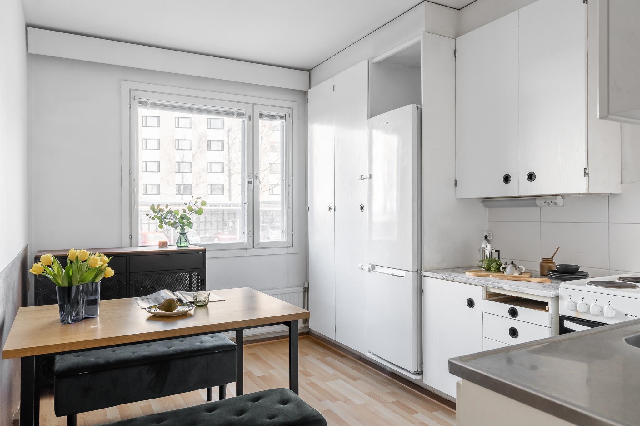 - Jääkaappipakastin v. 2022, sähköliesi, kaapistot, kiinteät valaisimet, astianpesukoneliitäntä, kattovalaisin.