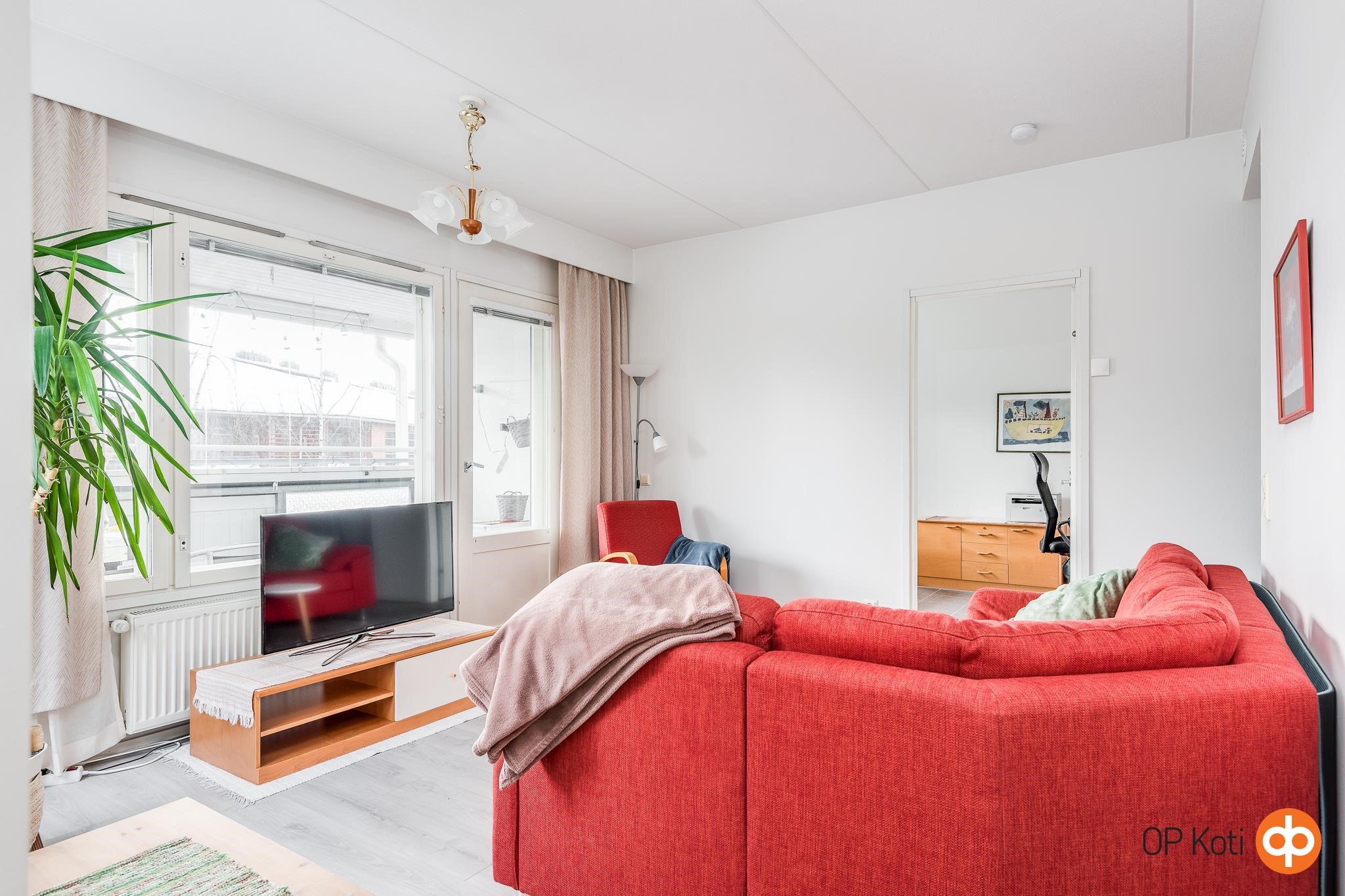 - Päätyhuoneisto ja huoneiston ikkunat kolmeen eri ilmansuuntaan, valoisa asunto.